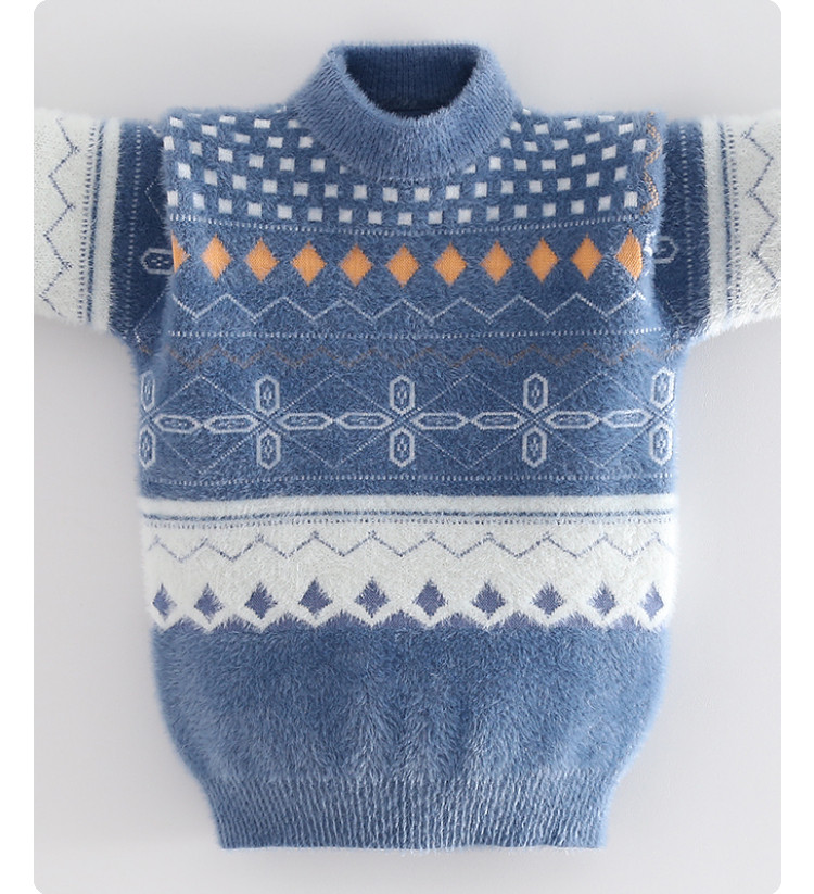 2025 가을, 겨울 아동용 스웨터 소년 밍크 벨벳 따뜻한 탑, 중대형 어린이를 위한 세련된 소년 두꺼운 스웨터스토어 가기