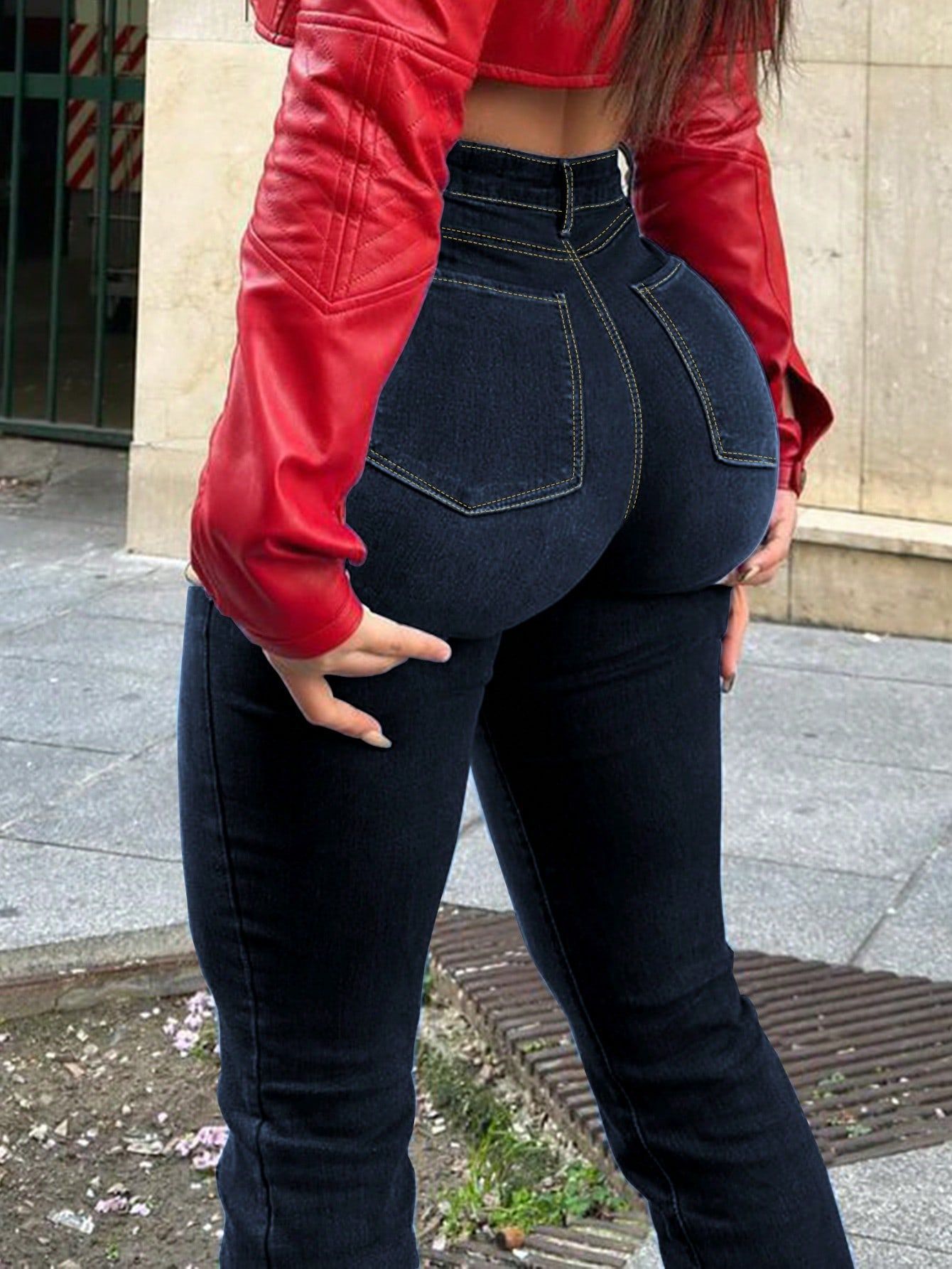 [고객 전용] TC08416 # 국경 간 대외 무역 유럽과 미국 스타일의 찢어진 스트레치 데님 플레어 바지스토어 가기