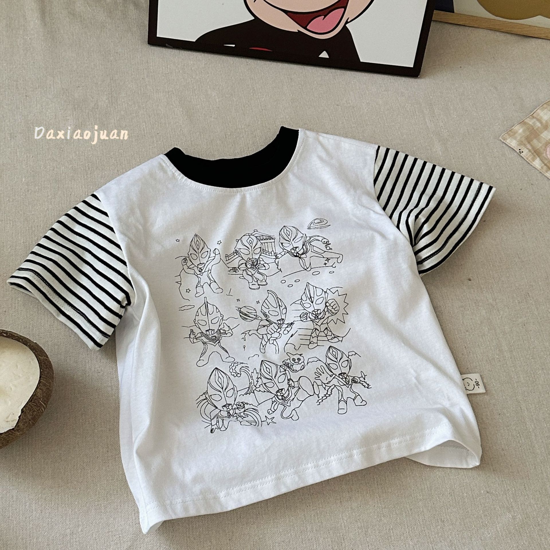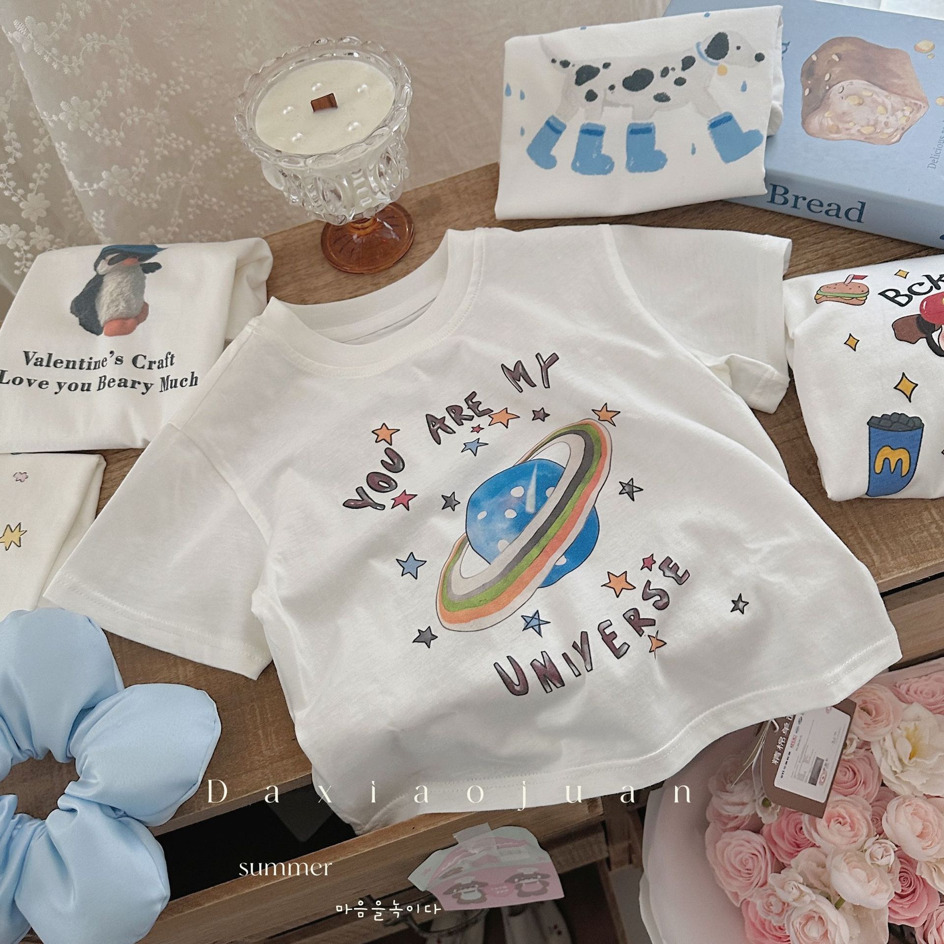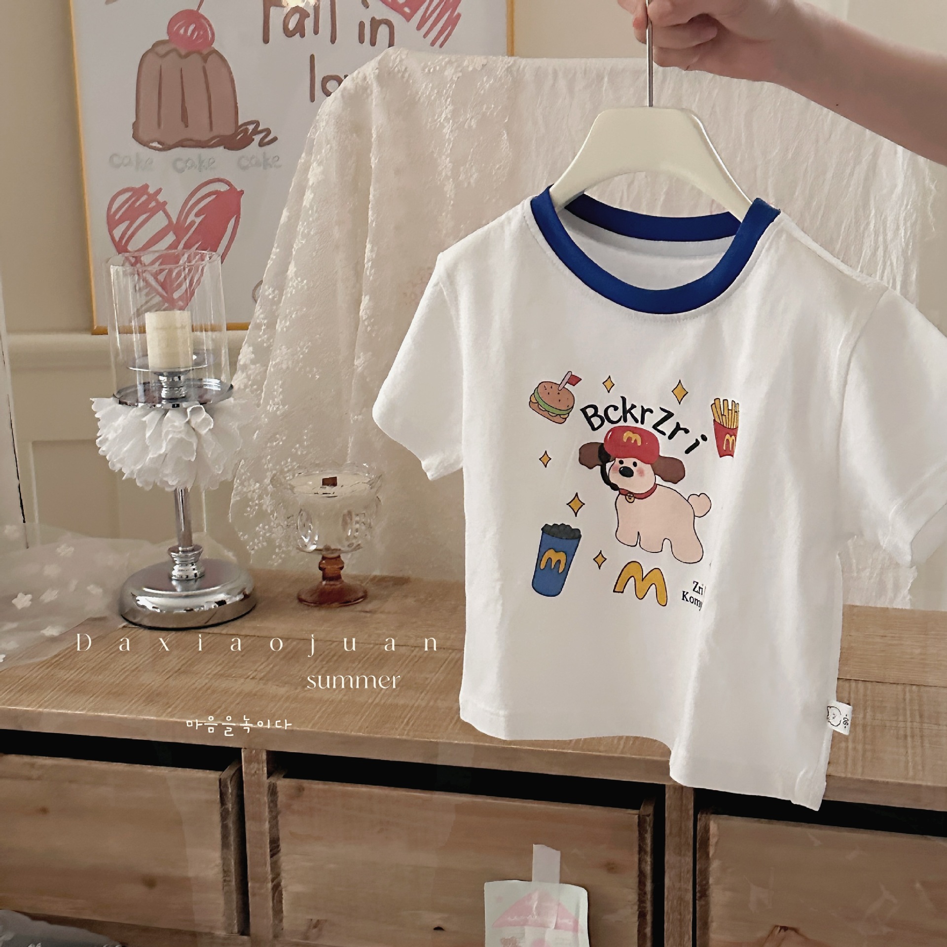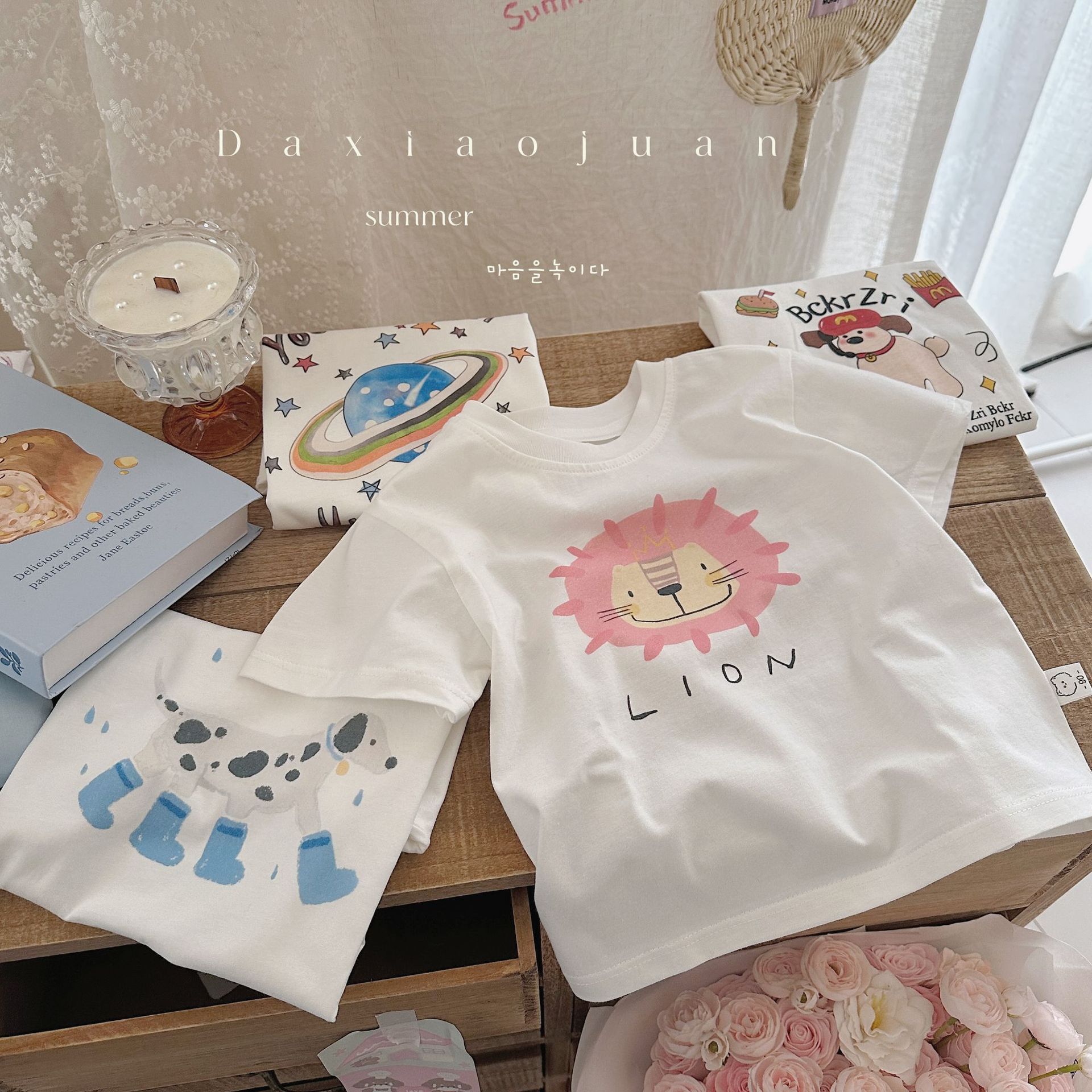 사이즈 롤 25 여름 어린이 코튼 얇은 만화 반팔 티셔츠 소년과 소녀 아기의 승무원 귀여운 코튼 탑스토어 가기
