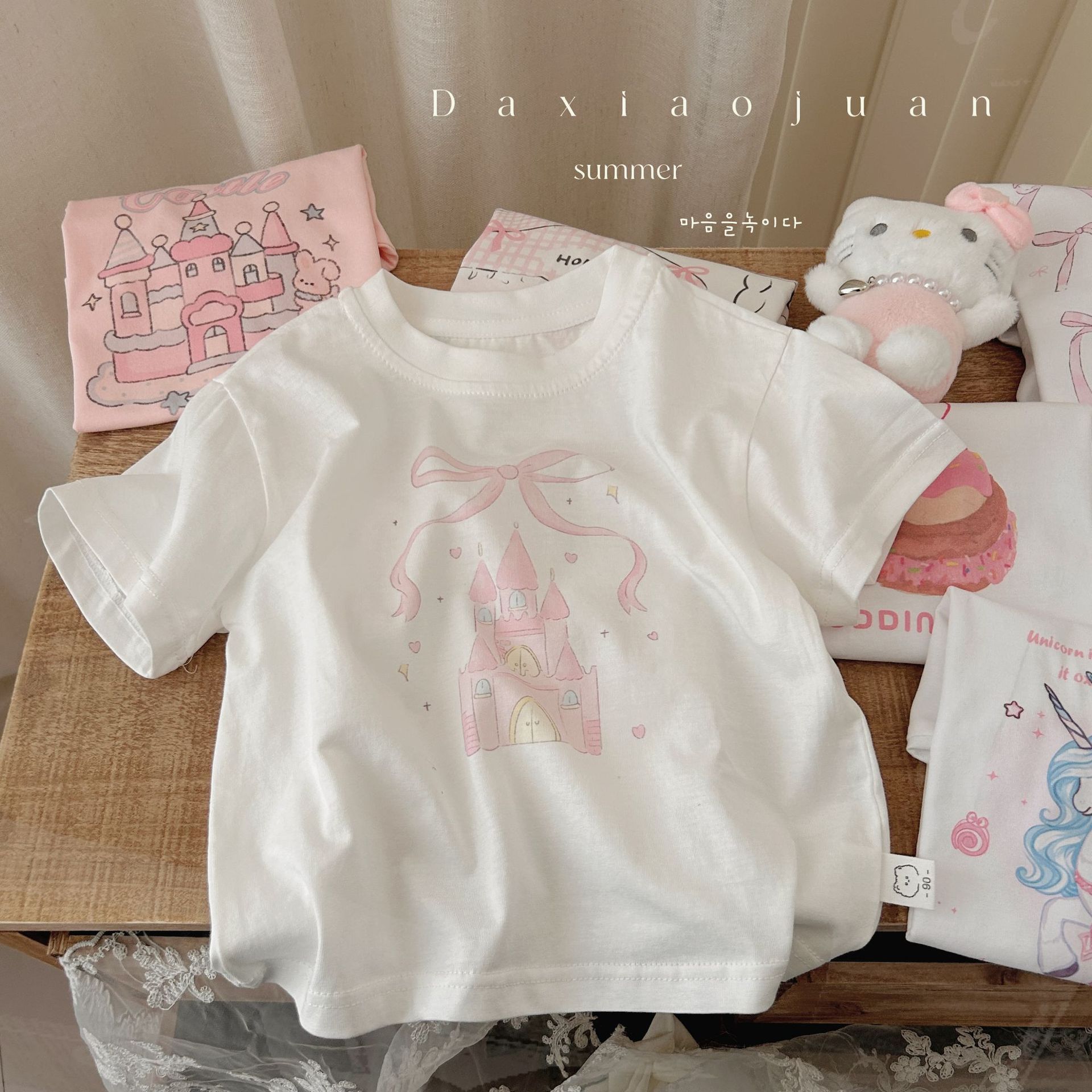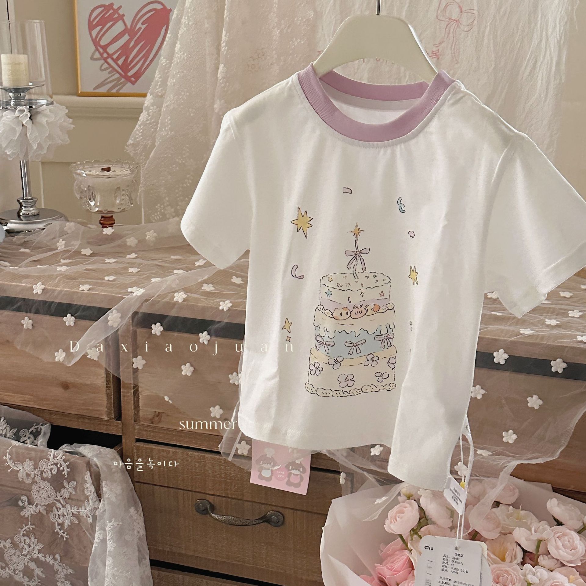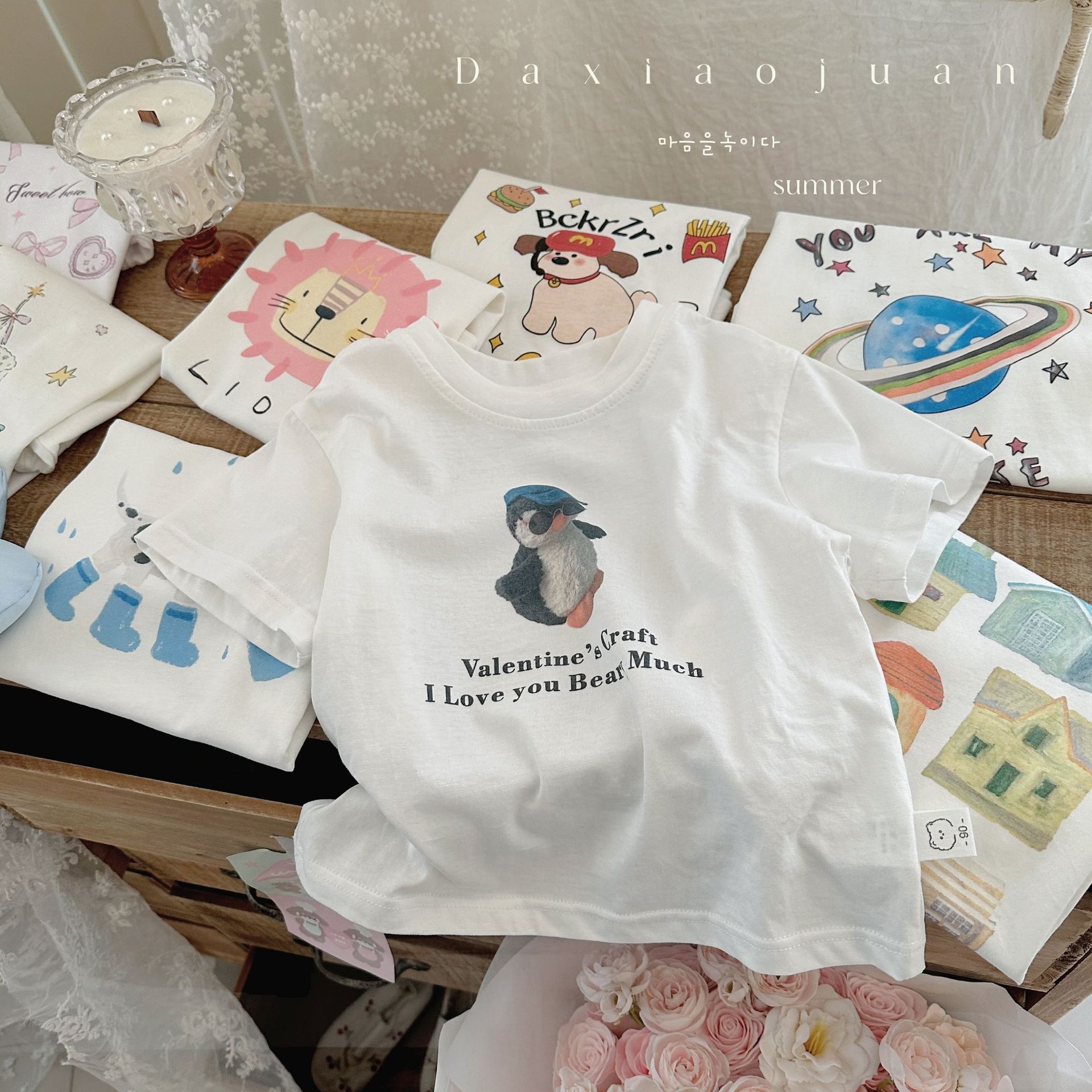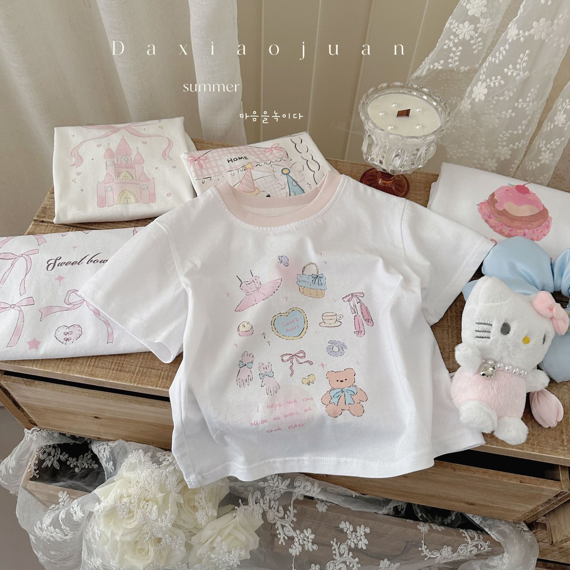사이즈 롤 25 여름 어린이 코튼 얇은 만화 반팔 티셔츠 소년과 소녀 아기의 승무원 귀여운 코튼 탑스토어 가기