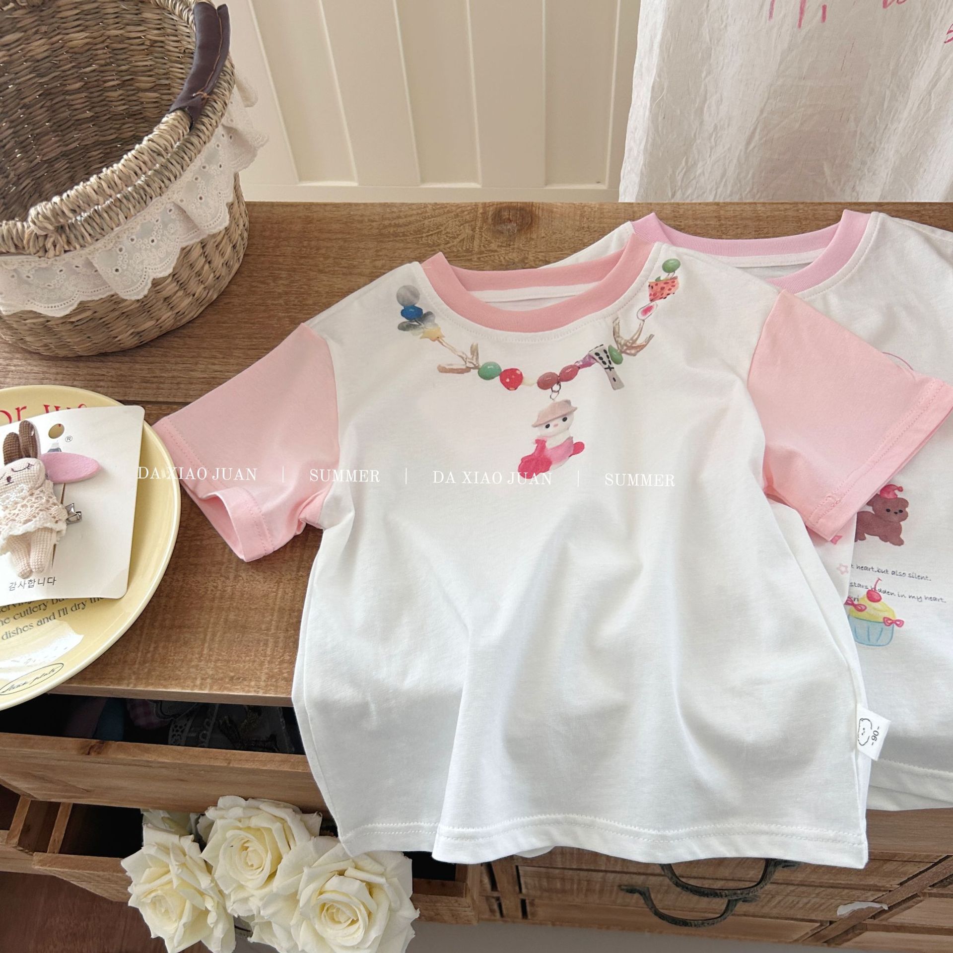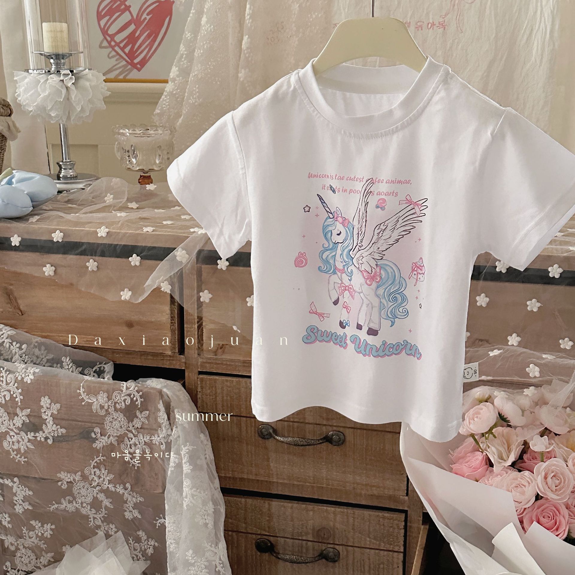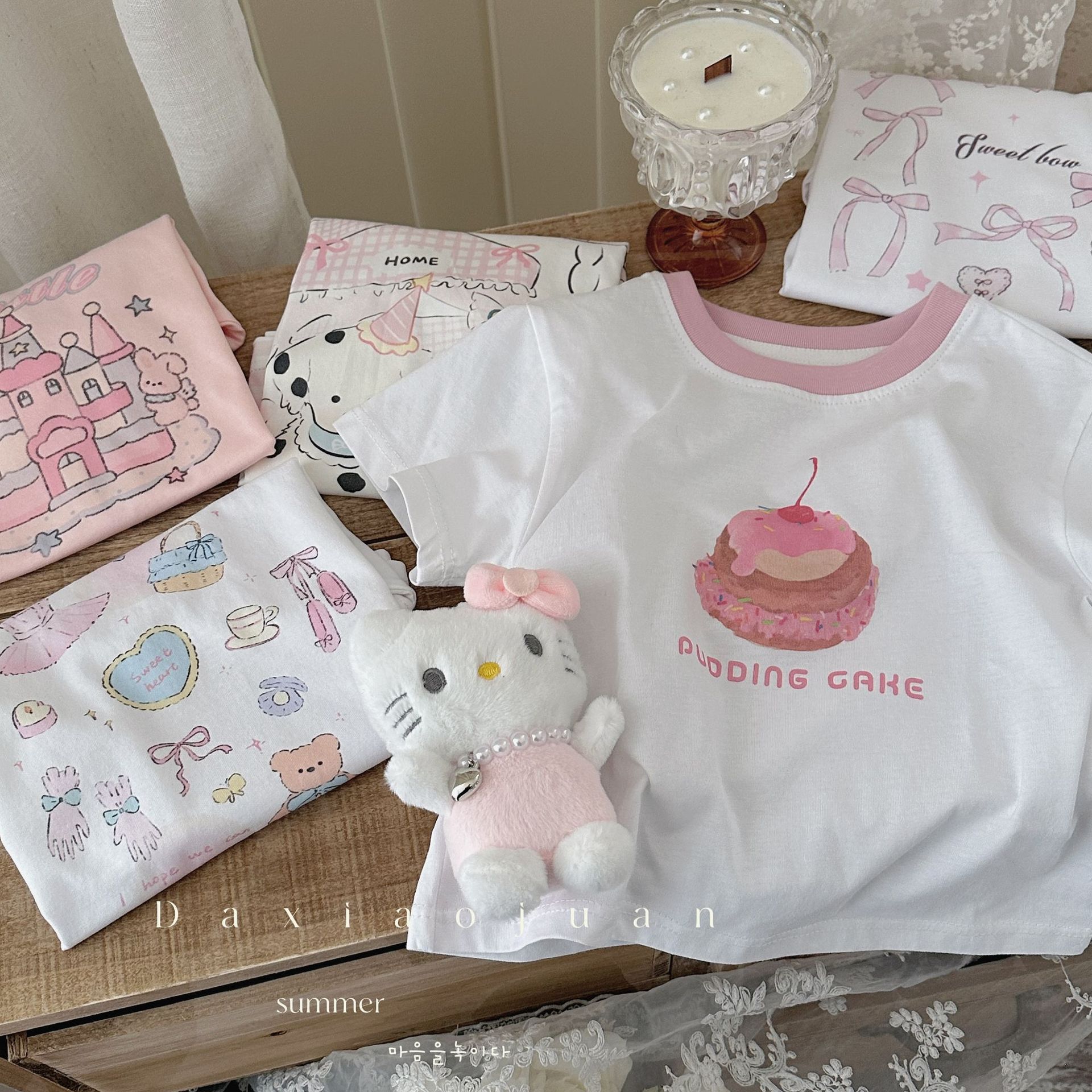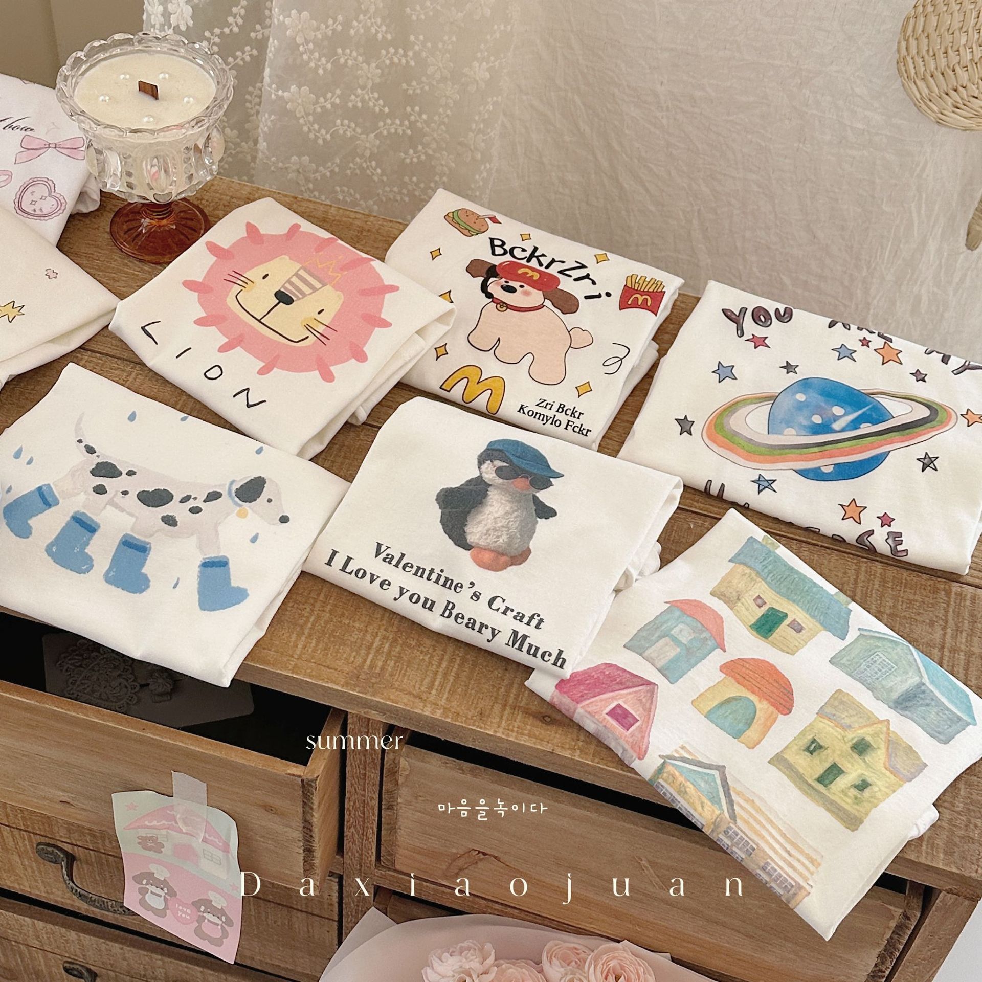 사이즈 롤 25 여름 어린이 코튼 얇은 만화 반팔 티셔츠 소년과 소녀 아기의 승무원 귀여운 코튼 탑스토어 가기