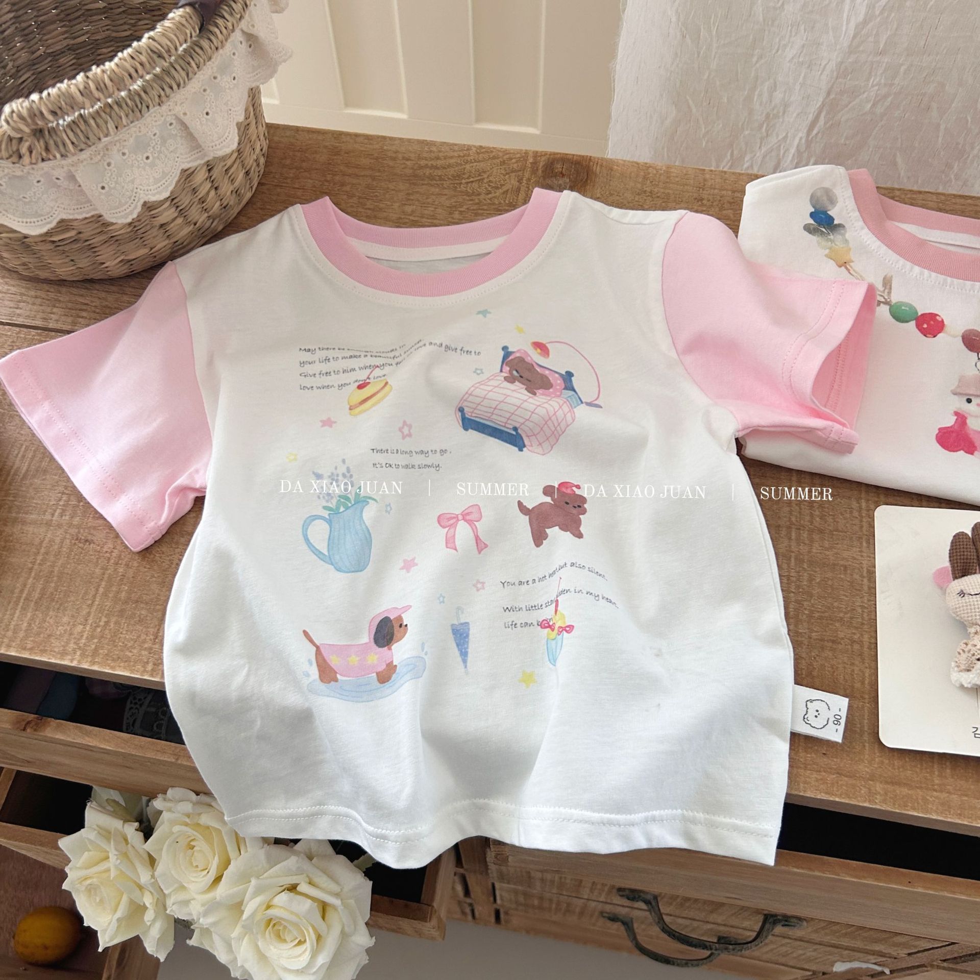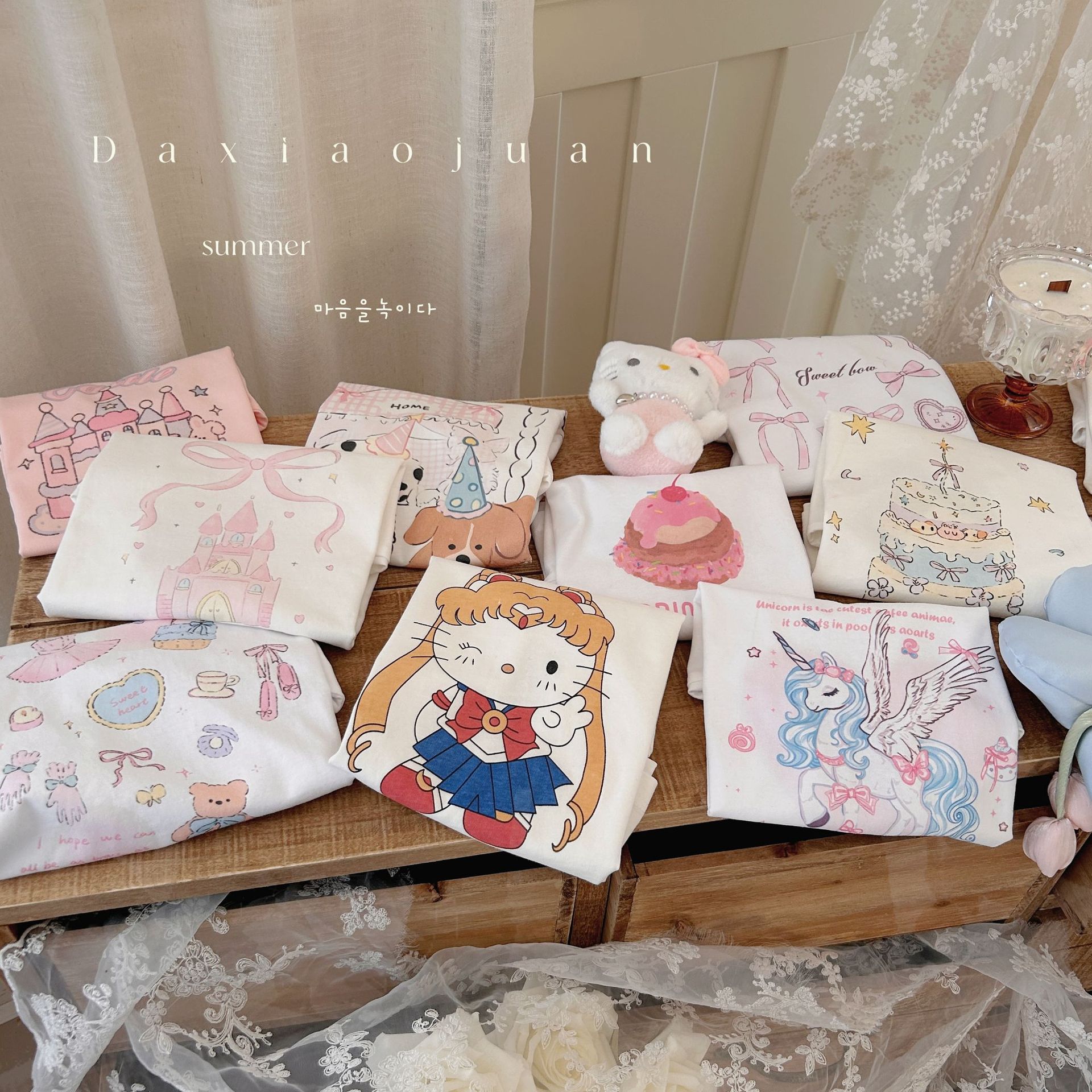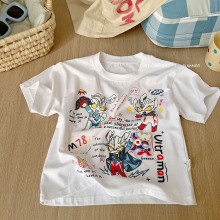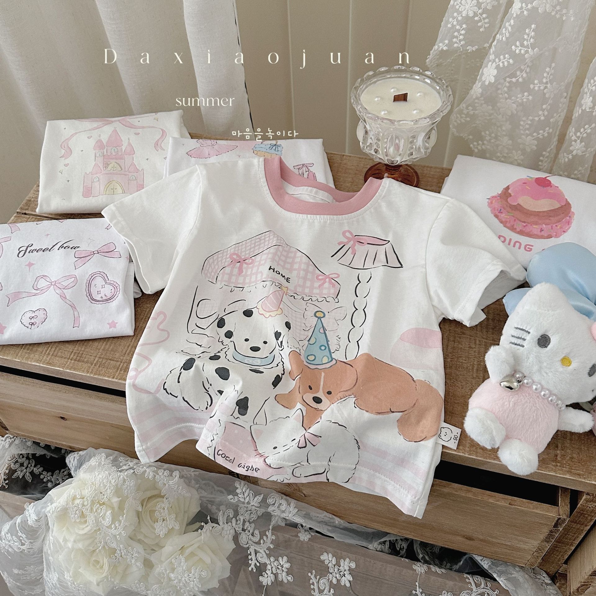 사이즈 롤 25 여름 어린이 코튼 얇은 만화 반팔 티셔츠 소년과 소녀 아기의 승무원 귀여운 코튼 탑