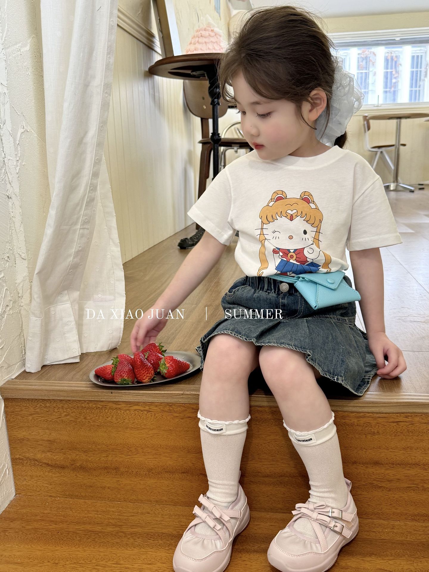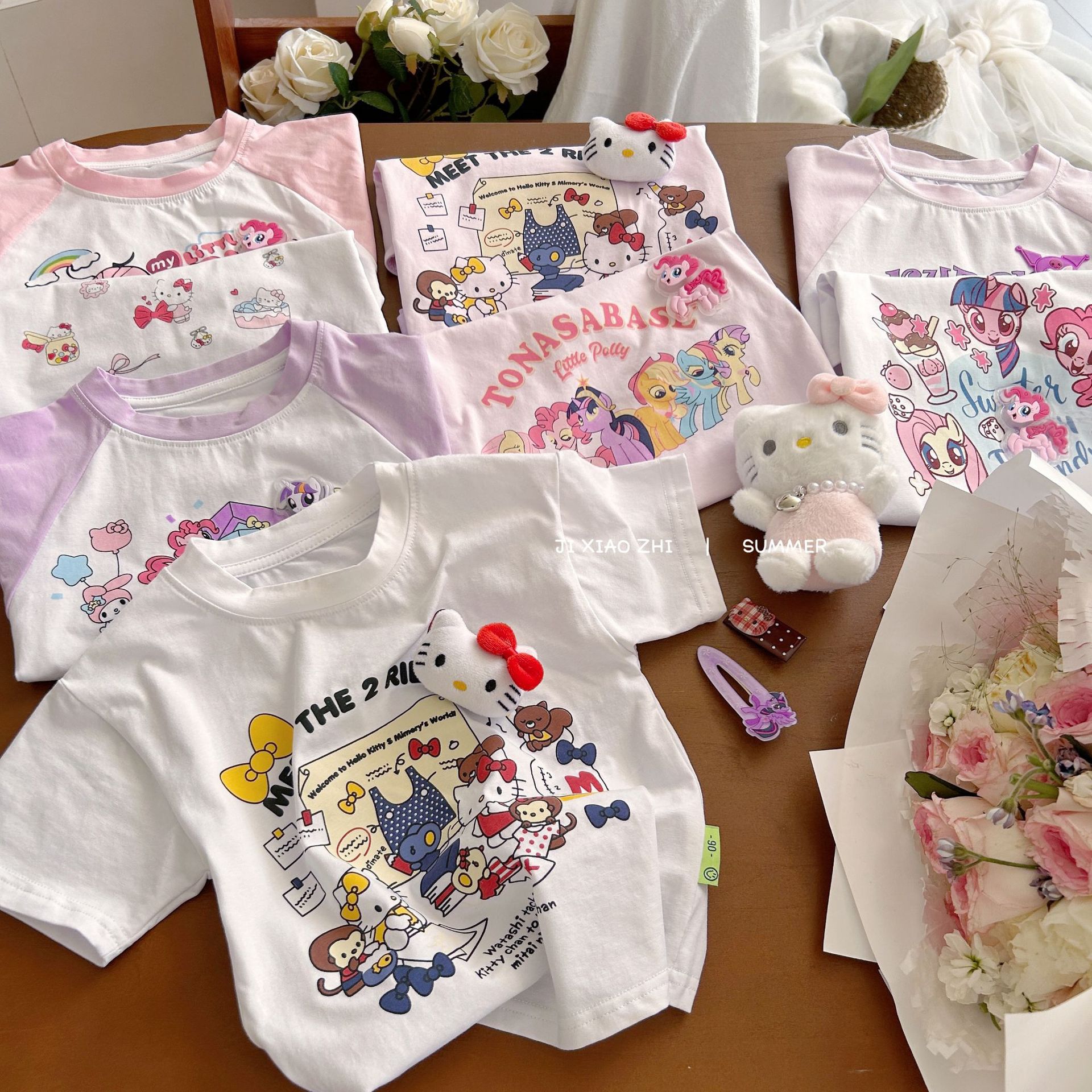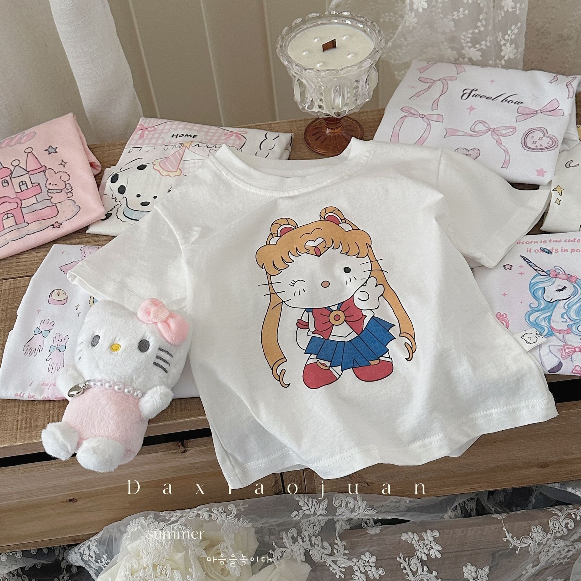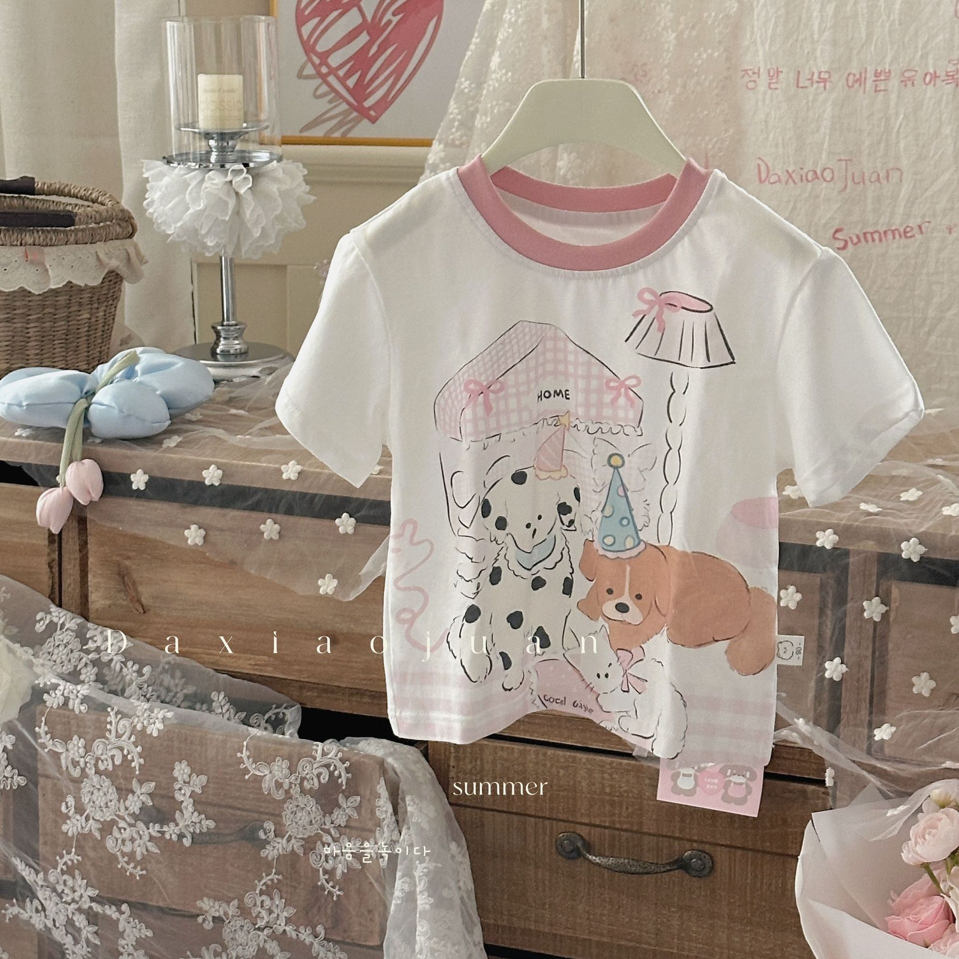 사이즈 롤 25 여름 어린이 코튼 얇은 만화 반팔 티셔츠 소년과 소녀 아기의 승무원 귀여운 코튼 탑