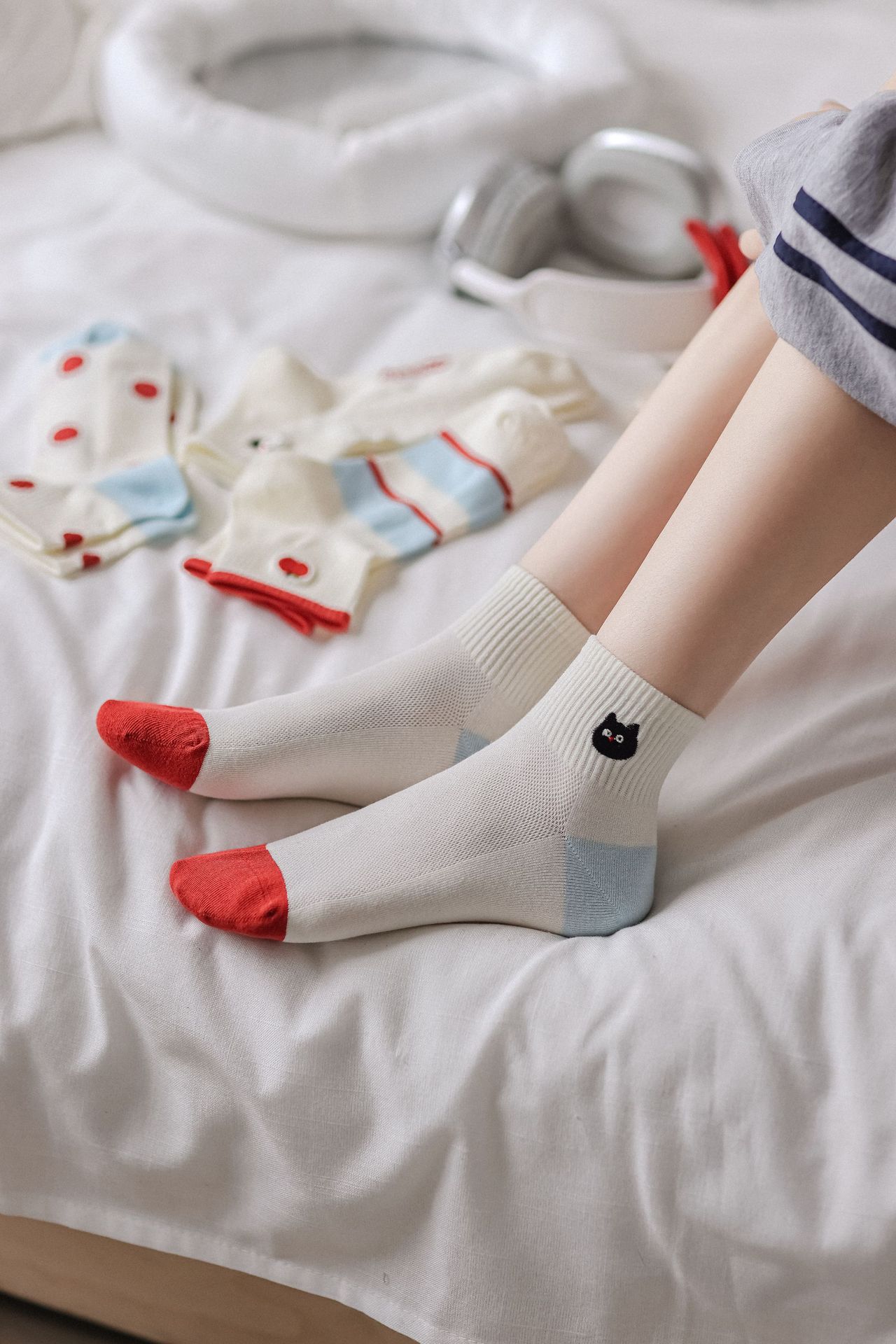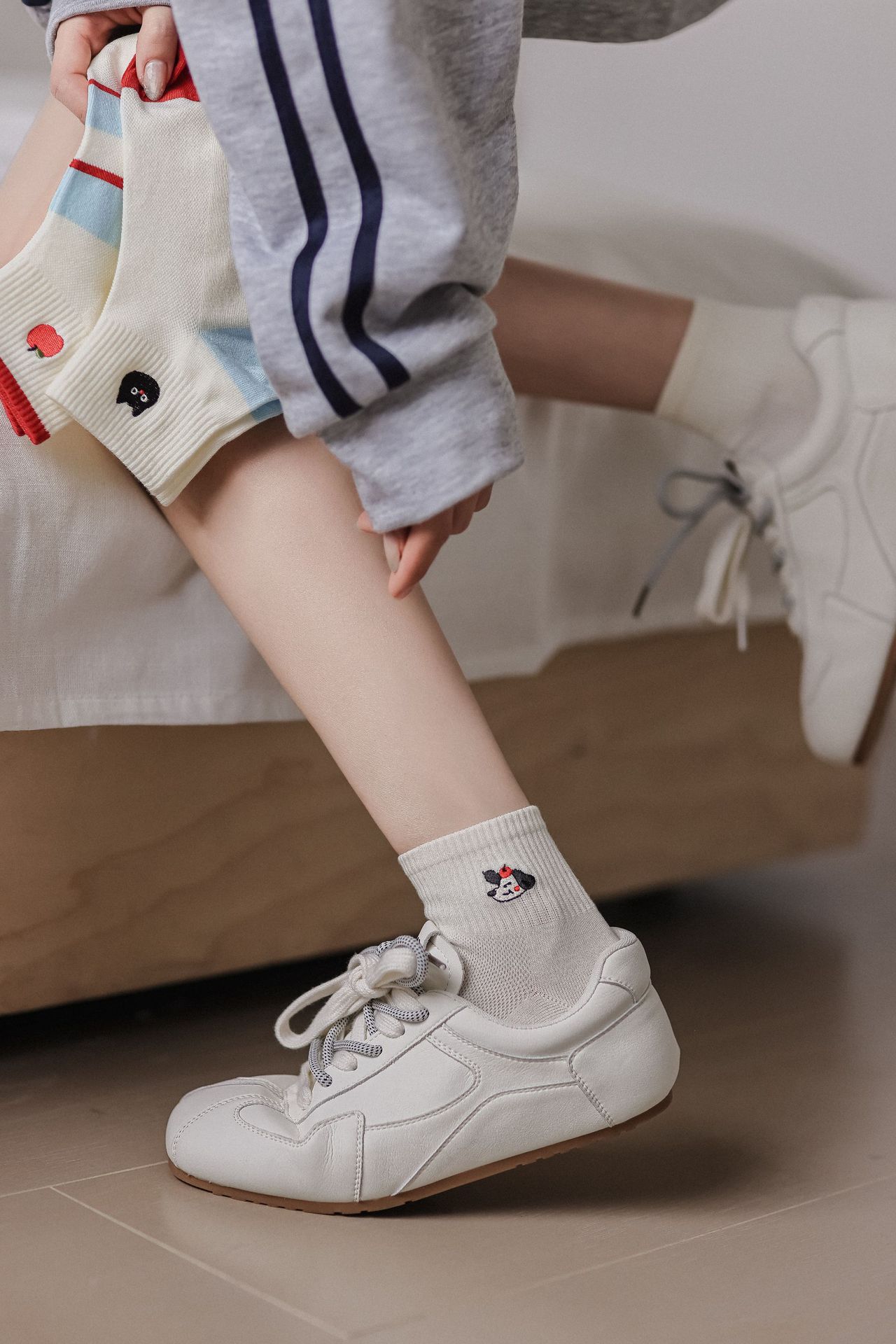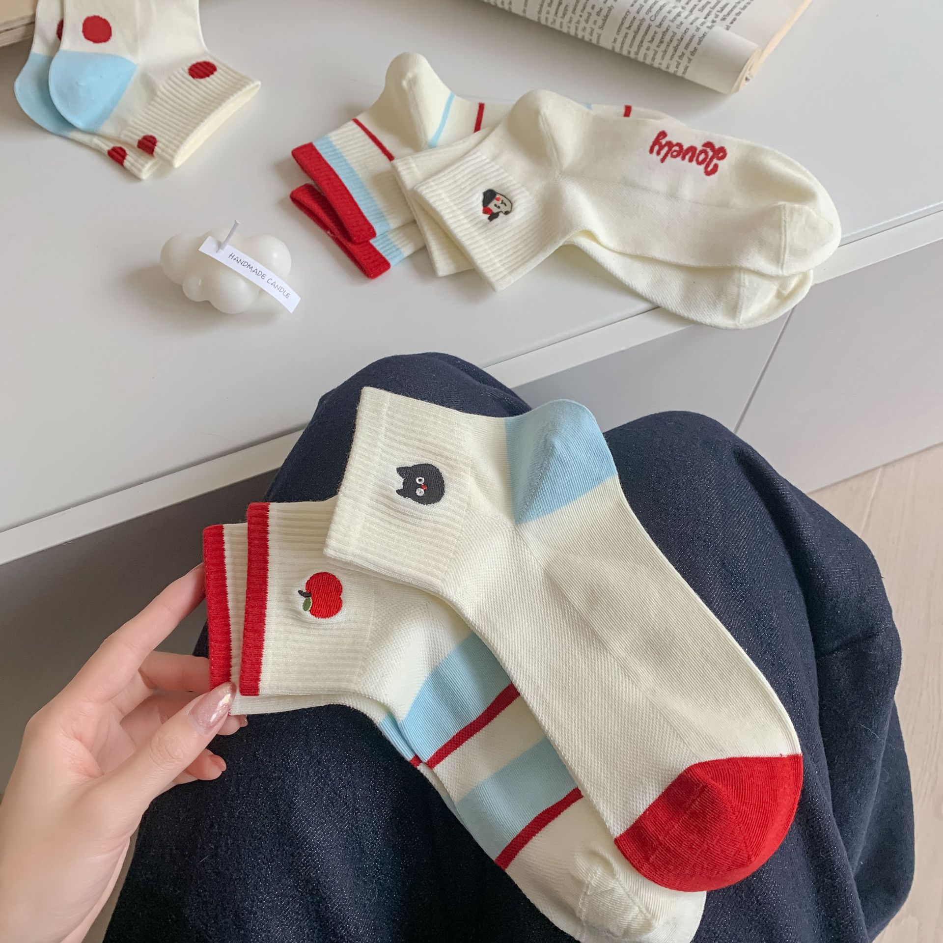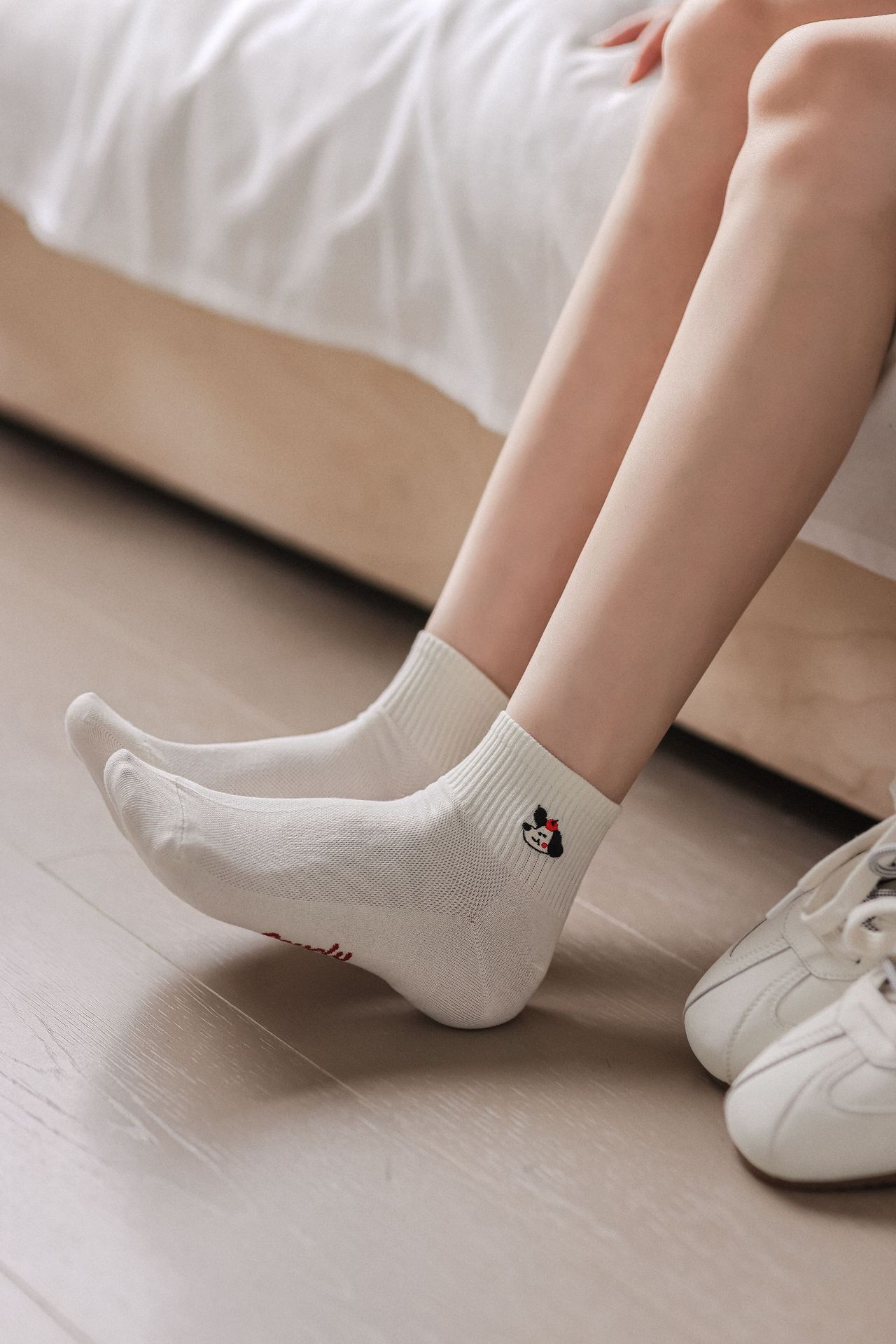 귀여운 화이트 여름 얇은 면 양말 짧은 여자 스포츠 한국 낮은 컷 땀 흡수성 통기성 자수스토어 가기