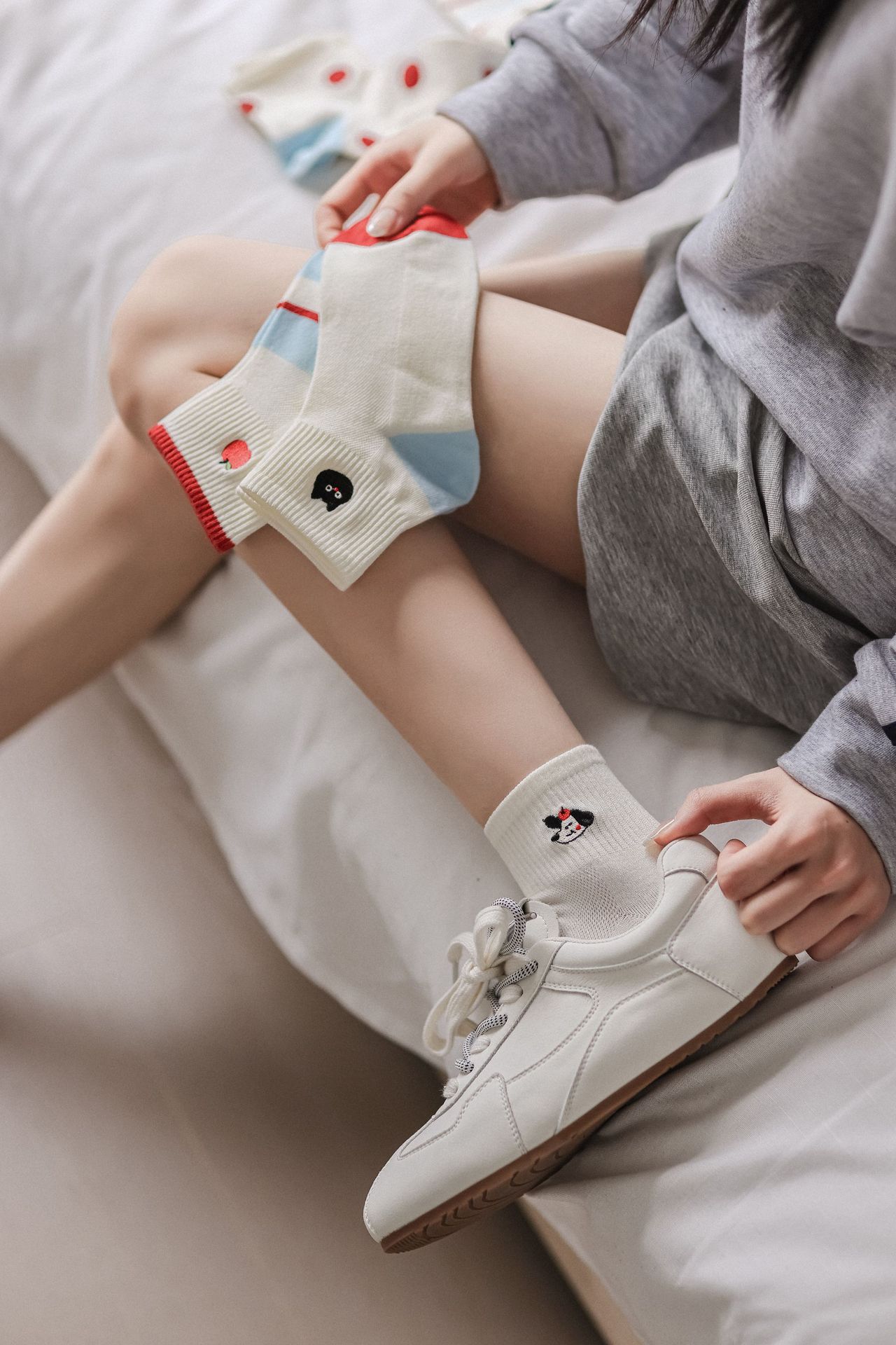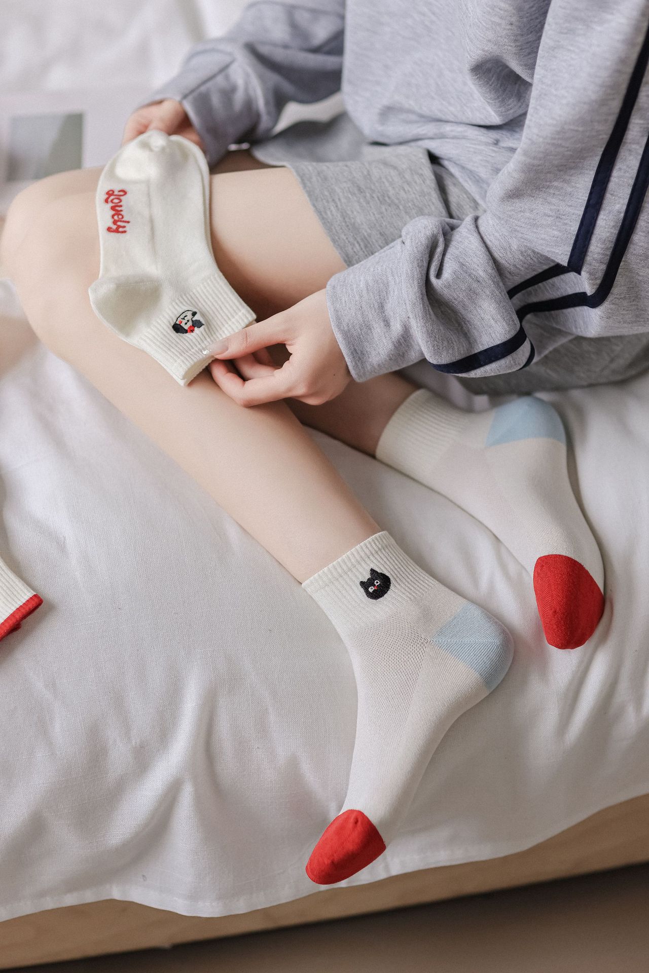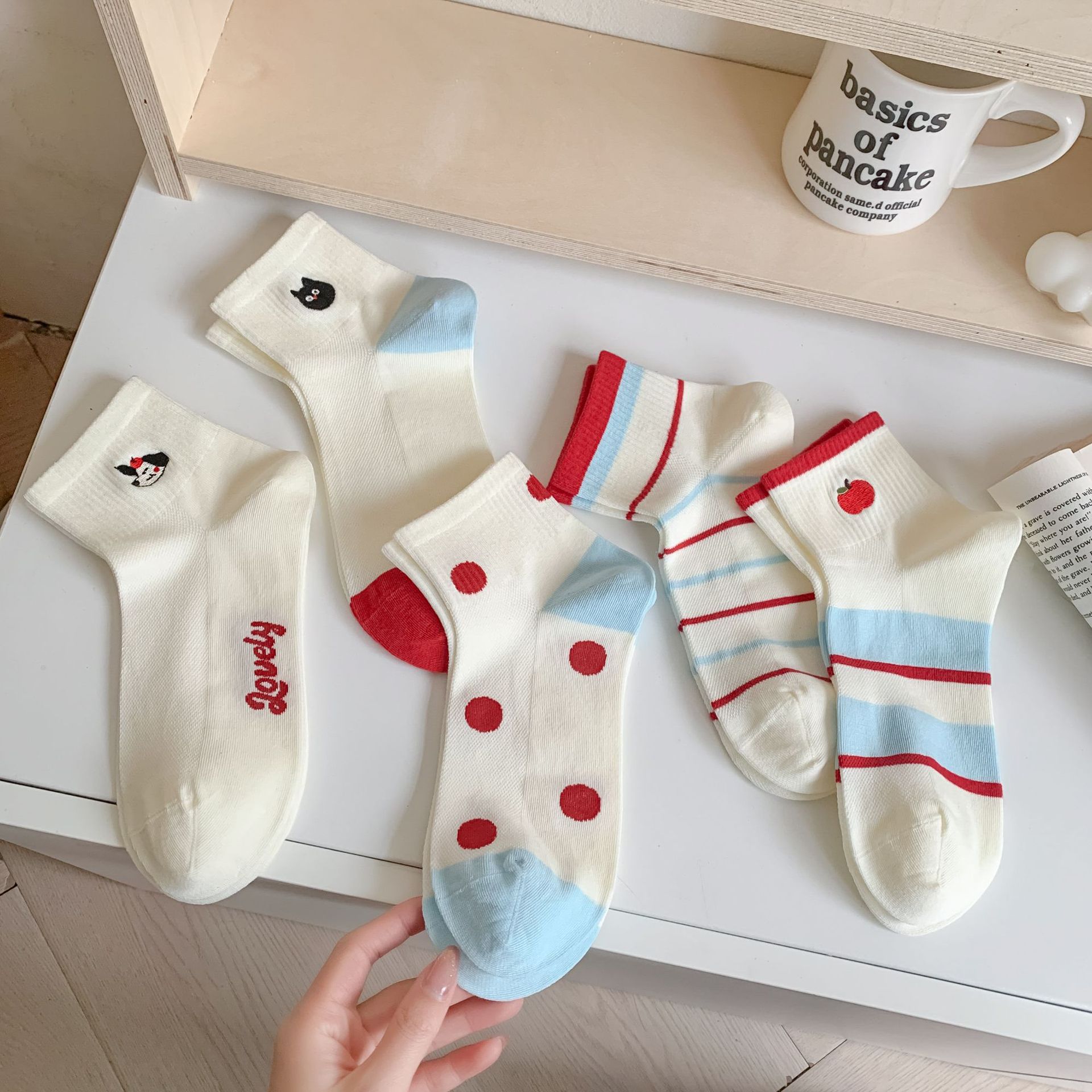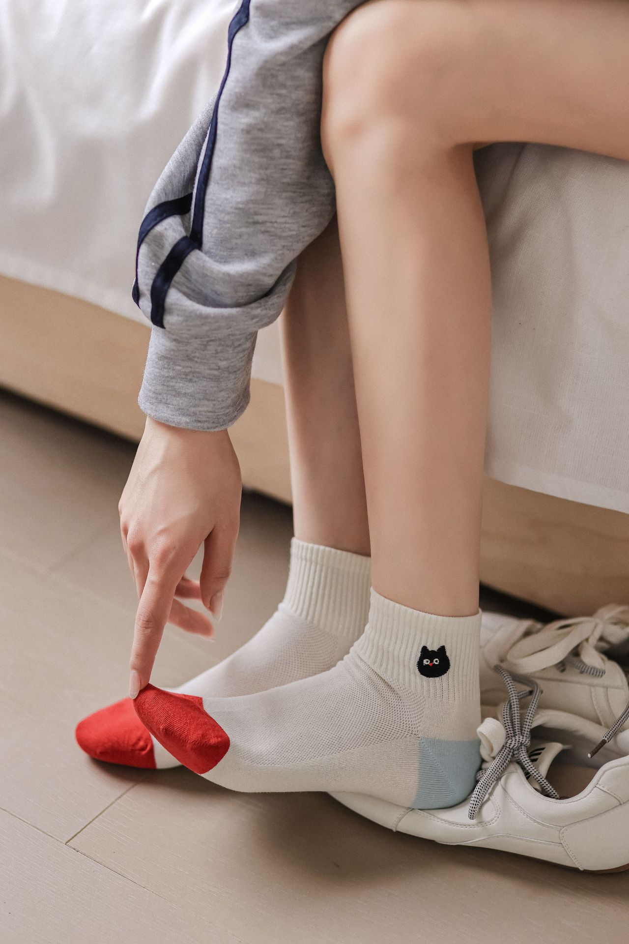 귀여운 화이트 여름 얇은 면 양말 짧은 여자 스포츠 한국 낮은 컷 땀 흡수성 통기성 자수스토어 가기
