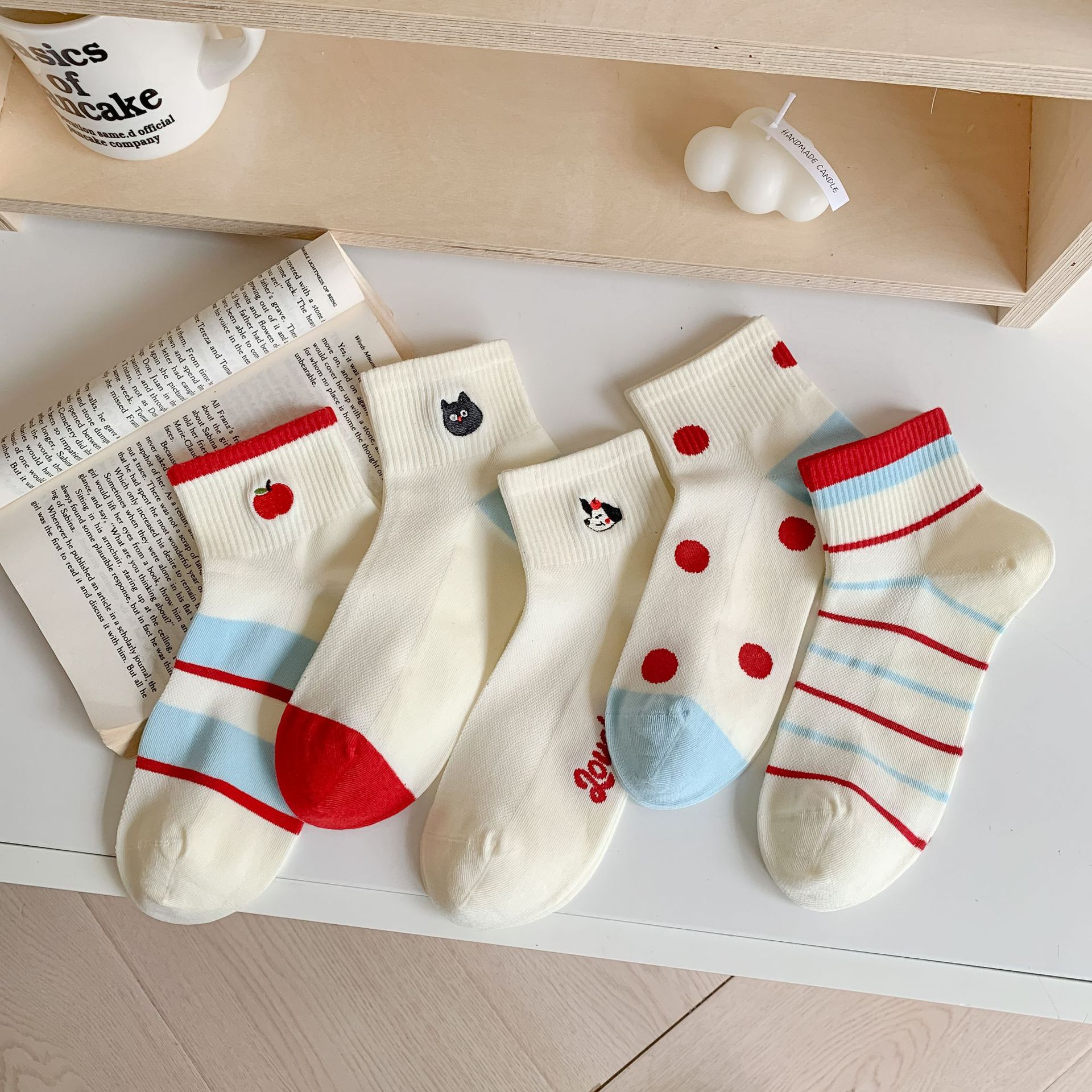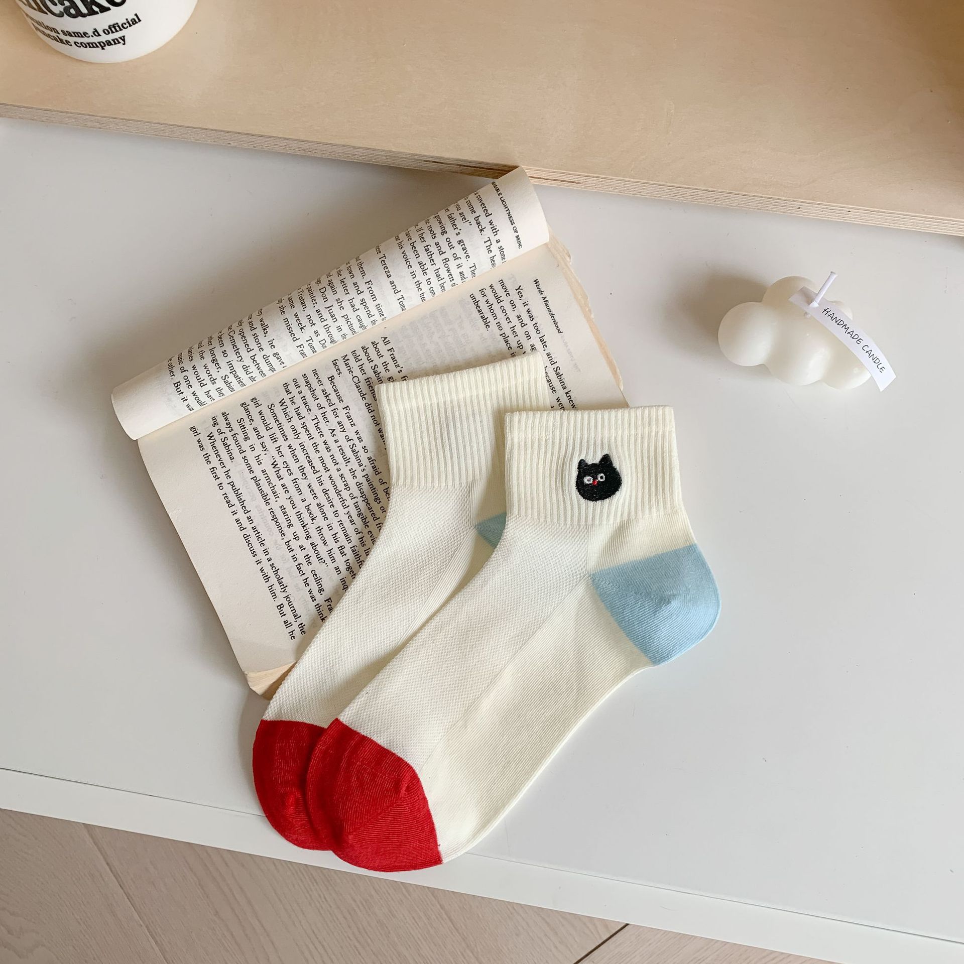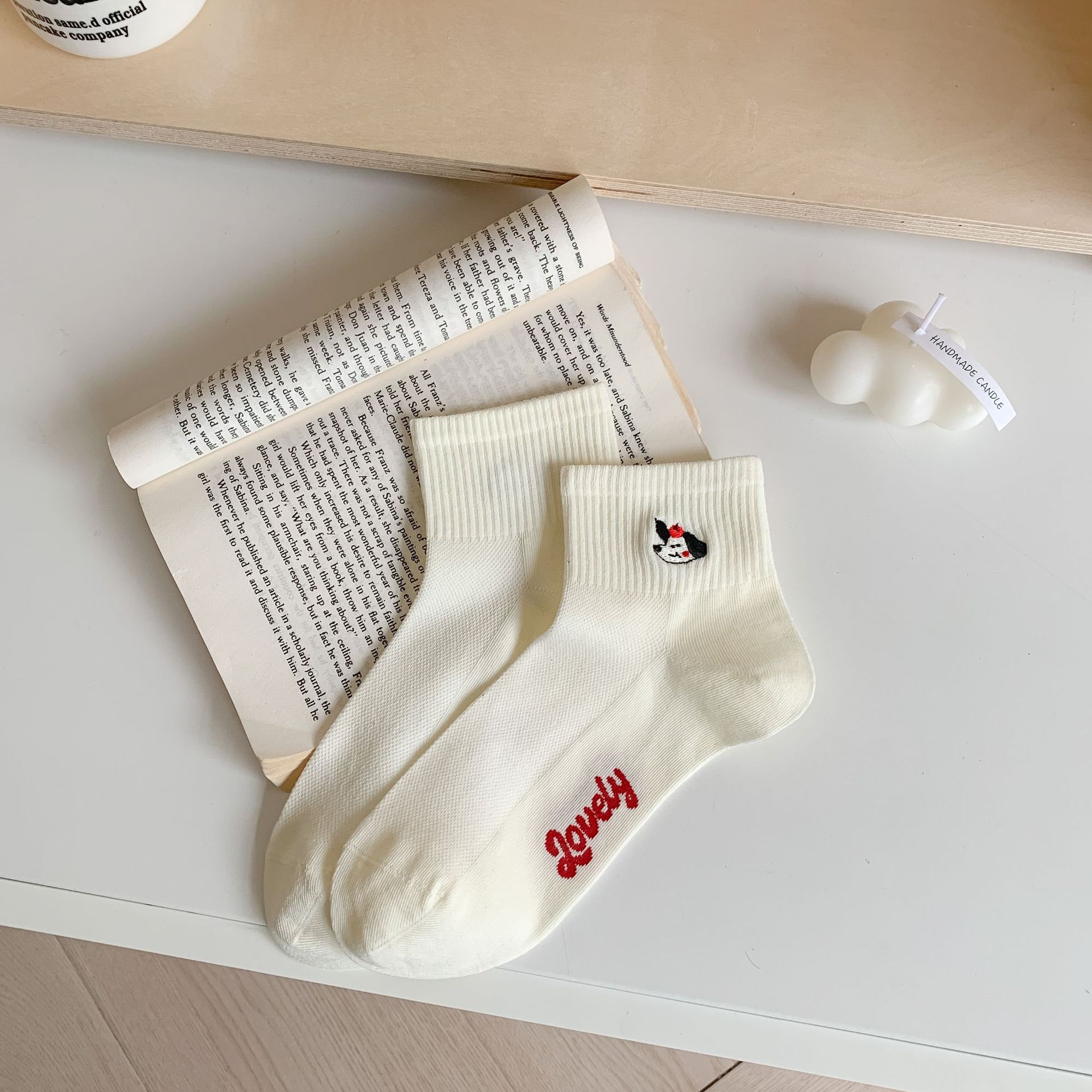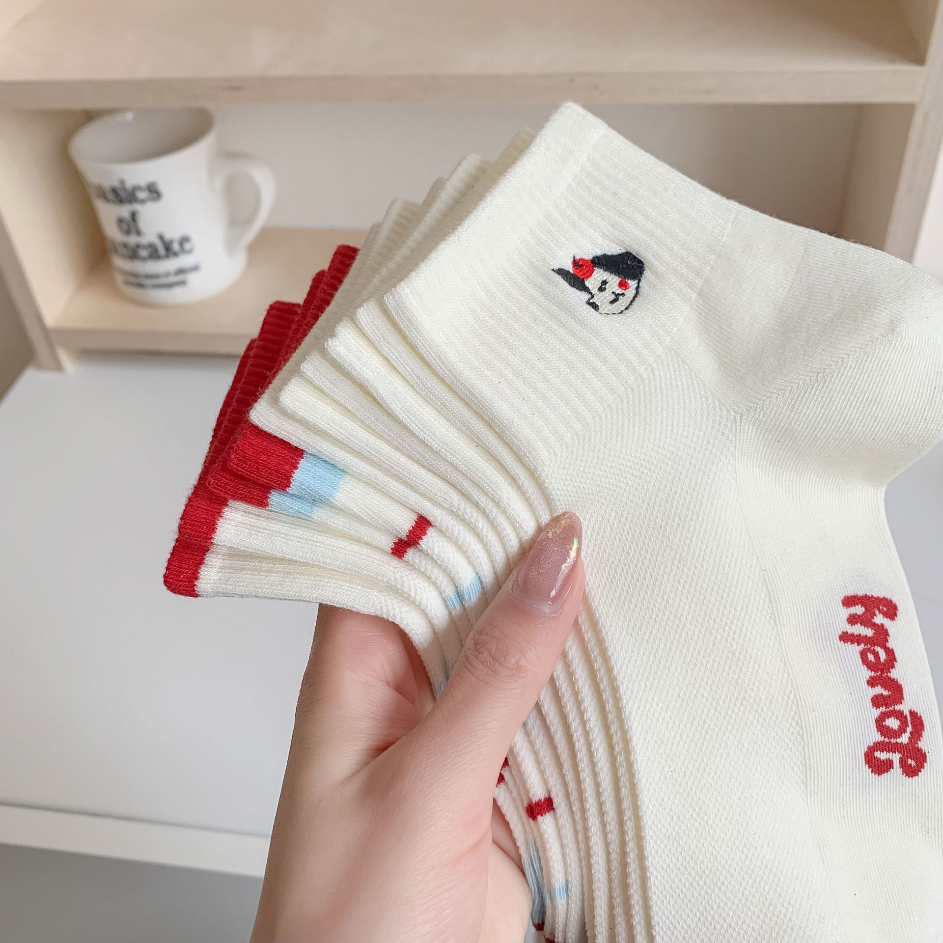 귀여운 화이트 여름 얇은 면 양말 짧은 여자 스포츠 한국 낮은 컷 땀 흡수성 통기성 자수
