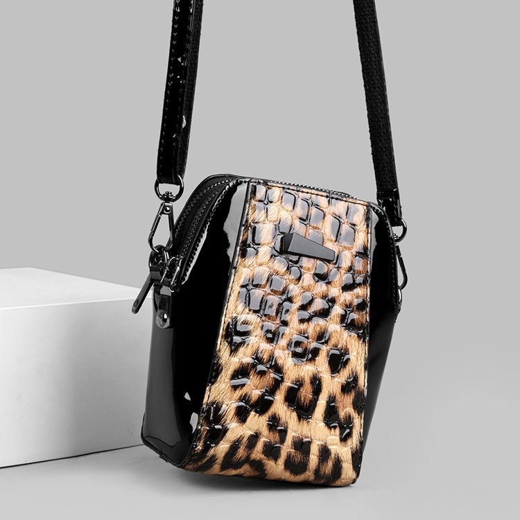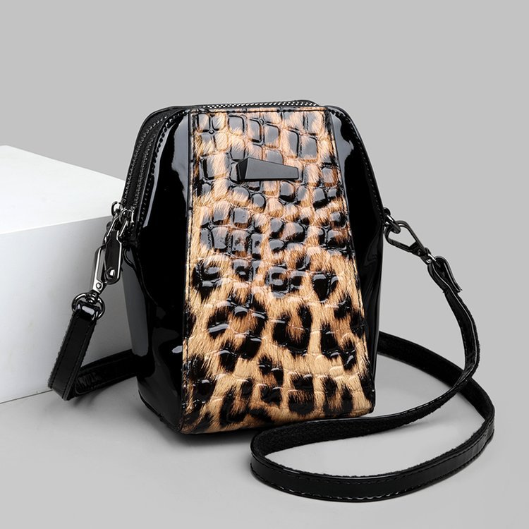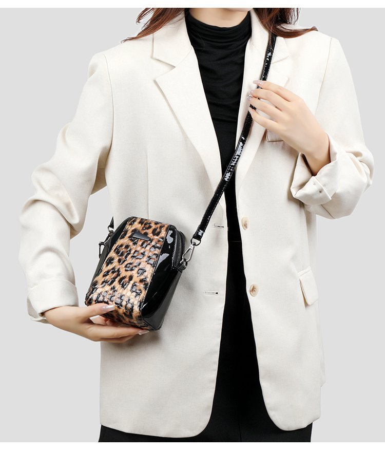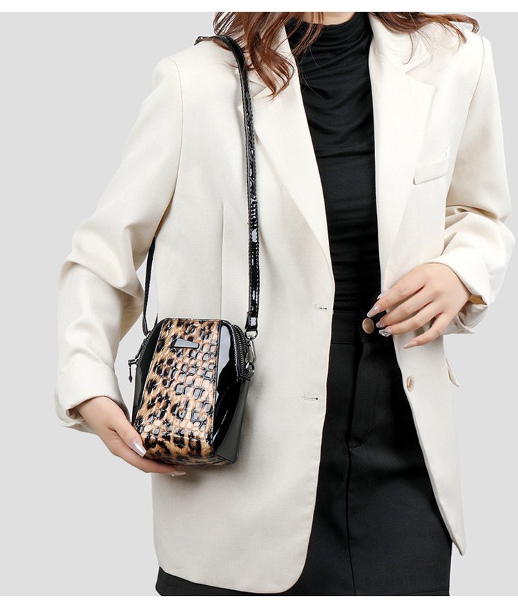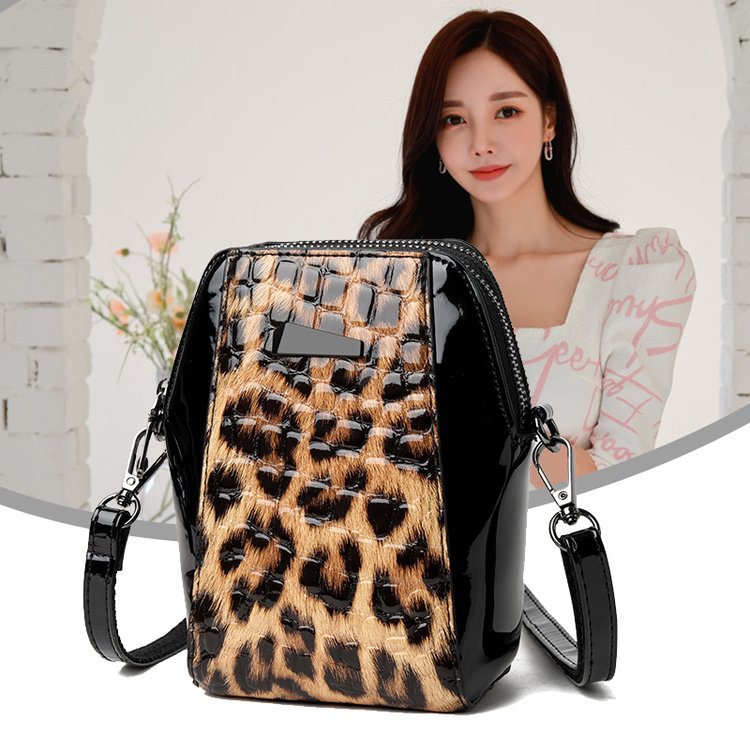 2025 패션 라이트 럭셔리 특허 가죽 레오파드 무늬 가방 여성 올 매치 캐주얼 중년 및 노인 어머니의 원 숄더 크로스 바디 휴대 전화 가방 외국 우아한