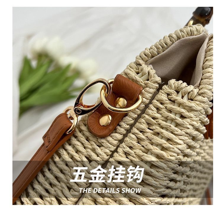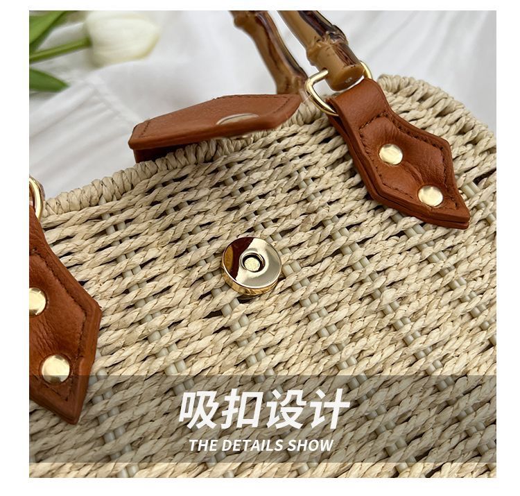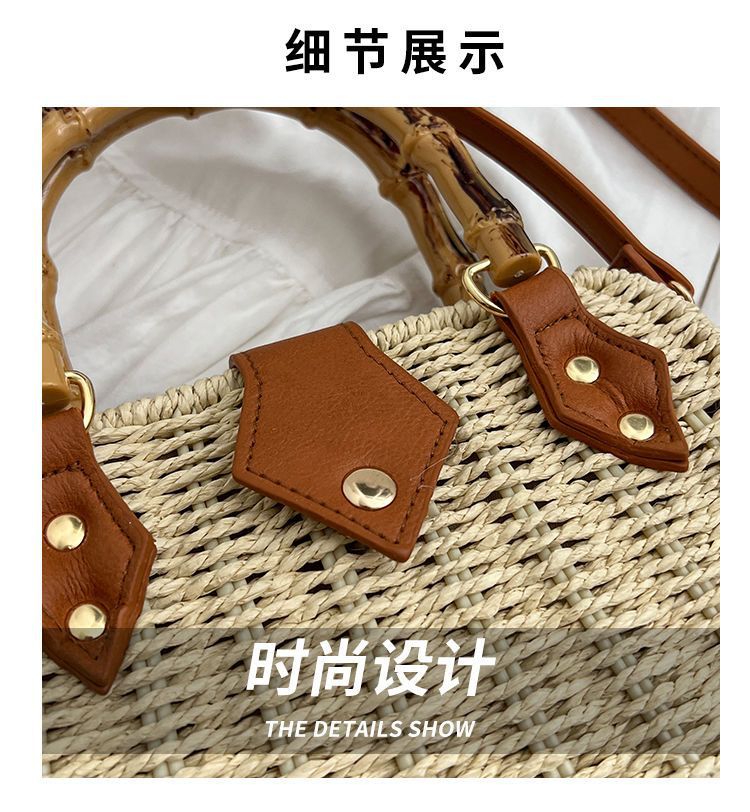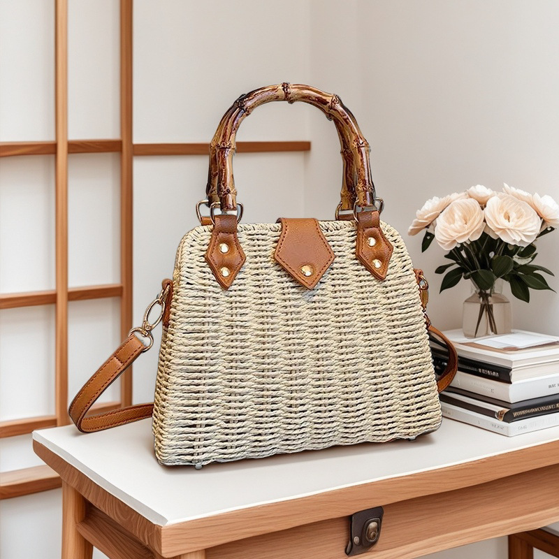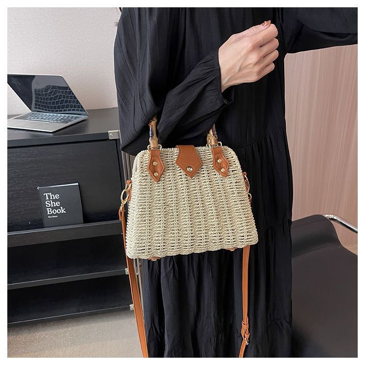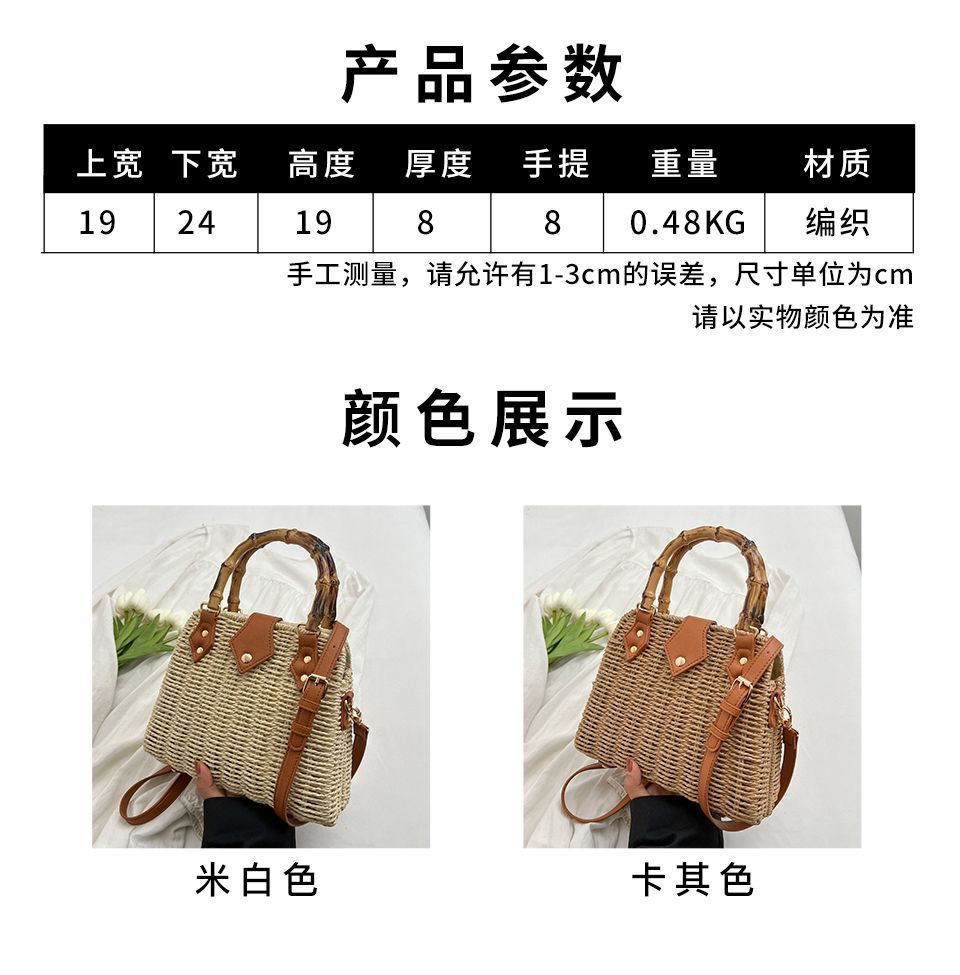 인기있는 스타일 고급 밀짚 가방 라이트 럭셔리 대나무 핸드 헬드 스퀘어 백 수제 짠 가방 아이언 프레임 크로스 백 숄더 백스토어 가기