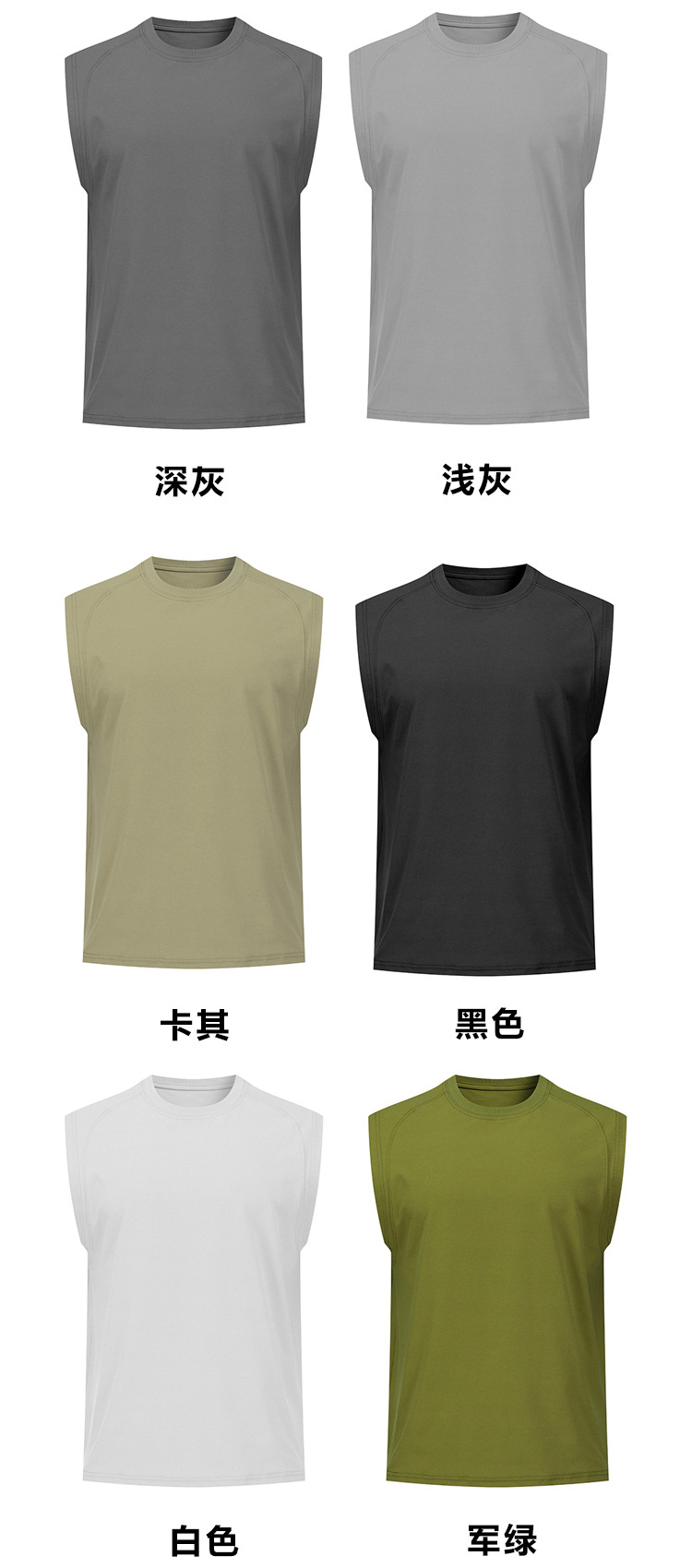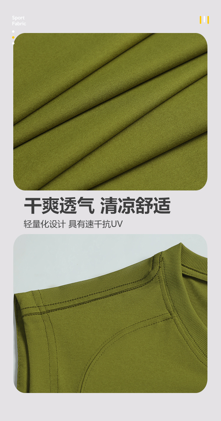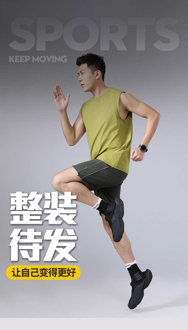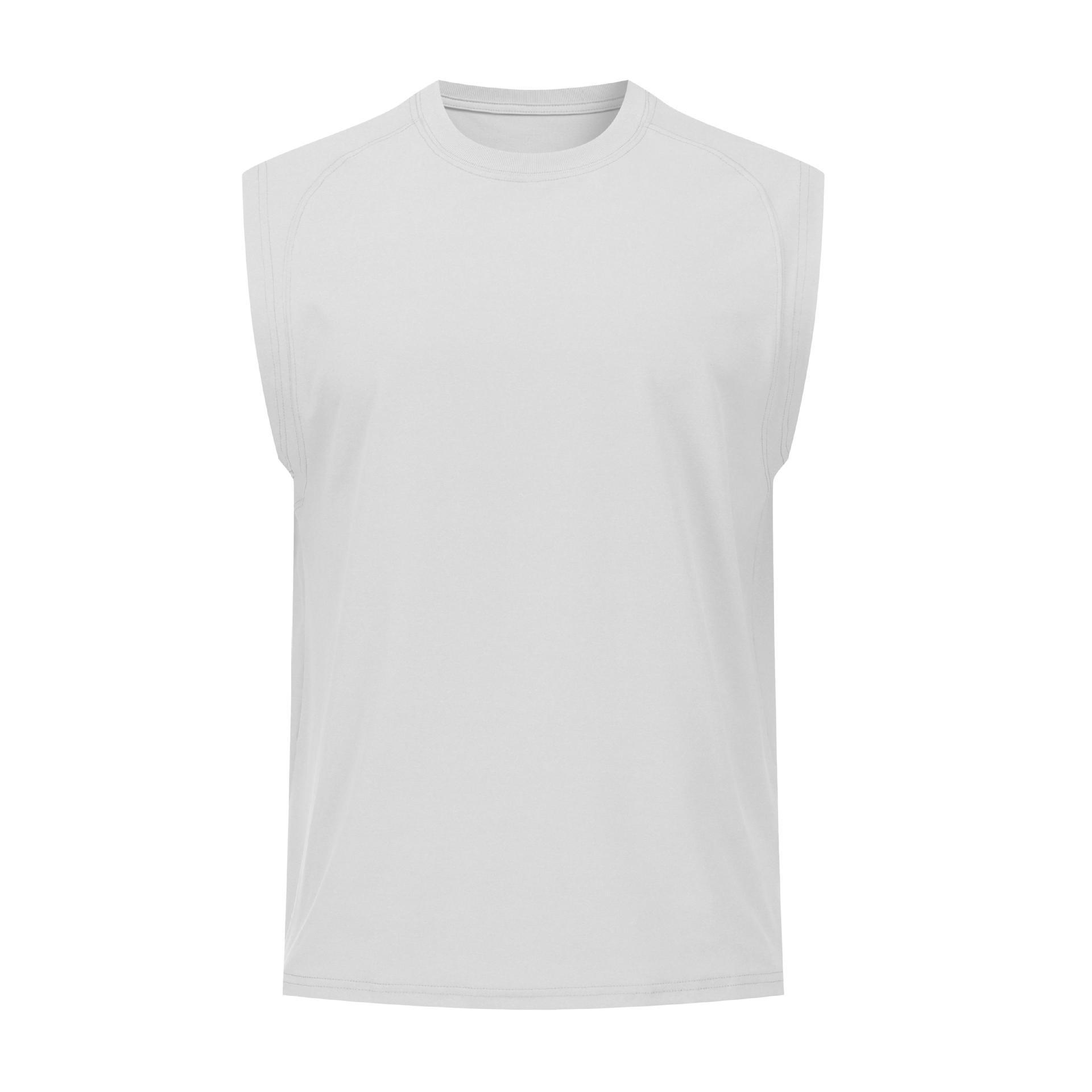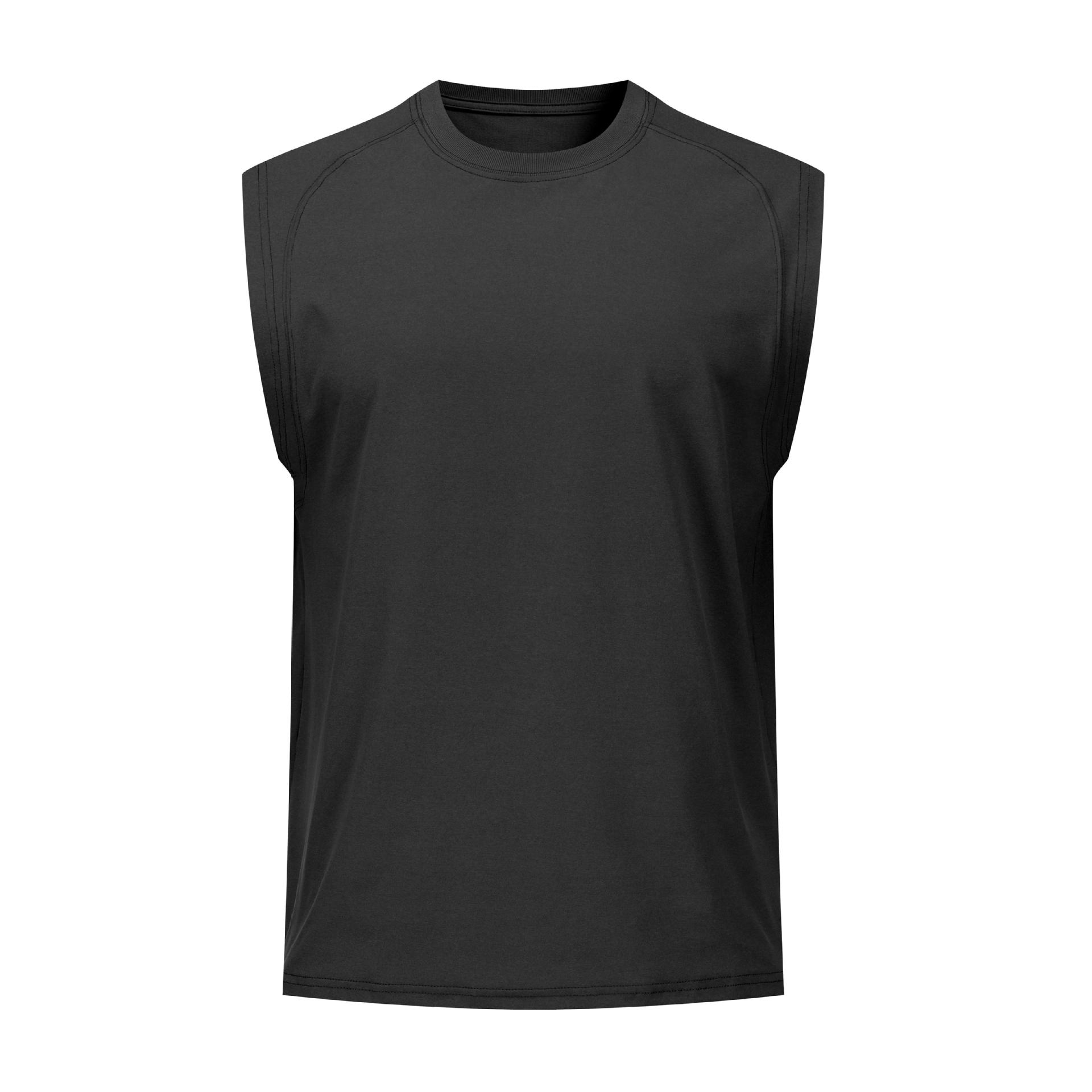 纯色宽肩高弹圆领宽松运动背心无袖 户外跑步健身透气速干t恤男