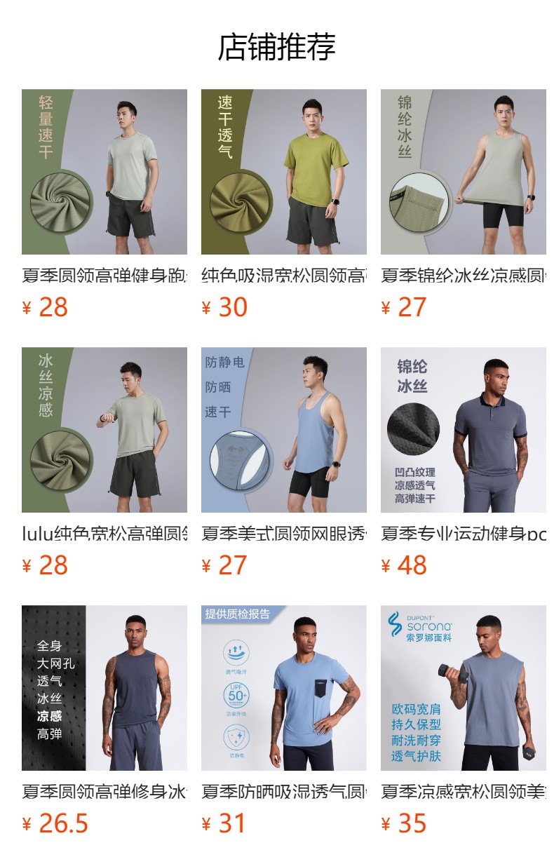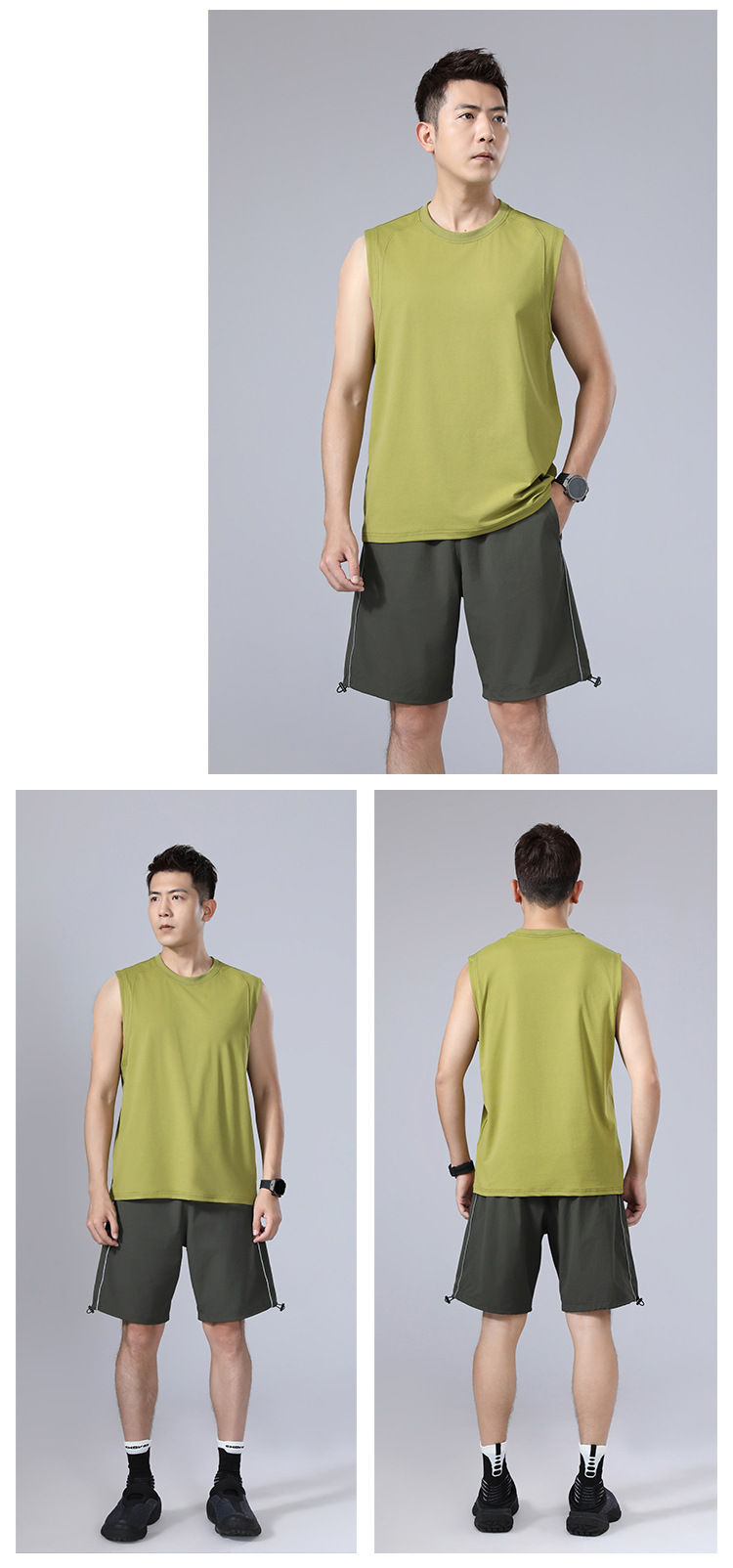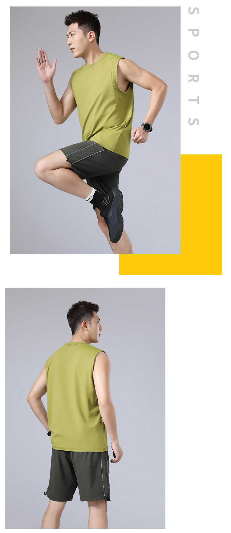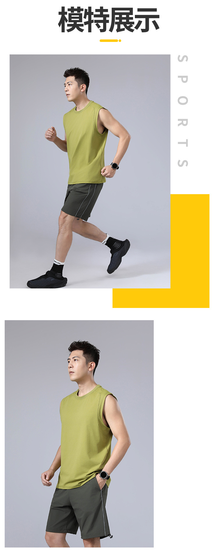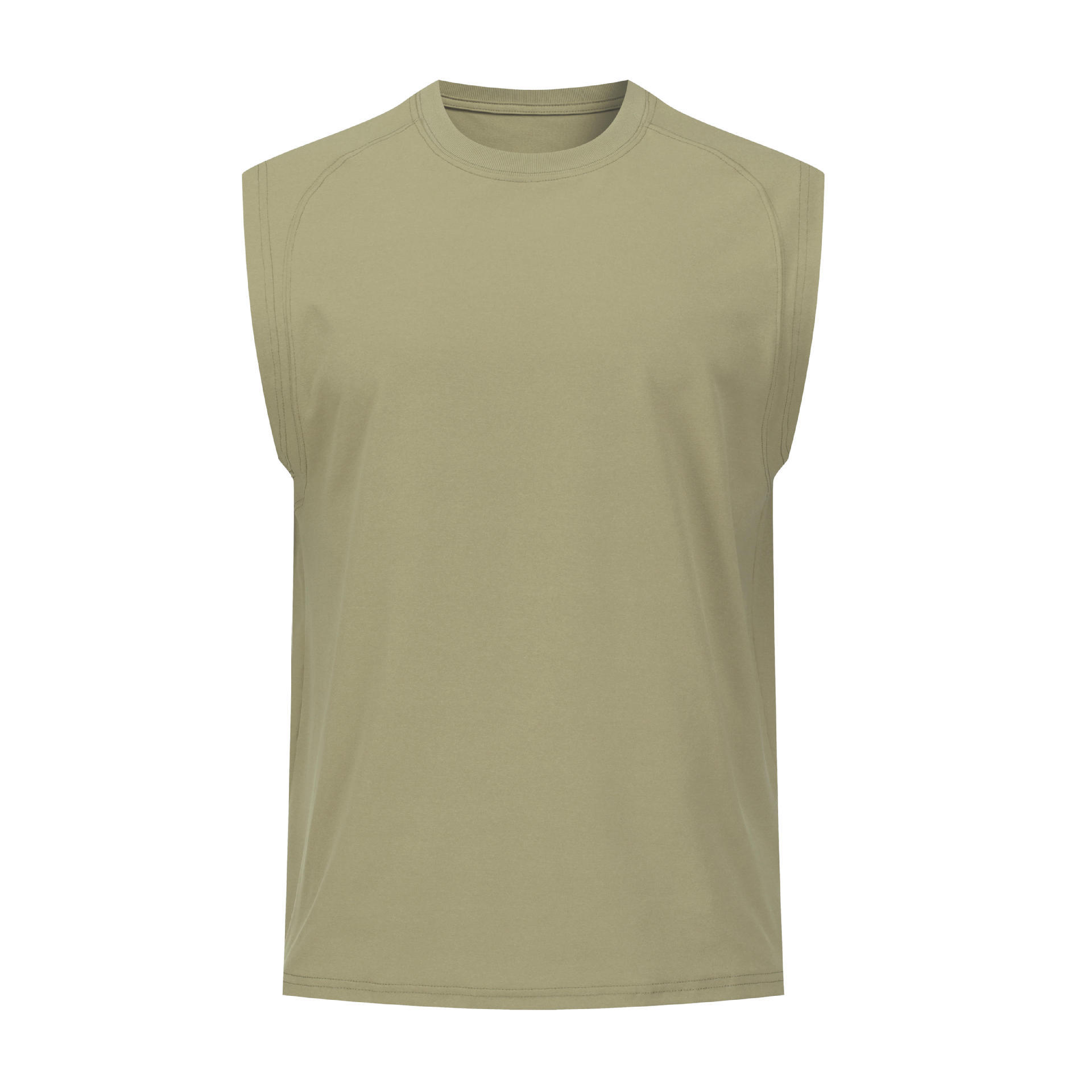 纯色宽肩高弹圆领宽松运动背心无袖 户外跑步健身透气速干t恤男