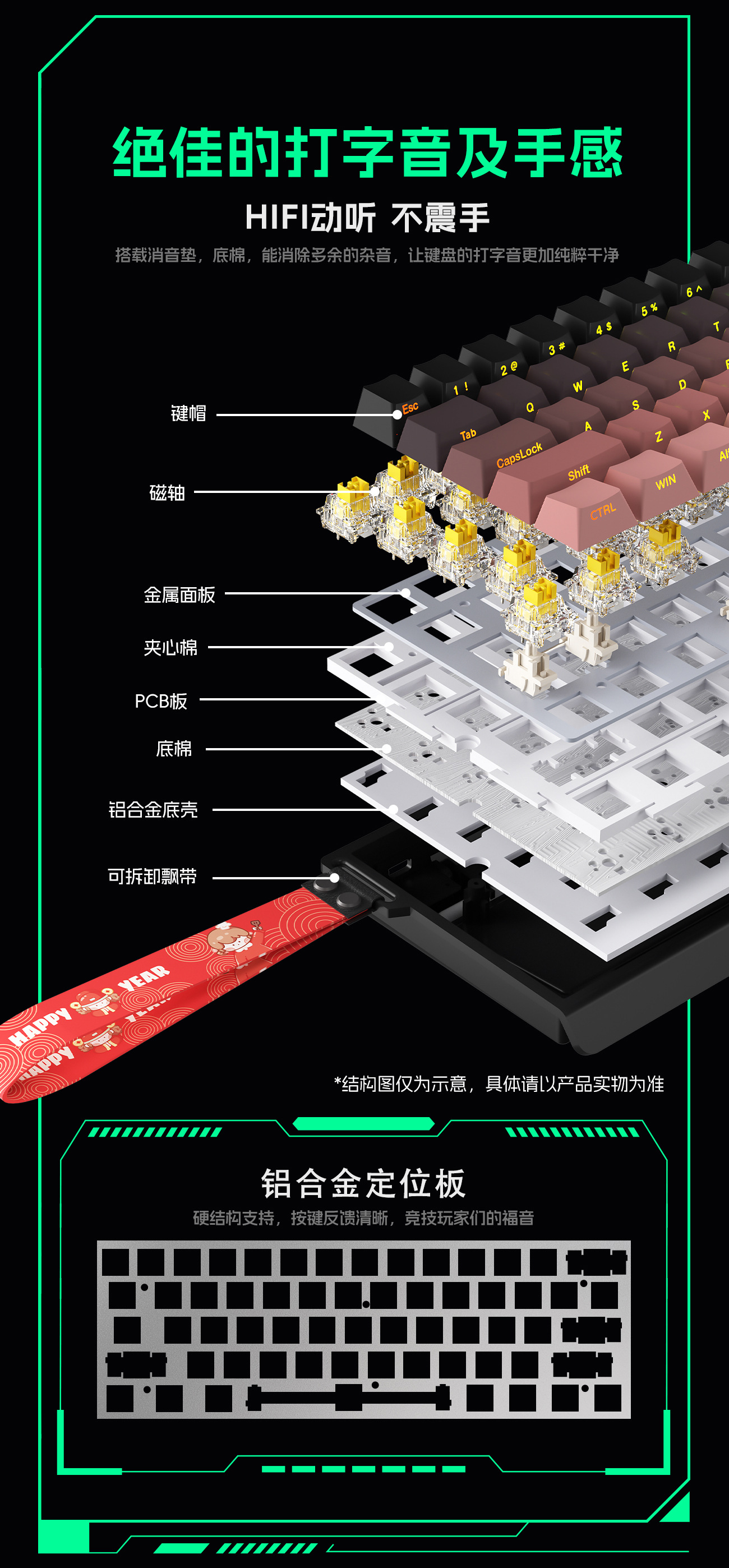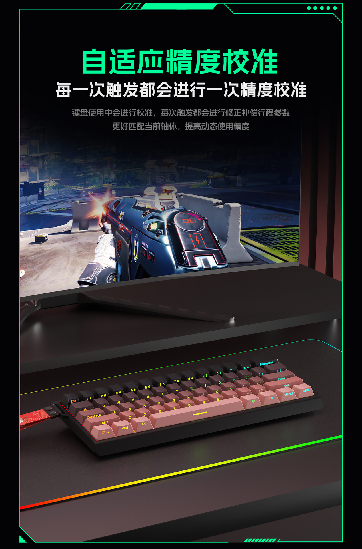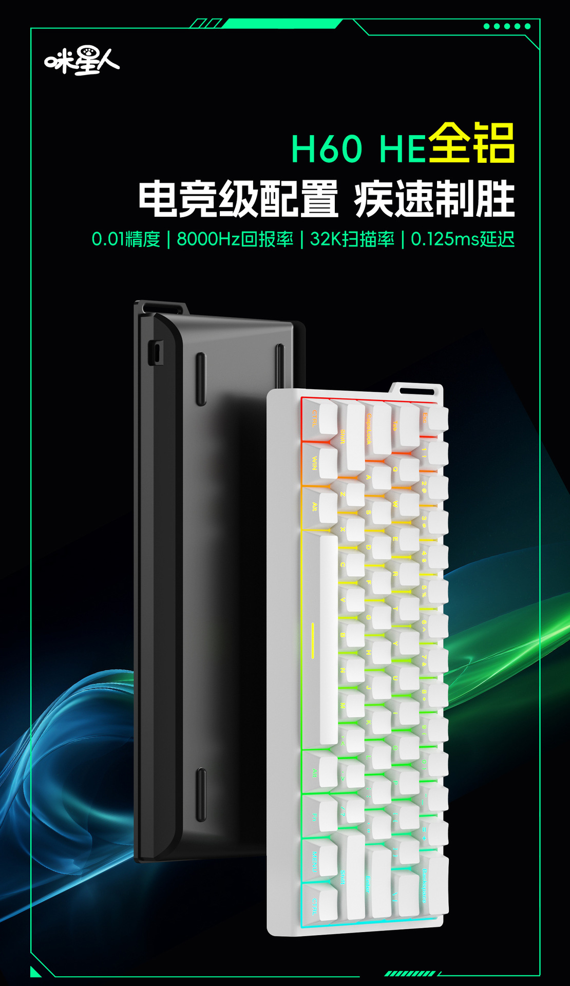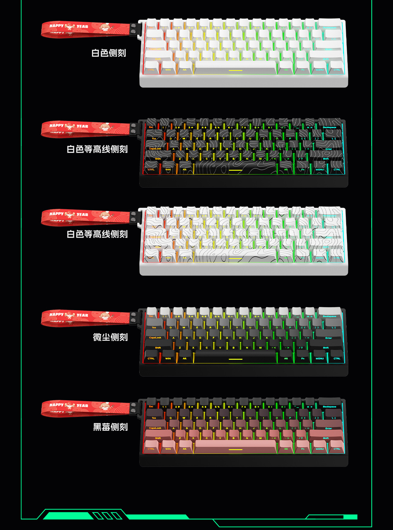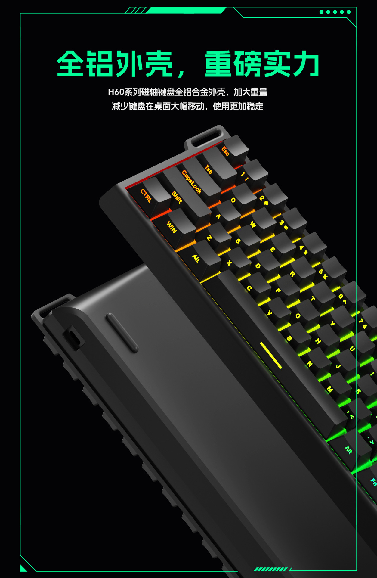 크로스보더 61키 알루미늄 일체형 기계식 마그네틱 축 키보드, 등고선 측면 각인 유선 사무용 키캡 RGB 기계식 키보드스토어 가기