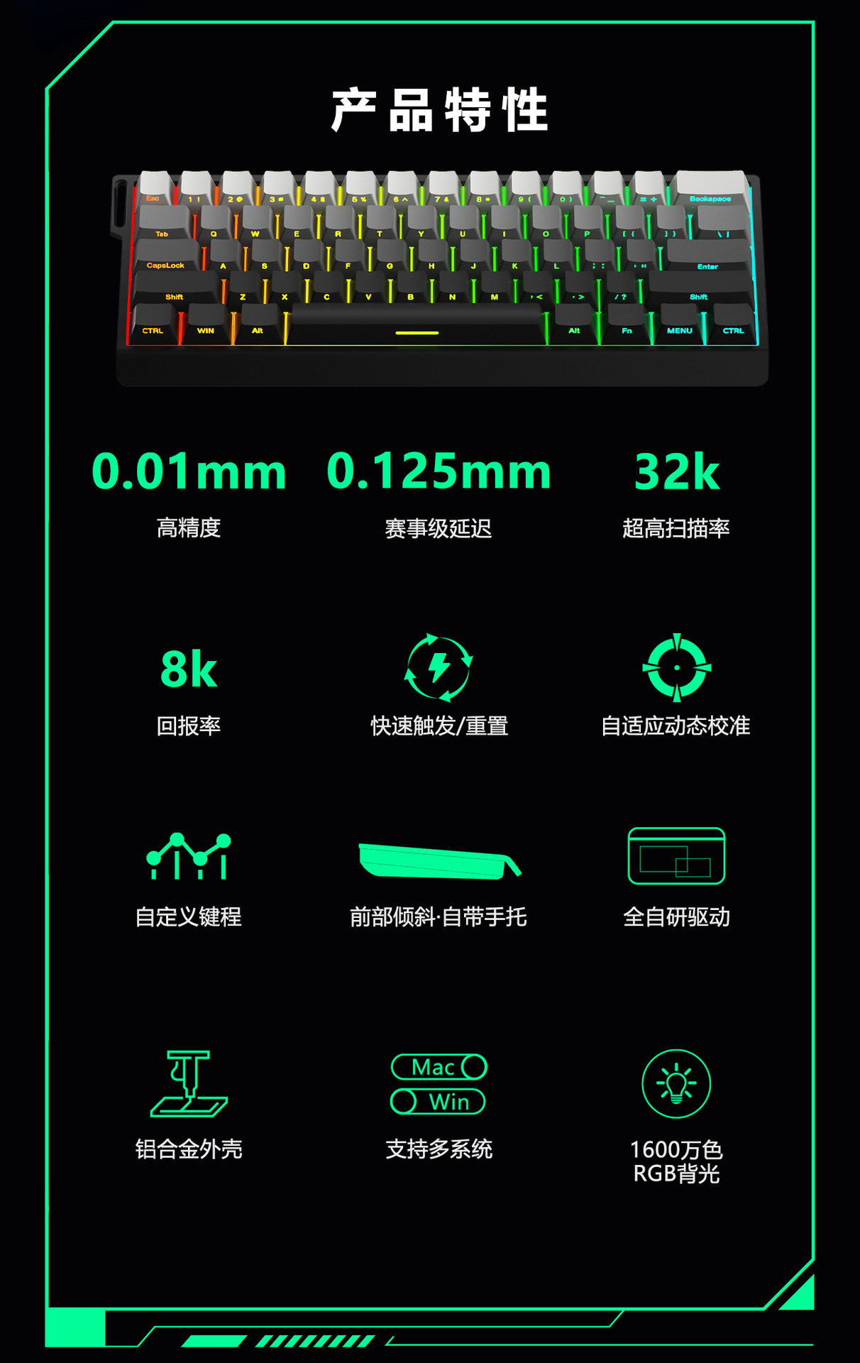 크로스보더 61키 알루미늄 일체형 기계식 마그네틱 축 키보드, 등고선 측면 각인 유선 사무용 키캡 RGB 기계식 키보드