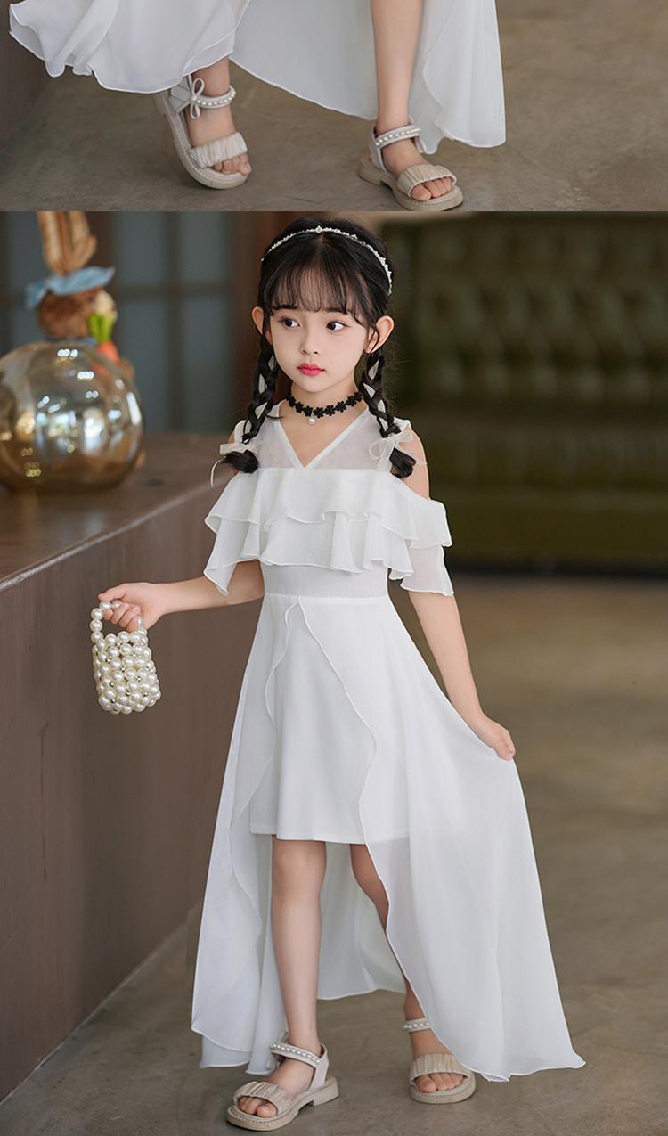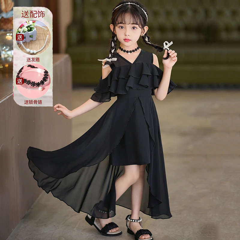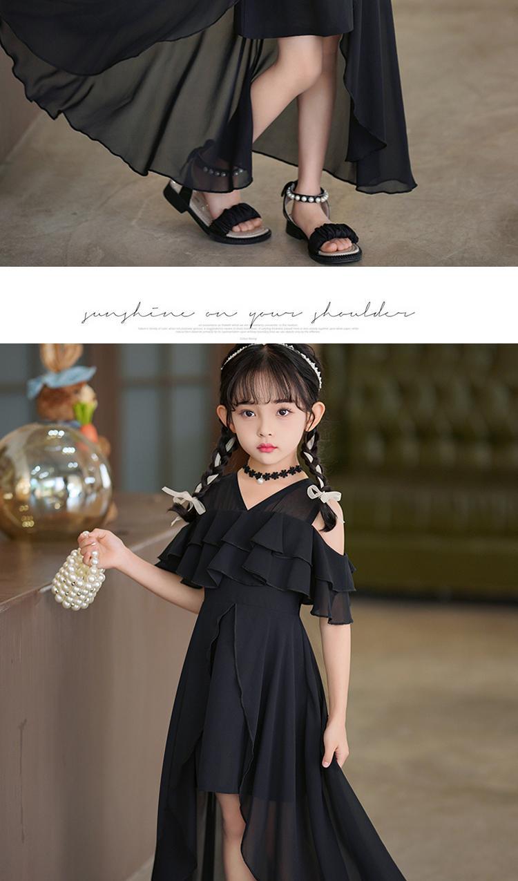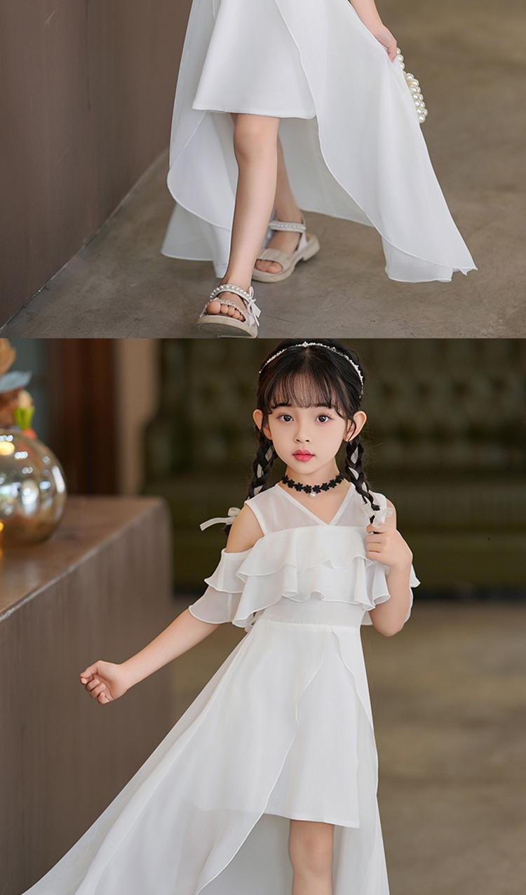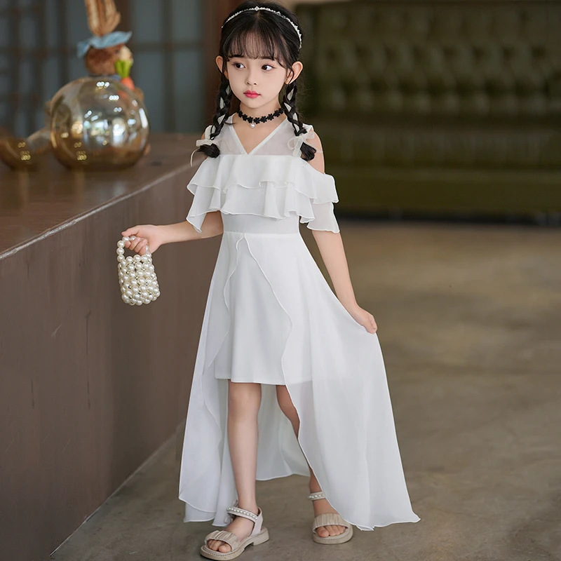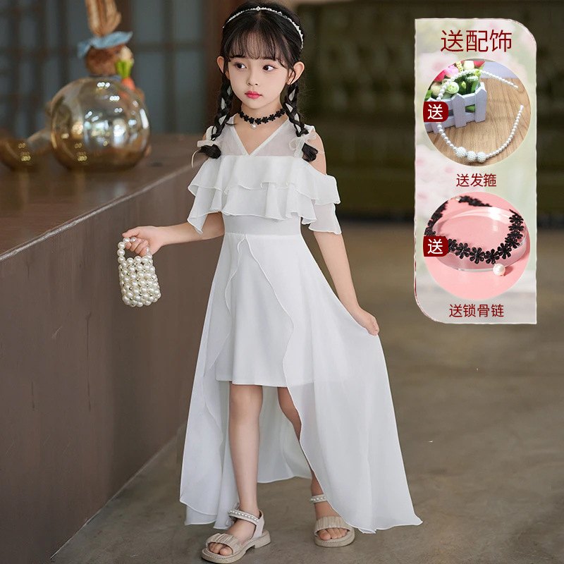 소녀 원피스 여름 2025 새로운 어린이 시폰 치마 어깨 중간 길이의 세련된 소녀의 꽃 치마스토어 가기