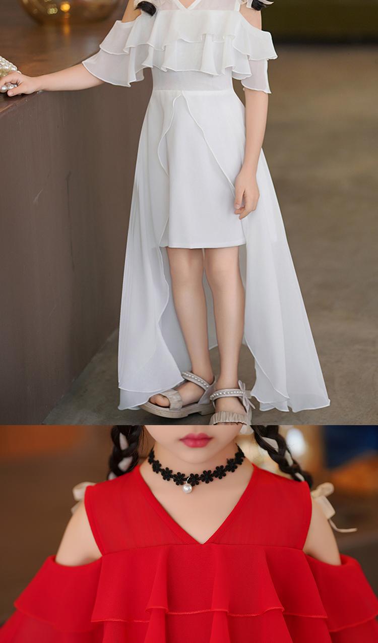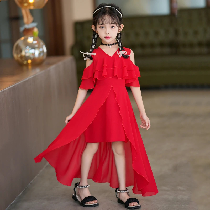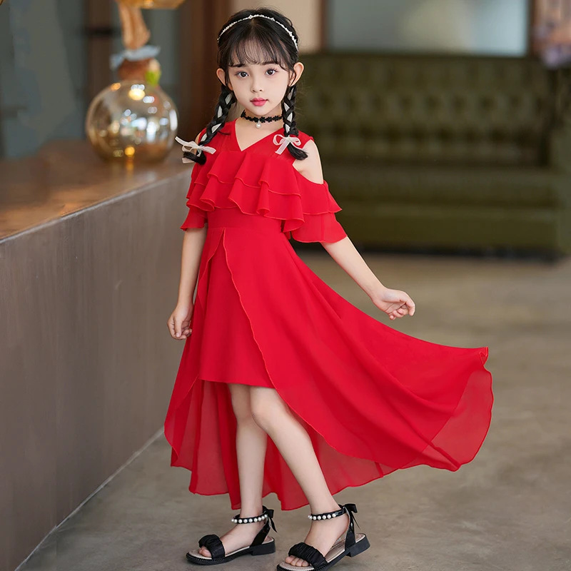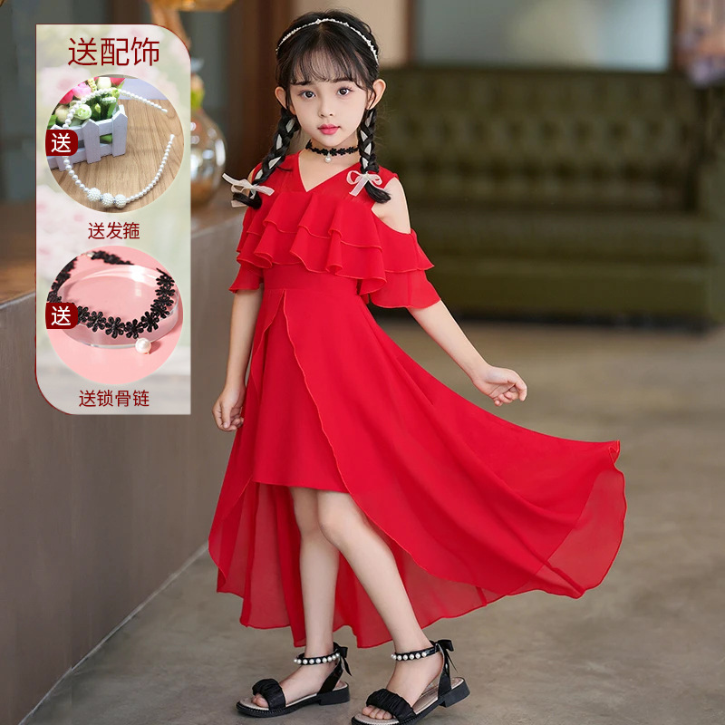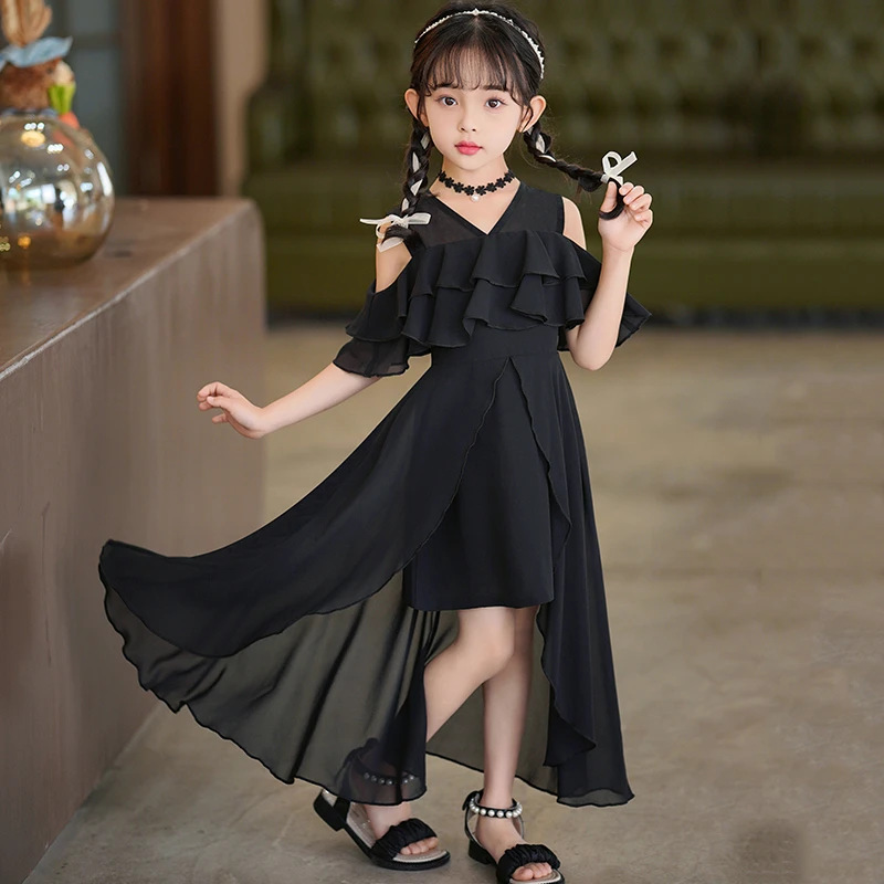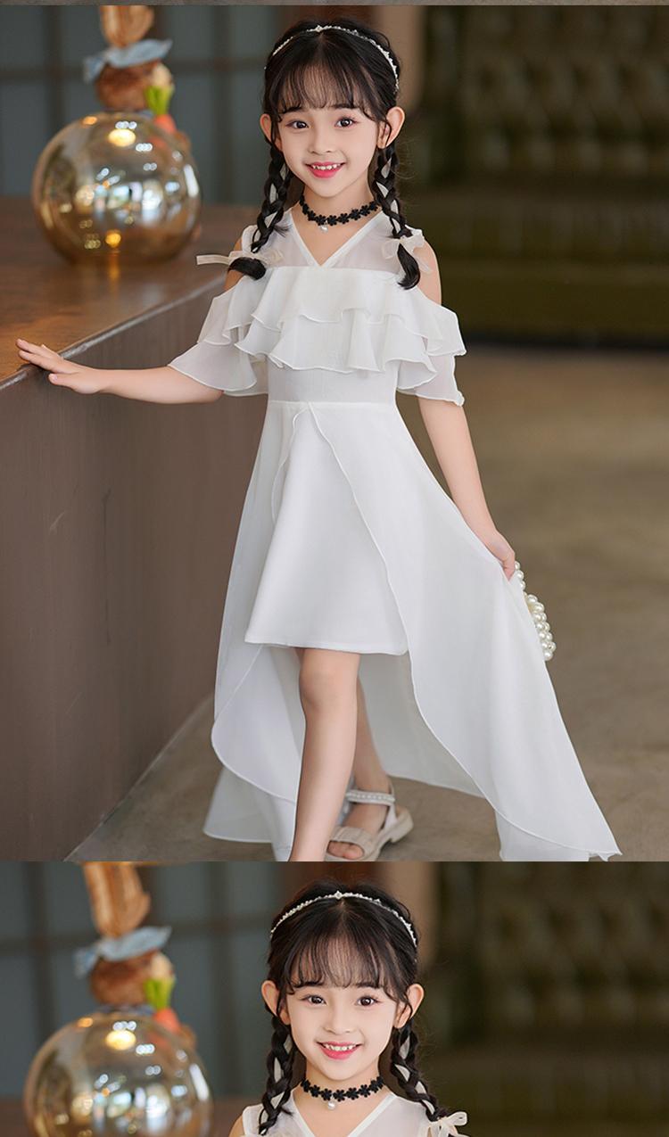 소녀 원피스 여름 2025 새로운 어린이 시폰 치마 어깨 중간 길이의 세련된 소녀의 꽃 치마스토어 가기