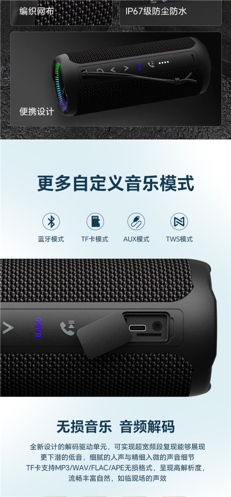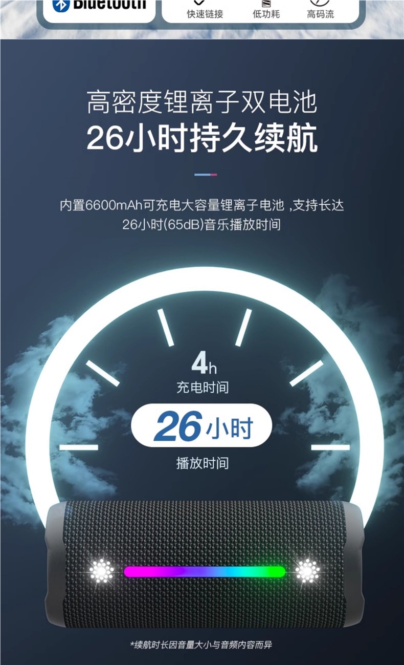 • Starry Sky Grey [새로운 상위 버전] 1.1 채널/35W 고출력/6600mAh 긴 배터리 수명/중저음 스위치