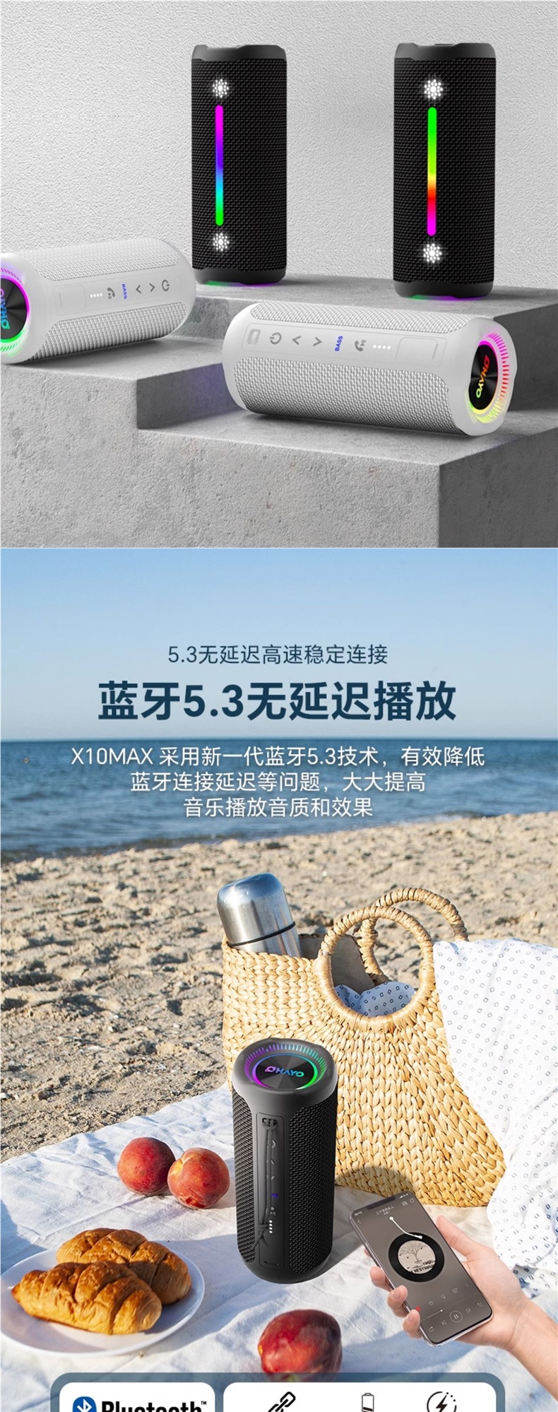 x10MAX 블루투스 스피커 35W 대용량 슈퍼 서브우퍼 홈 야외 휴대용 자동차 소형 스피커스토어 가기
