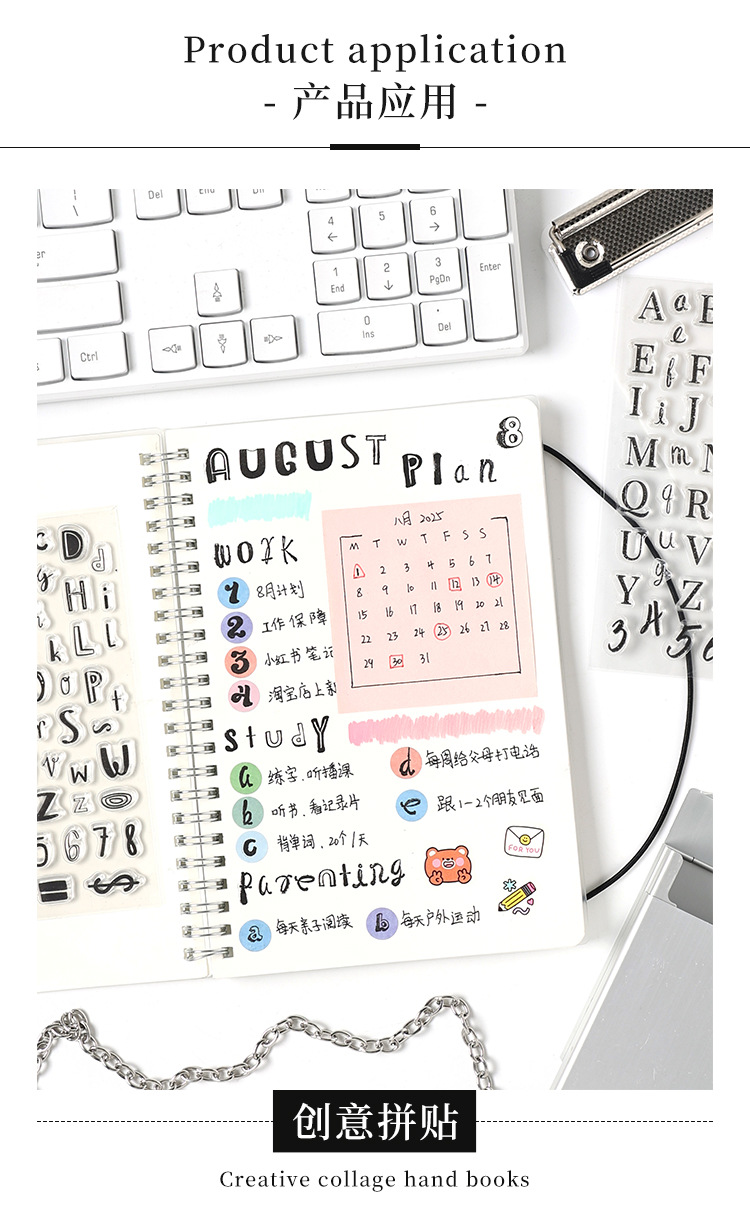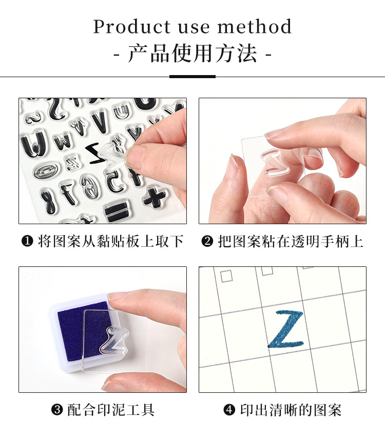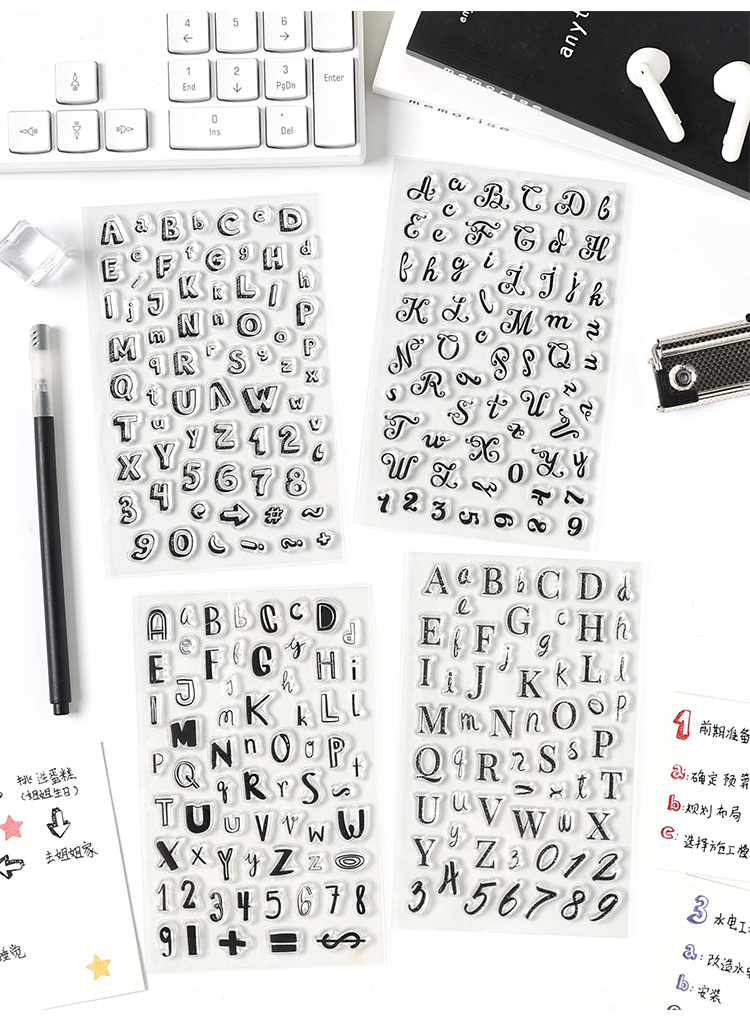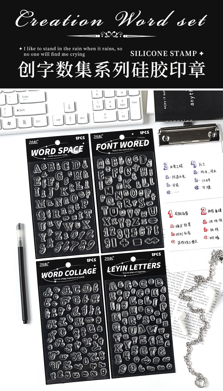 단어 생성 번호 세트 문자 투명 씰 디지털 실리콘 씰 DIY 핸드 씰 도매를 위해 독점적 인 국경스토어 가기