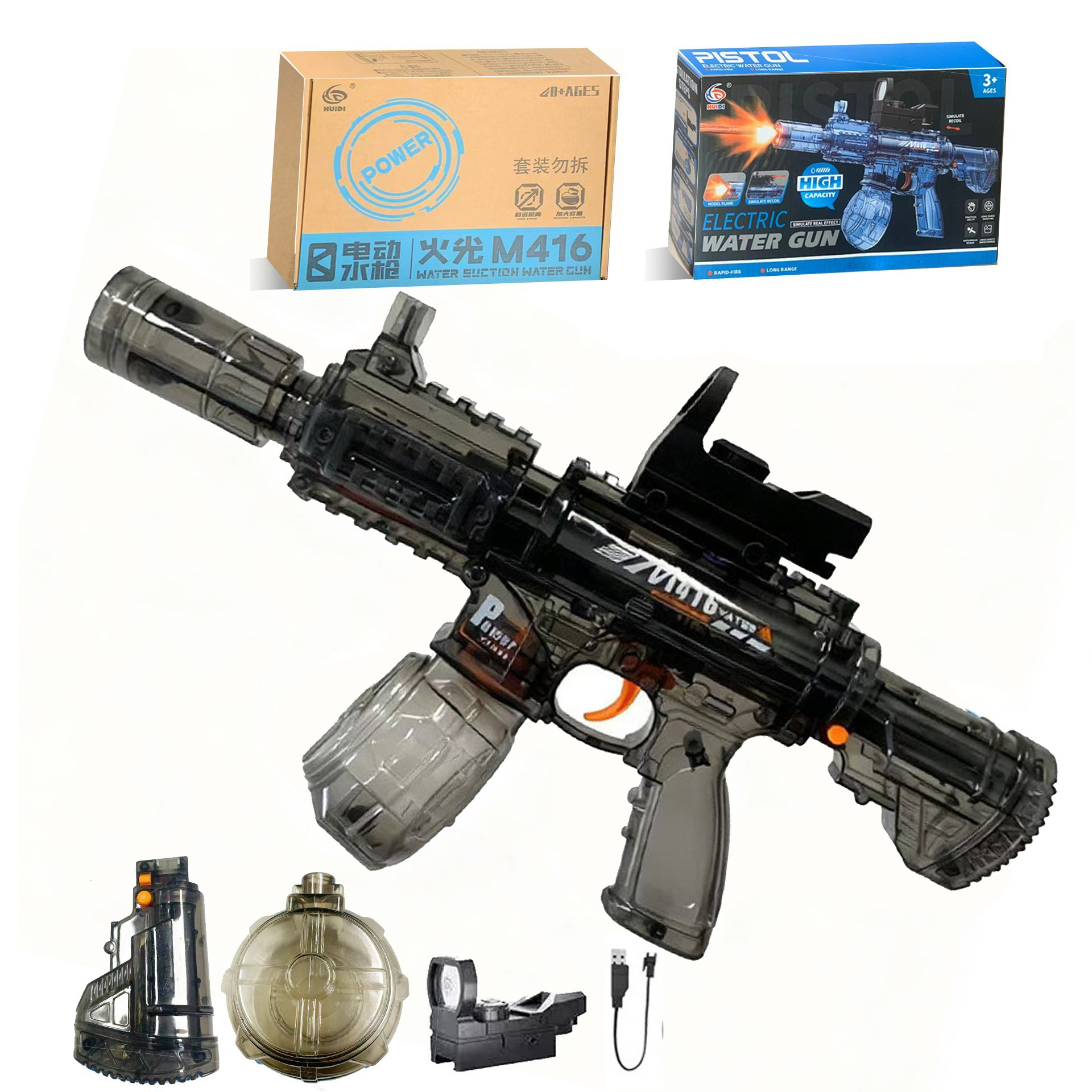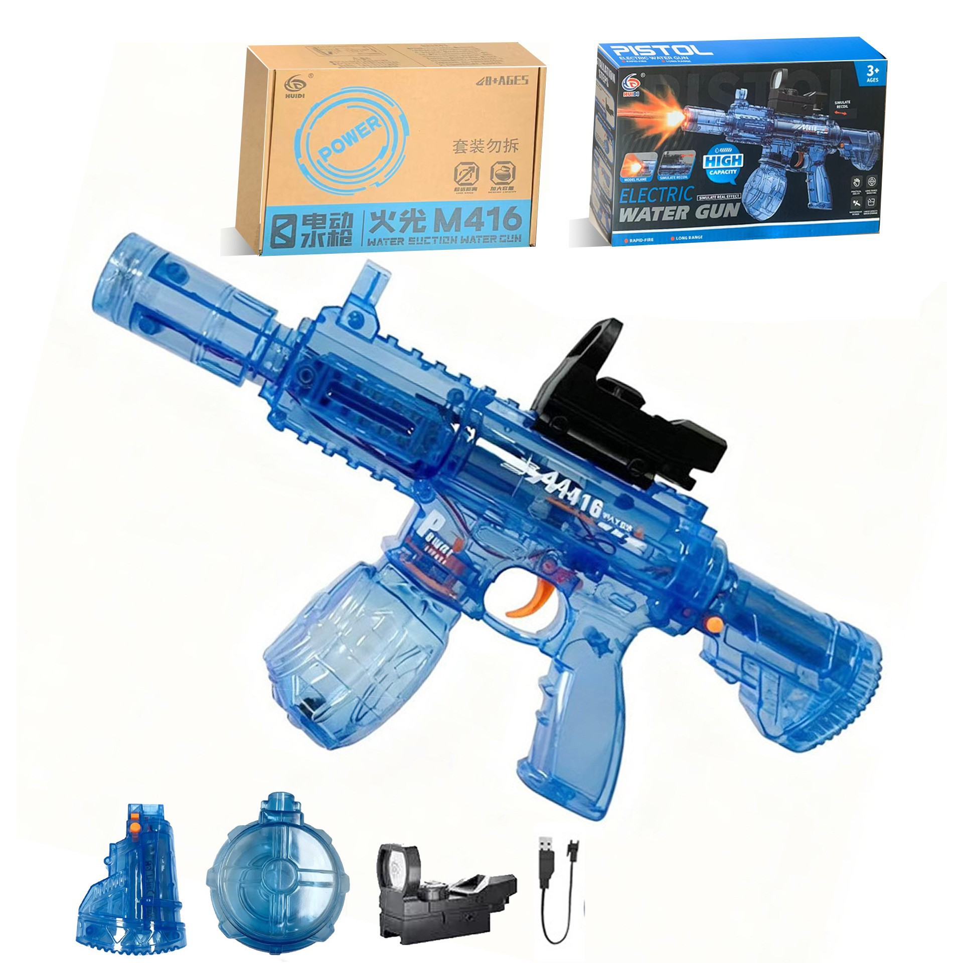 국경을 넘는 전동 물총, 자동 물 흡입 연속 발사 물총, 펄스 물총, 물놀이 축제 어린이 장난감 물총 도매