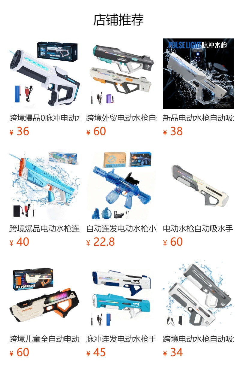 국경을 넘는 전동 물총, 자동 물 흡입 연속 발사 물총, 펄스 물총, 물놀이 축제 어린이 장난감 물총 도매스토어 가기