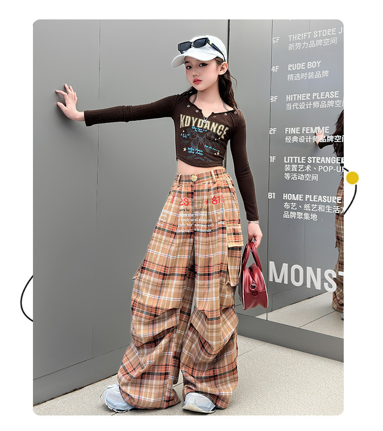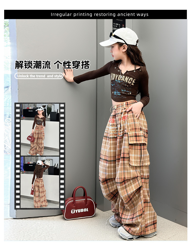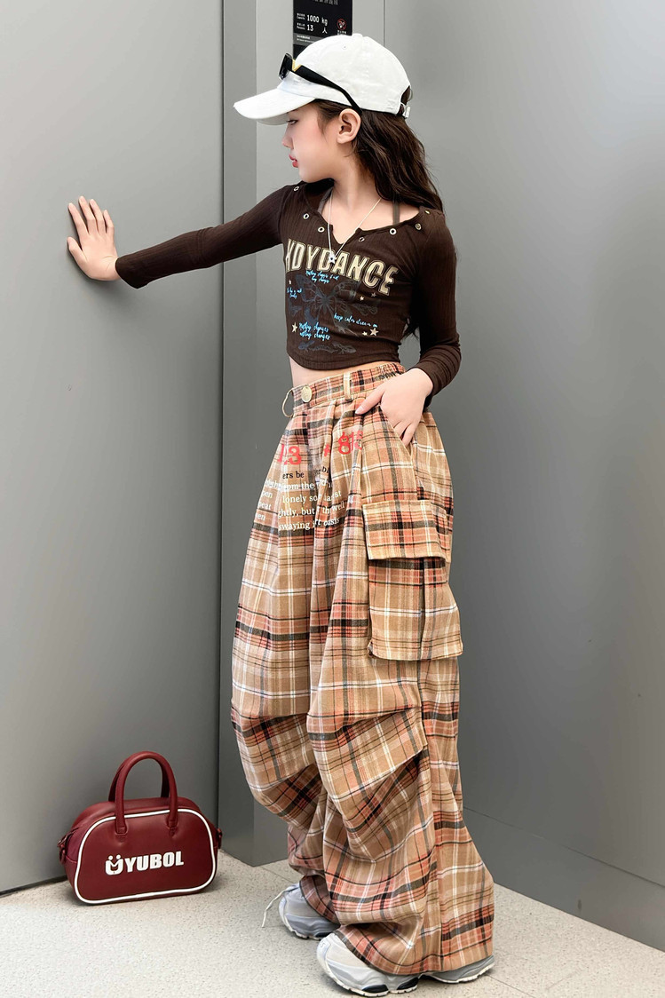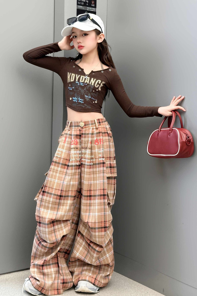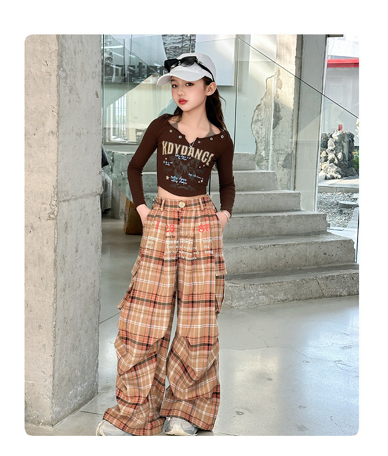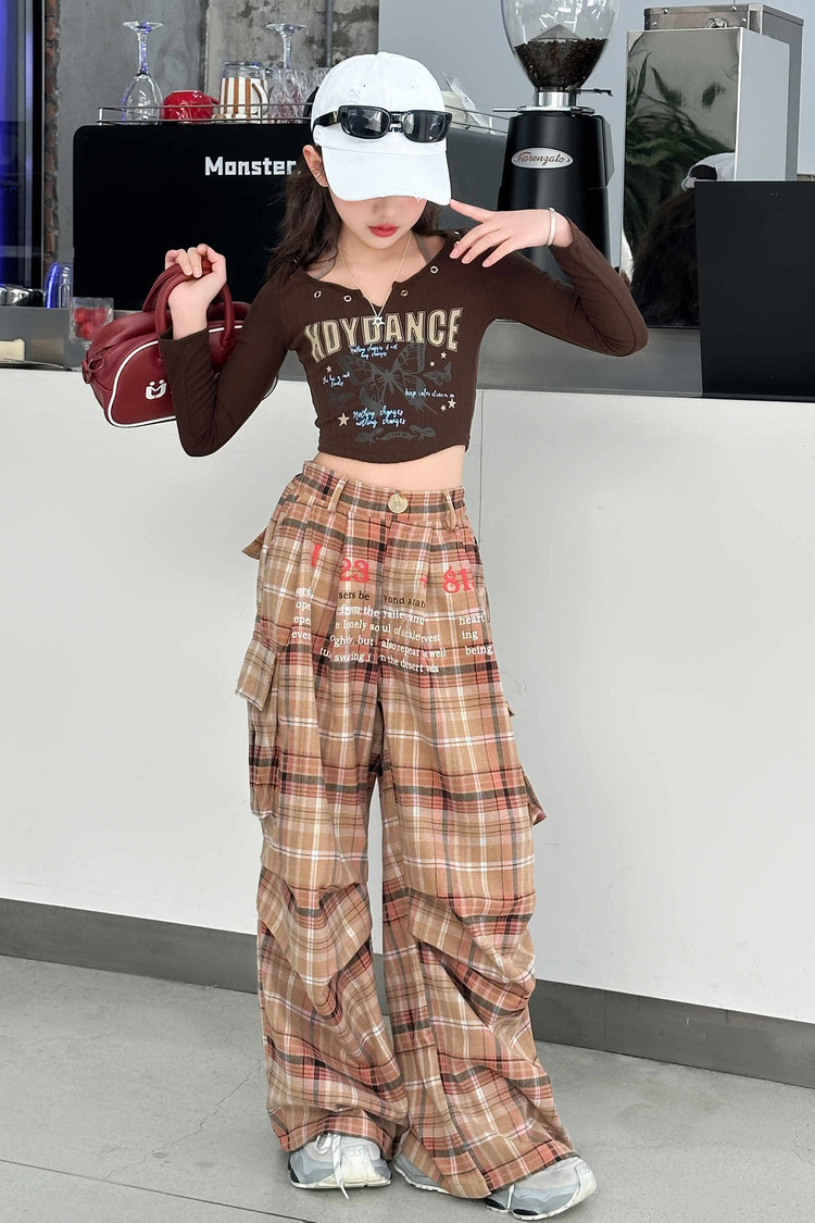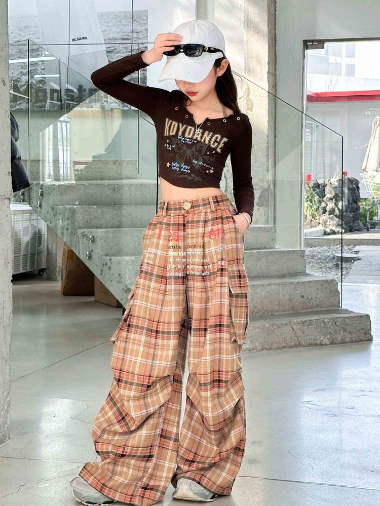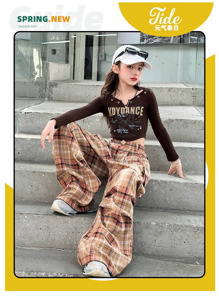 여아 트렌디 쿨 슈트, 여름옷, 중대형 아동 캐주얼 체크무늬 바지, 한국식 긴팔 하의 셔츠, 핫걸 투피스 세트