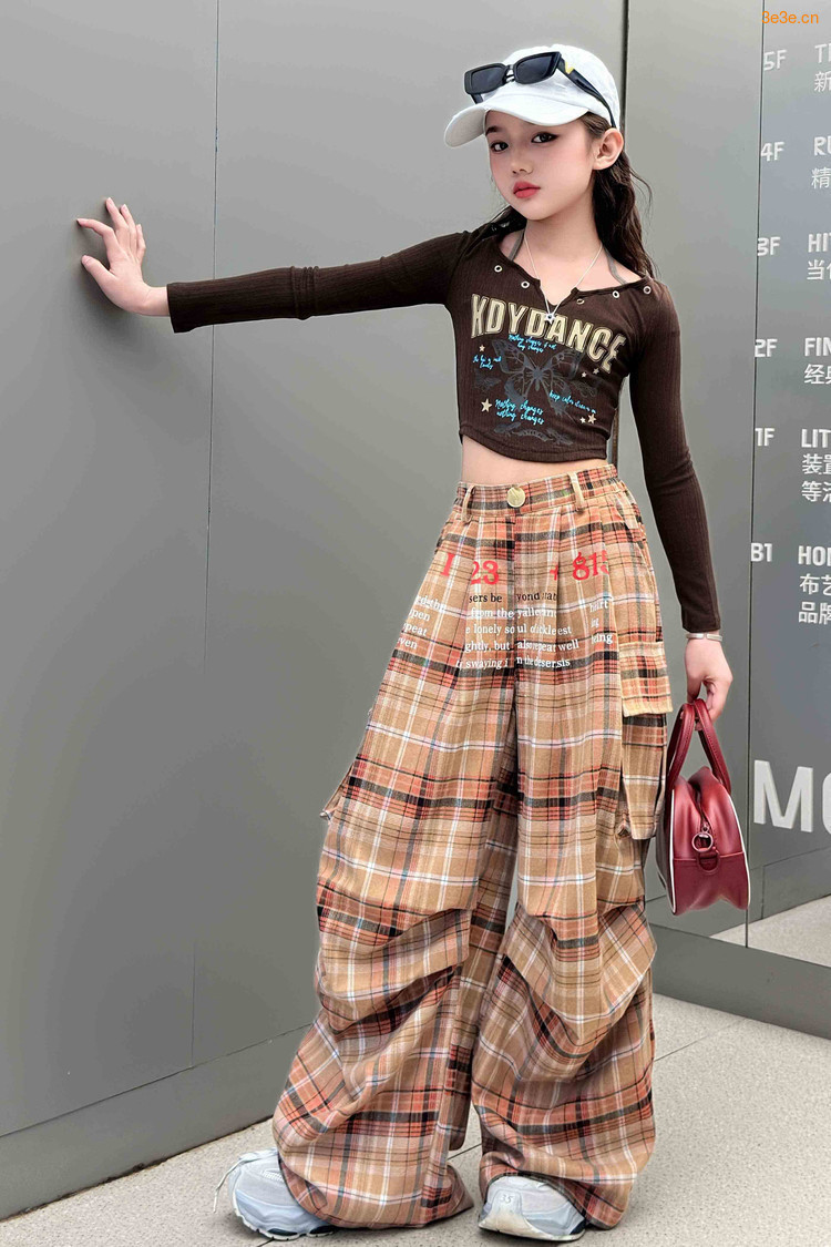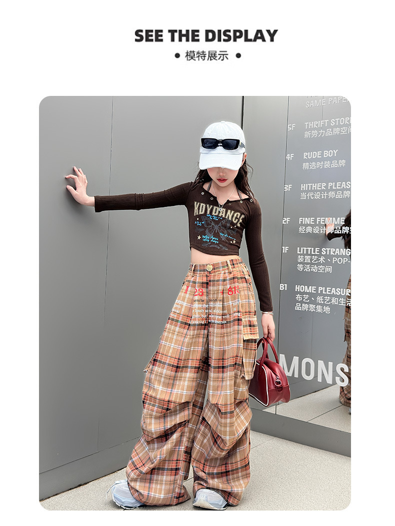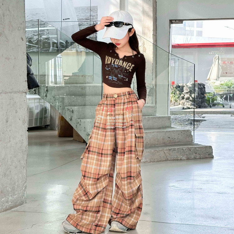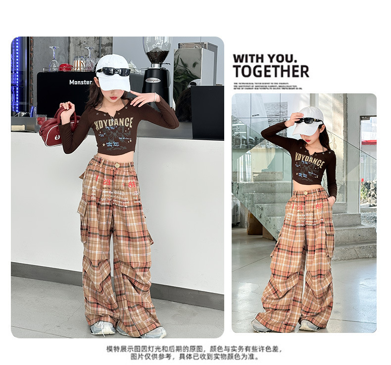 여아 트렌디 쿨 슈트, 여름옷, 중대형 아동 캐주얼 체크무늬 바지, 한국식 긴팔 하의 셔츠, 핫걸 투피스 세트스토어 가기
