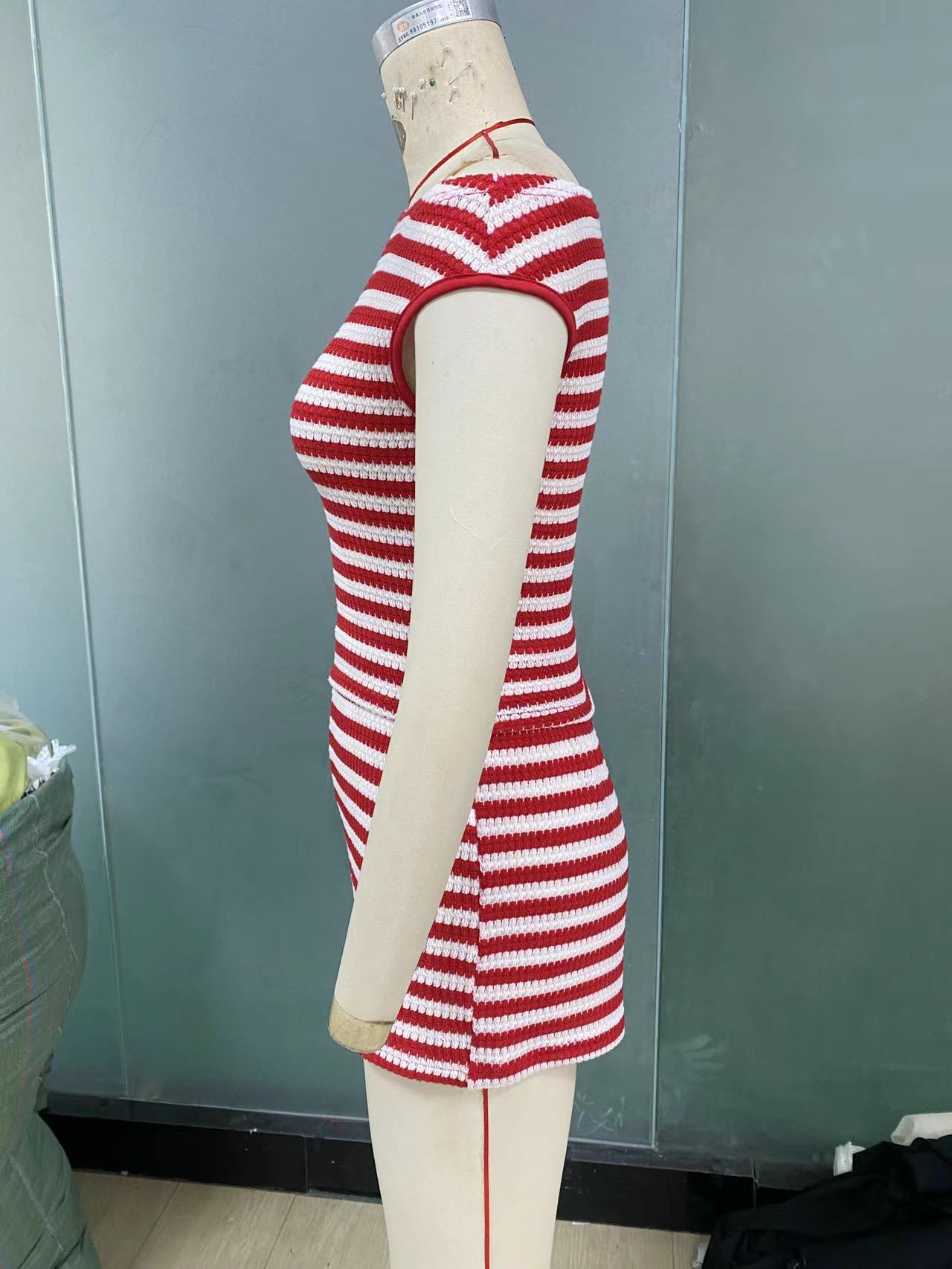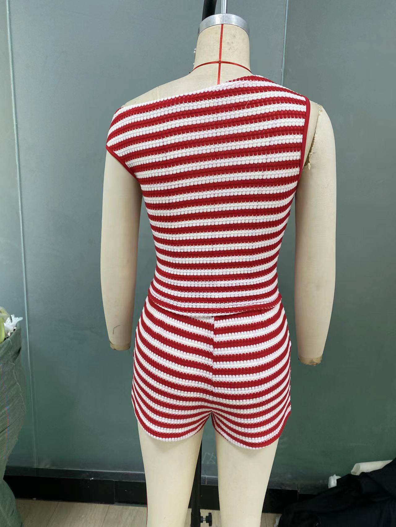 Ruiou 국경을 넘는 대외 무역 유럽과 미국의 줄무늬 조끼 반바지 세트 2025 여름 니트 핫팬츠 탑 투피스 세트스토어 가기