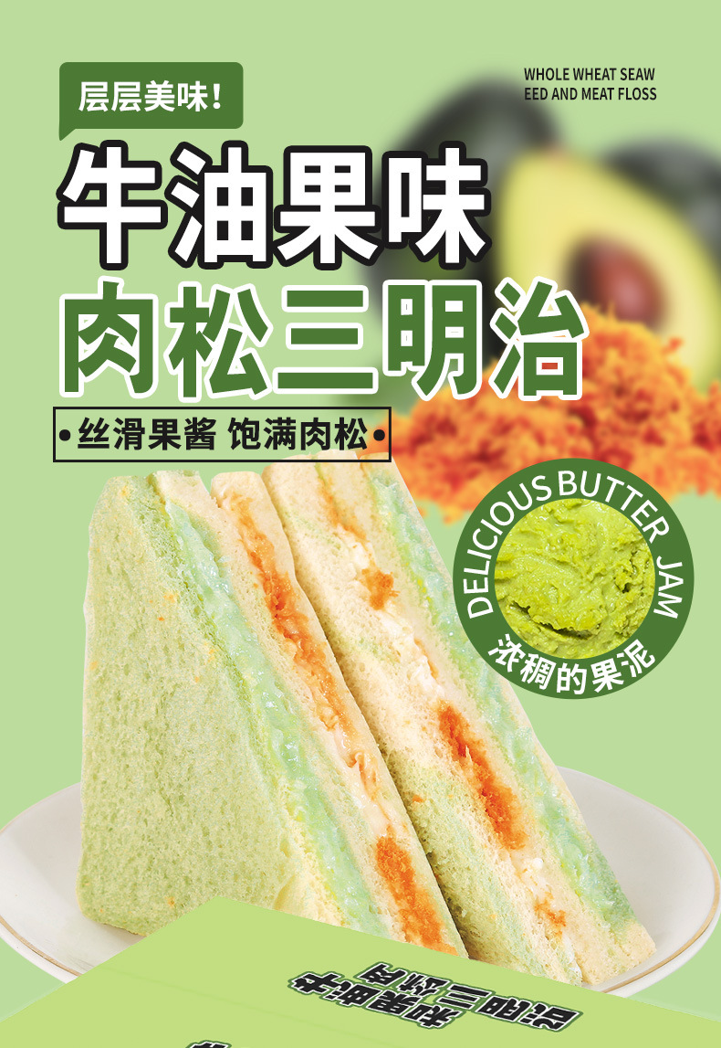 아오카도 돼지 고기 포사 샐러드 샌드위치 타로 진흙 가장자리 토스트 온라인 붉은 학생 아침 식사 빵 사무실 음식 도매스토어 가기