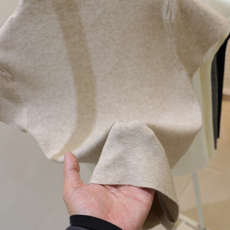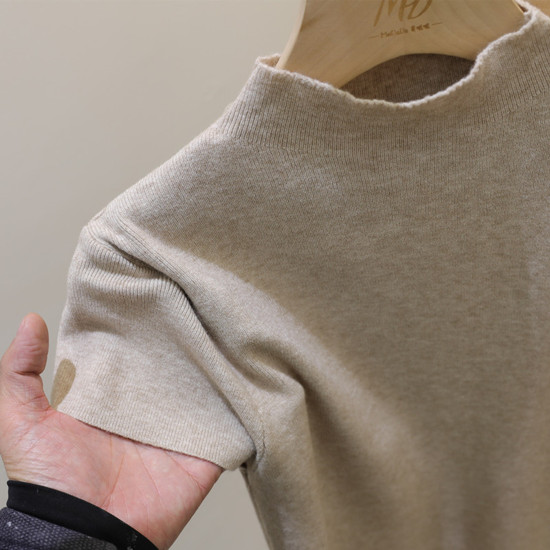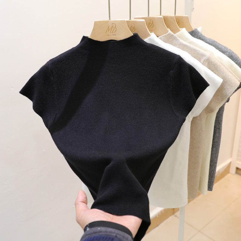 코어 스핀 원사 오리지널 하프 하이 넥 반팔 티셔츠 여성용 니트 베이스 셔츠 디자인 센스 화이트 슬림 핏 탑스토어 가기