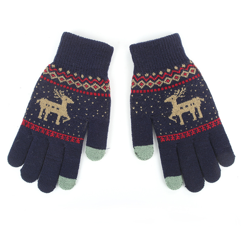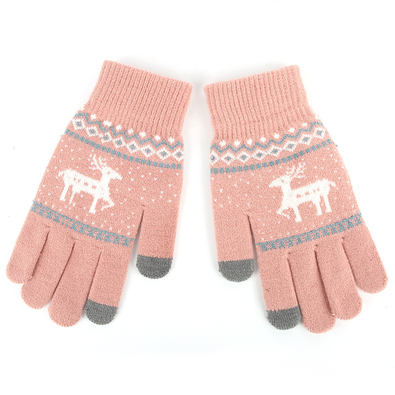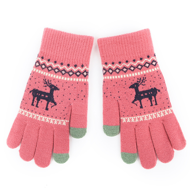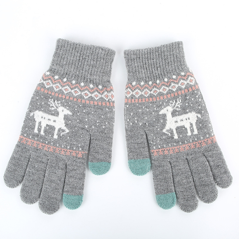 겨울용 플리스 레이어가 있는 사슴 모양 커플용 모조 캐시미어 재질의 자카드 터치스크린 장갑, 두꺼운 분리형 손가락 디자인으로 따뜻함 유지