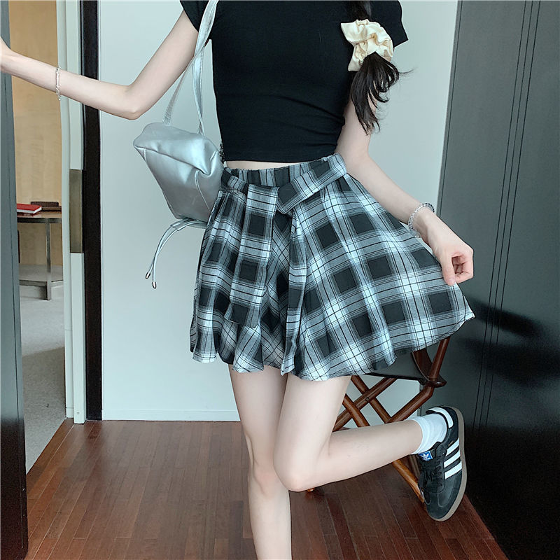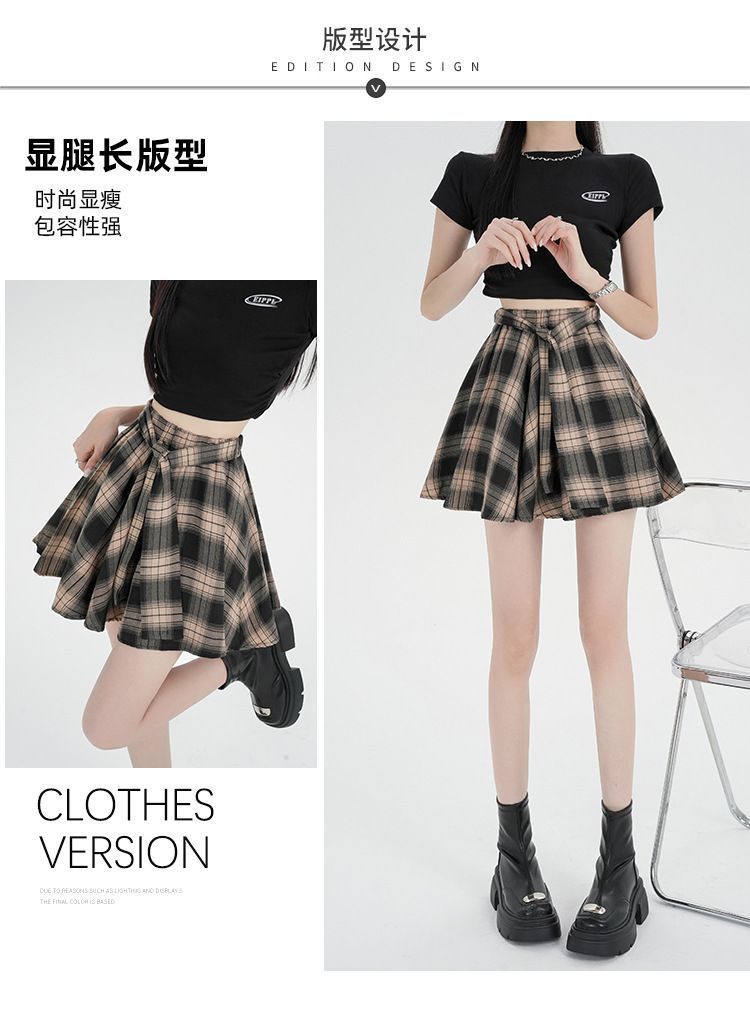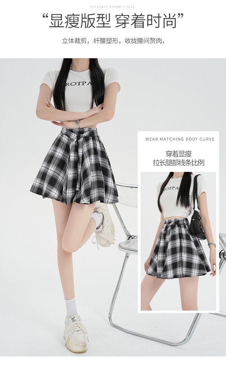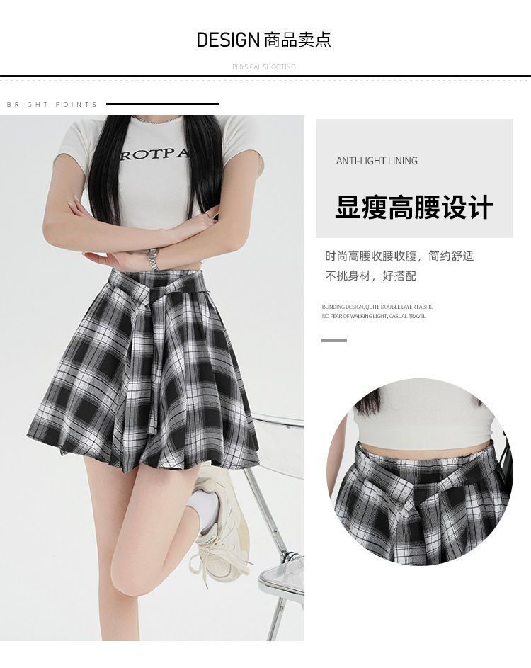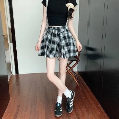 오리지널 원단, 오리지널 패턴, 체크무늬 셔츠 느낌, 활용도 높은 슬리밍 스커트, 여성 여름 불규칙 스커트, 스판덱스스토어 가기