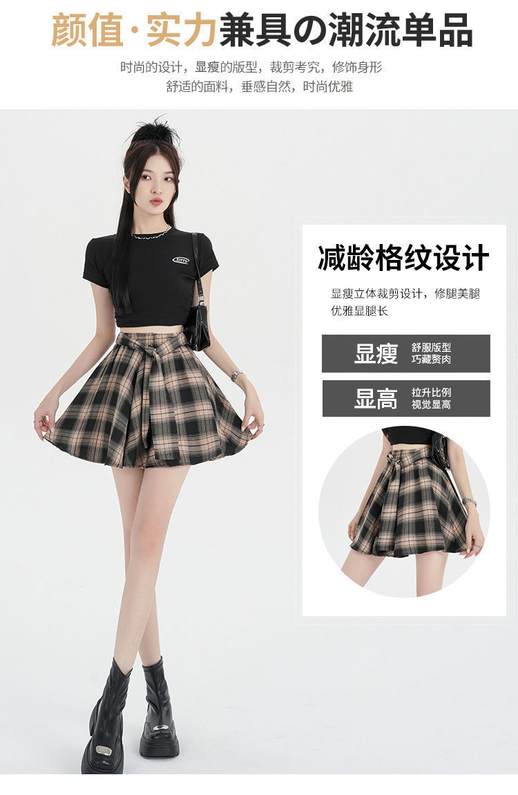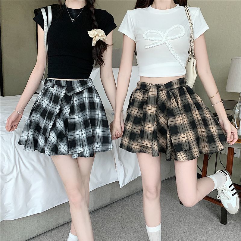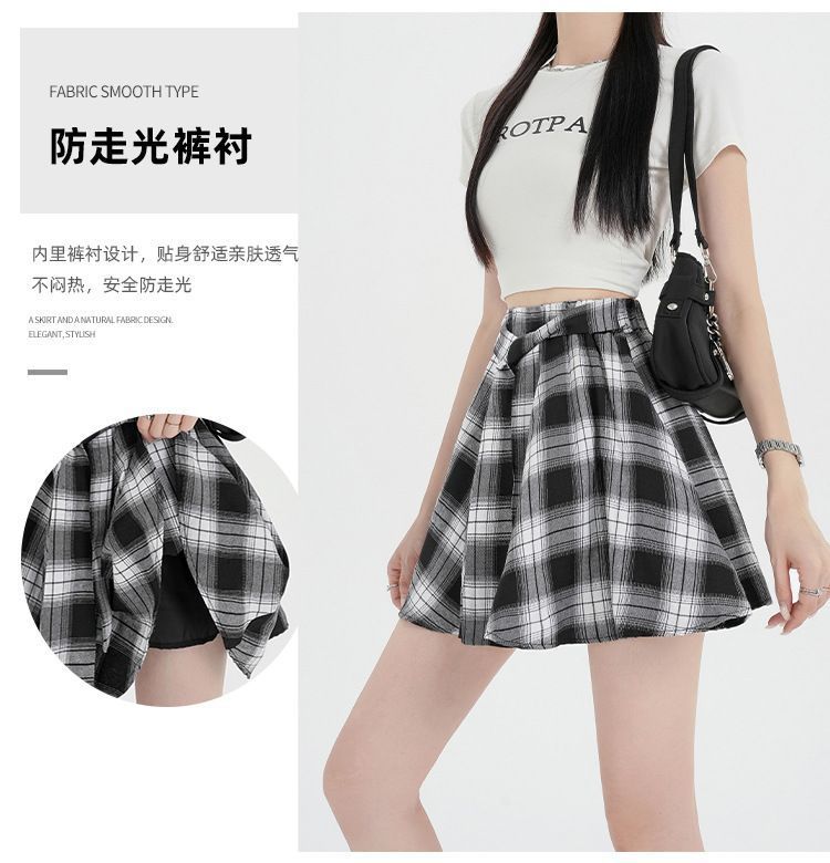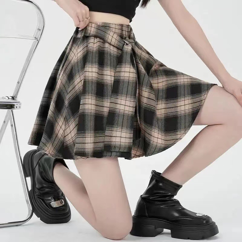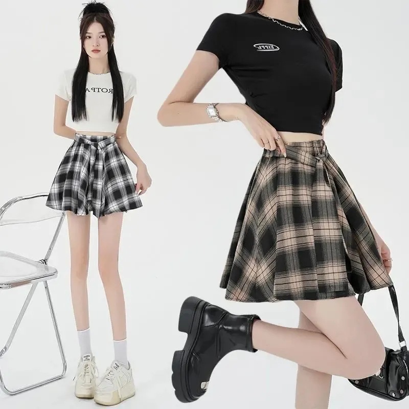 오리지널 원단, 오리지널 패턴, 체크무늬 셔츠 느낌, 활용도 높은 슬리밍 스커트, 여성 여름 불규칙 스커트, 스판덱스스토어 가기