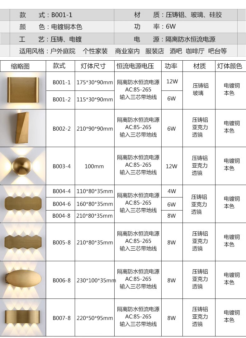 LED 벽세척 조명등 침실 침대 옆 벽등 발코니 마당 야외 호텔 거실 배경 북유럽 스타일 벽걸이형