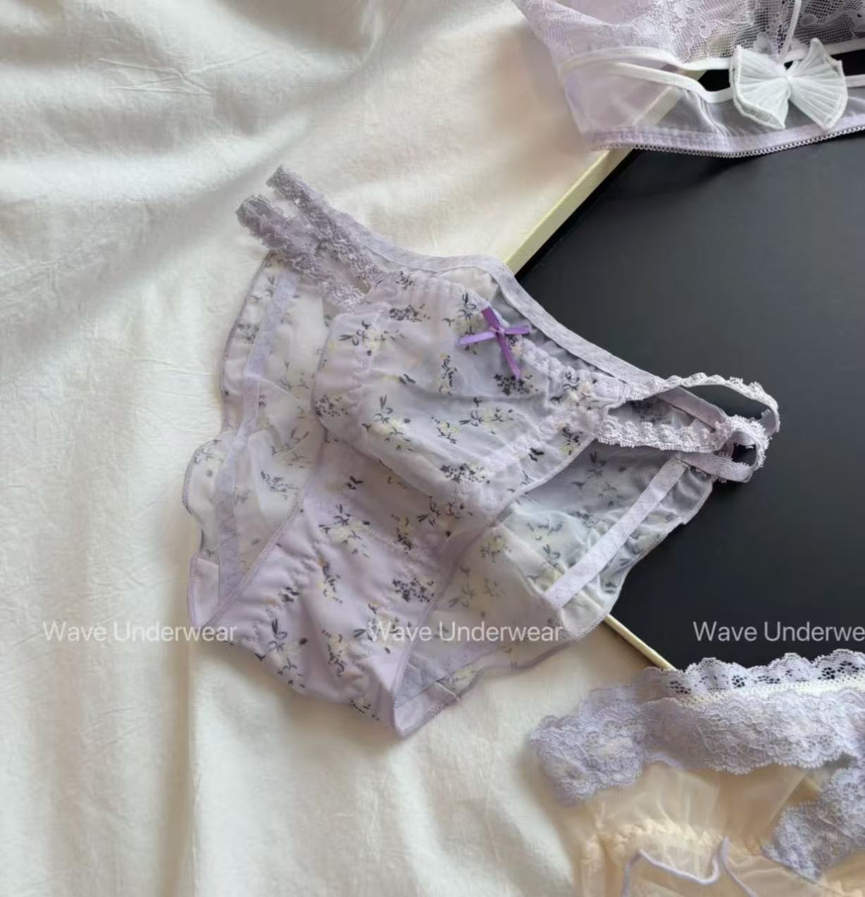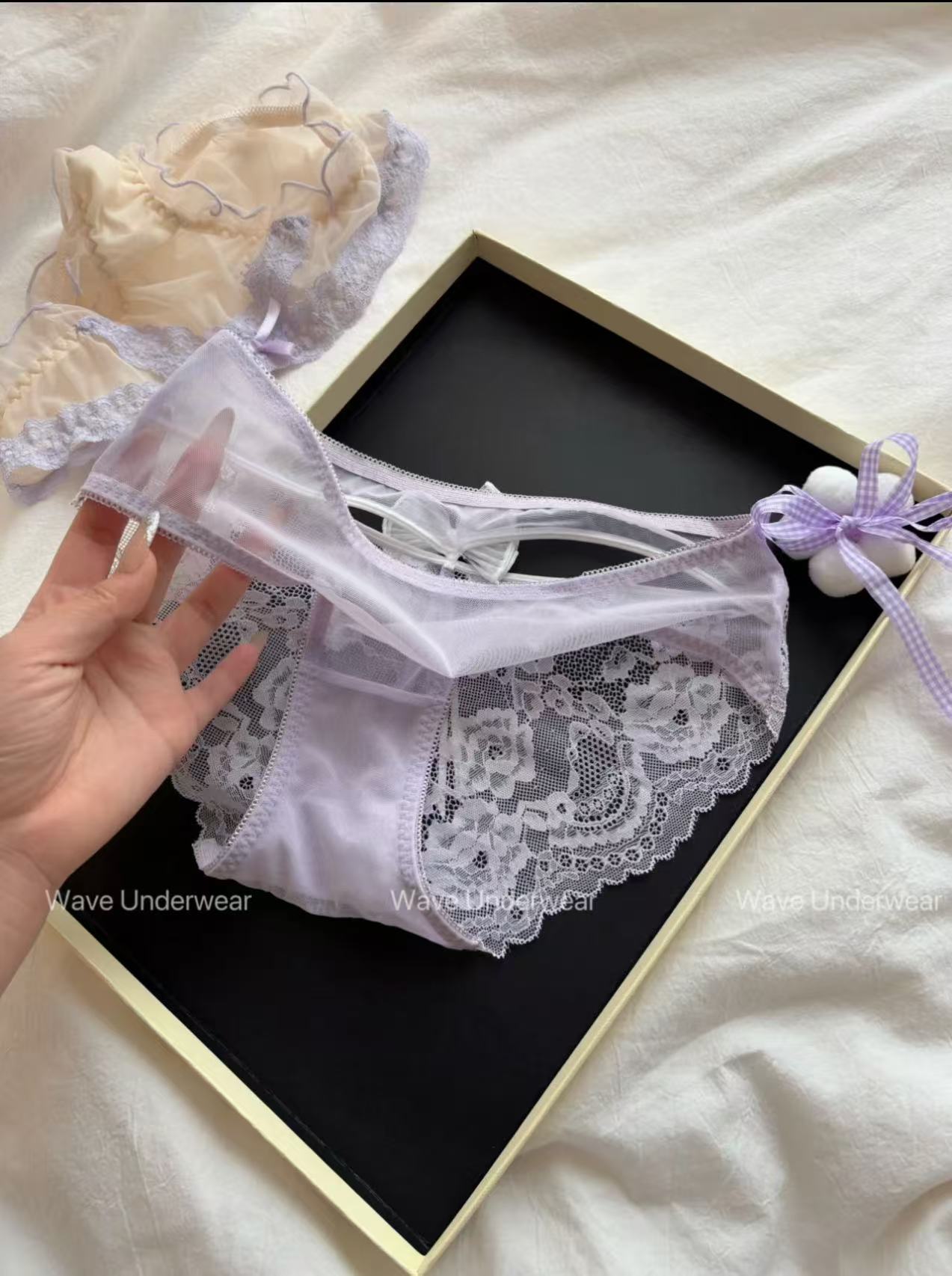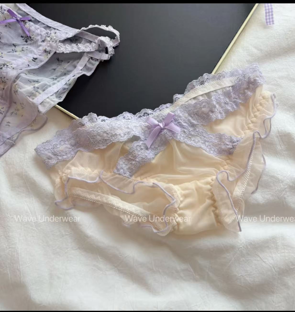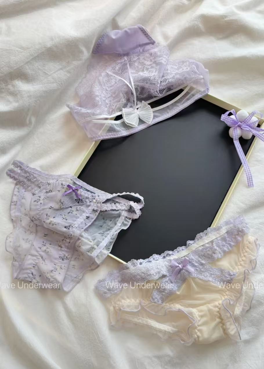 일본 스타일 신선한 보라색 레이스 속옷 여성의 달콤한 메쉬 순수한 욕망 투명한 낮은 허리 순수한 면화 소녀의 브리프스토어 가기
