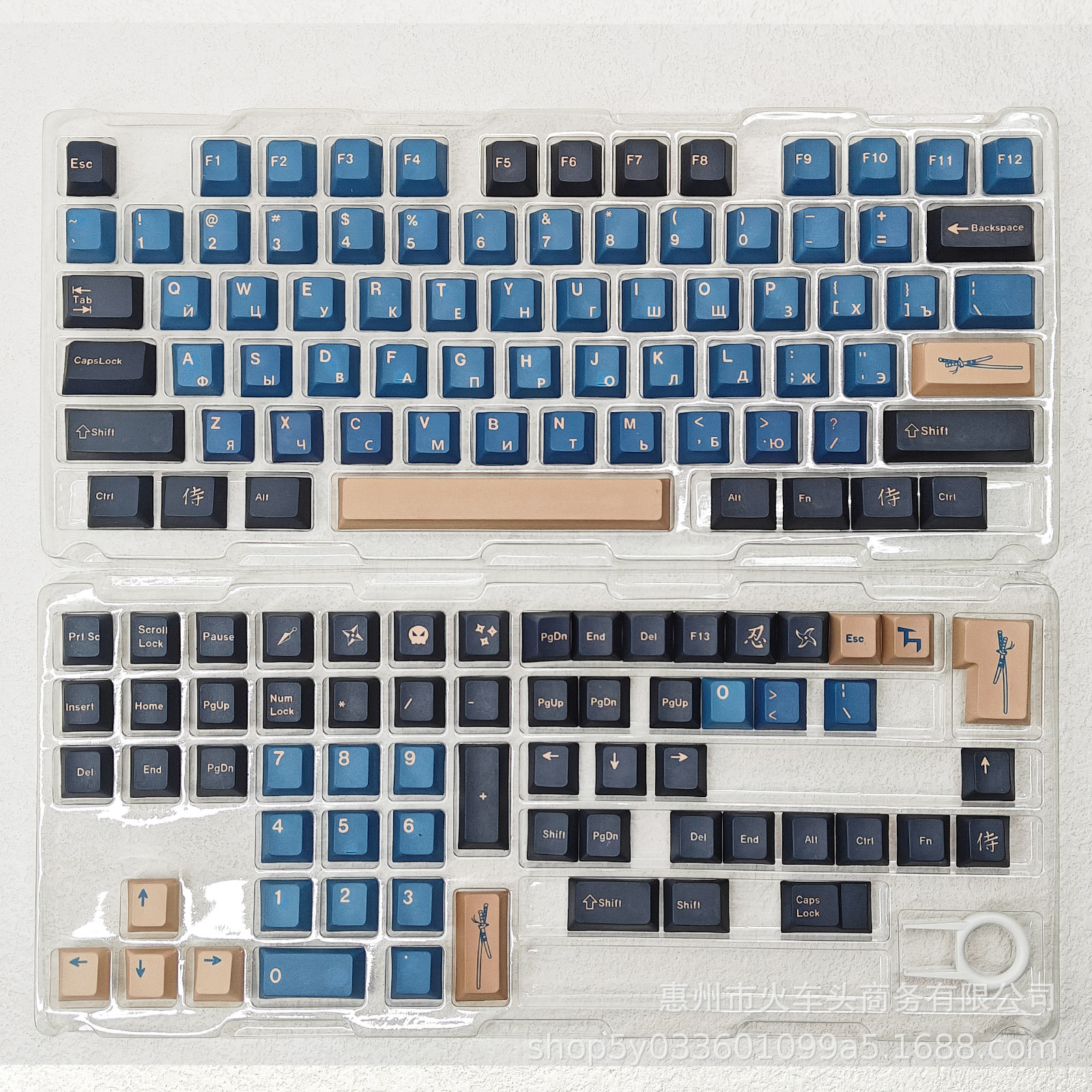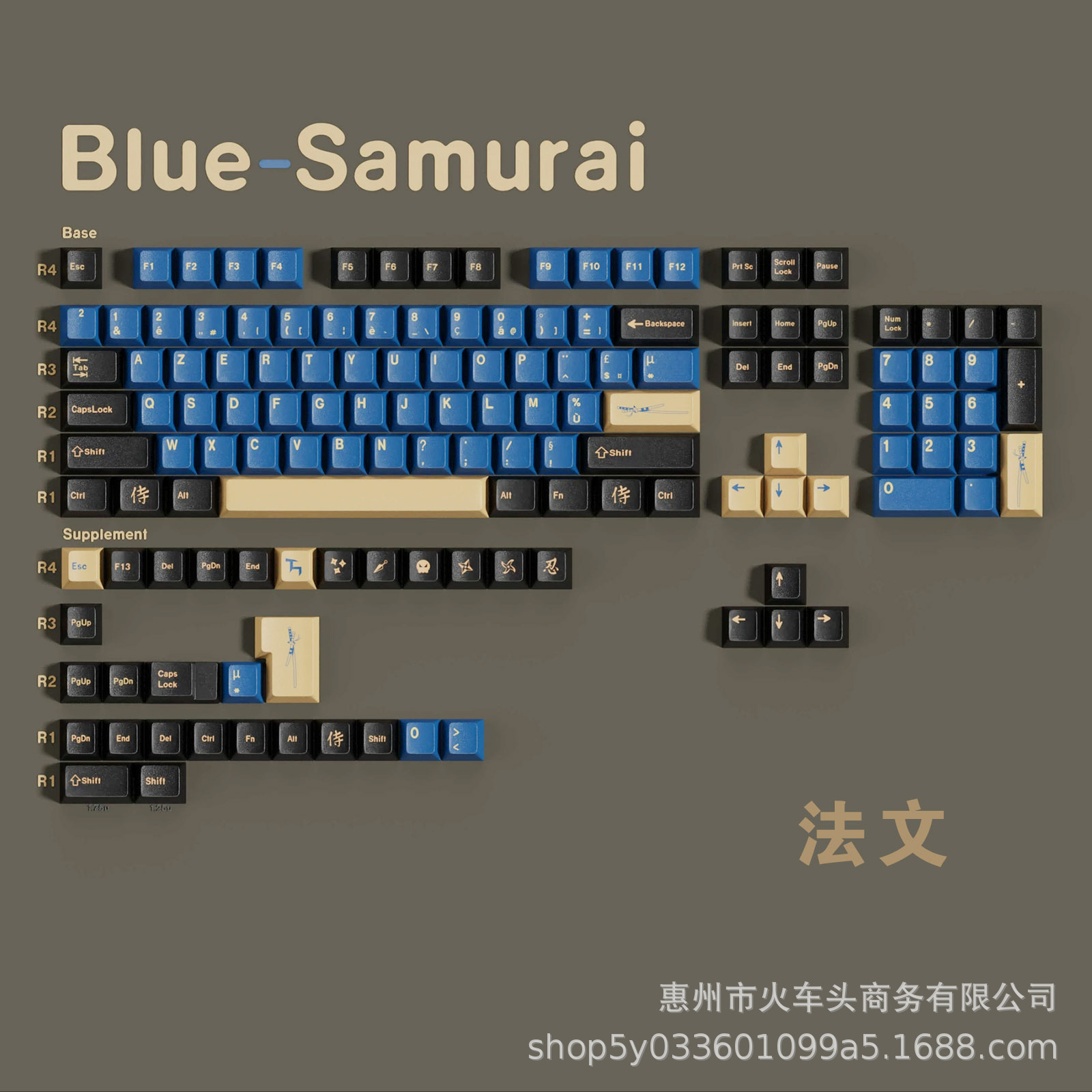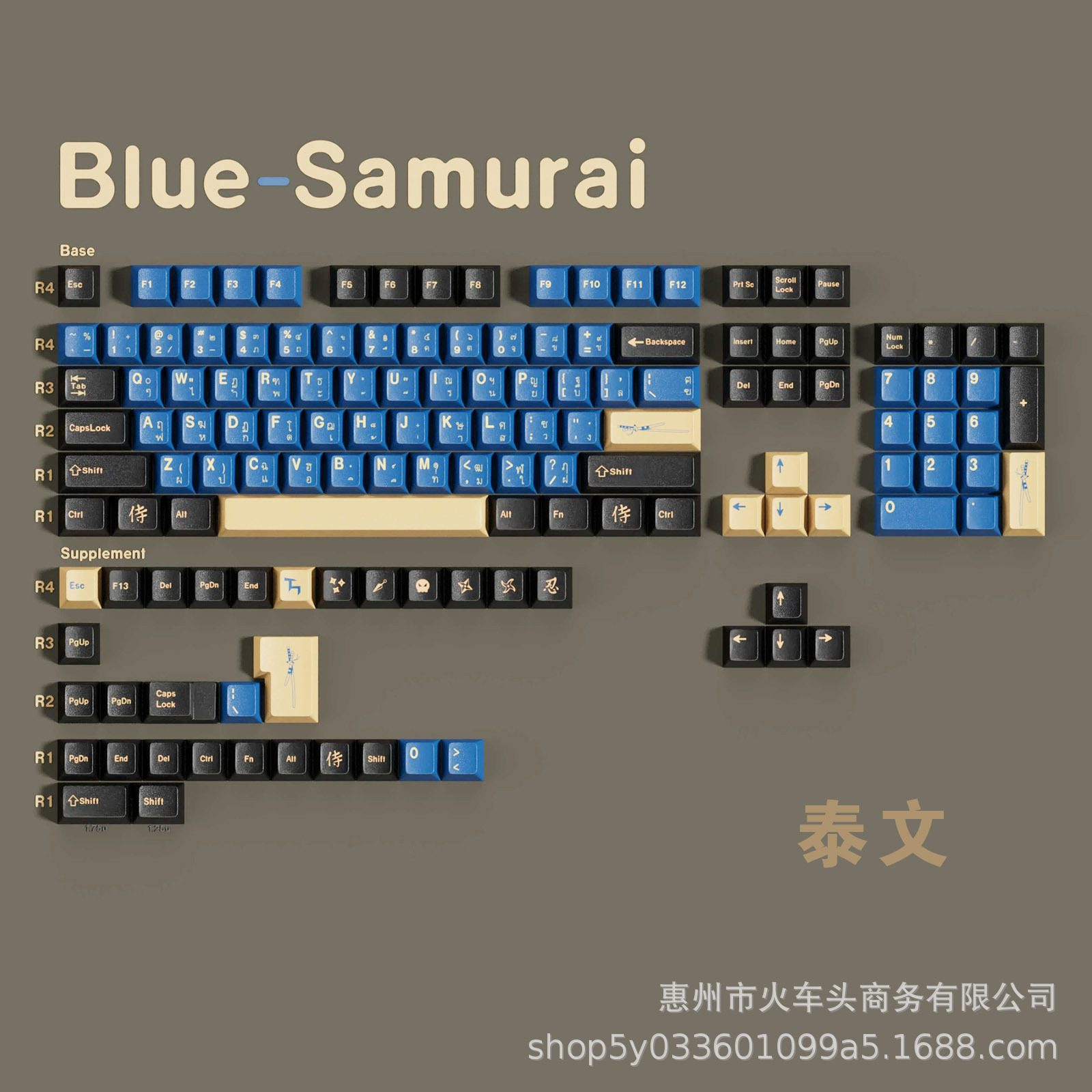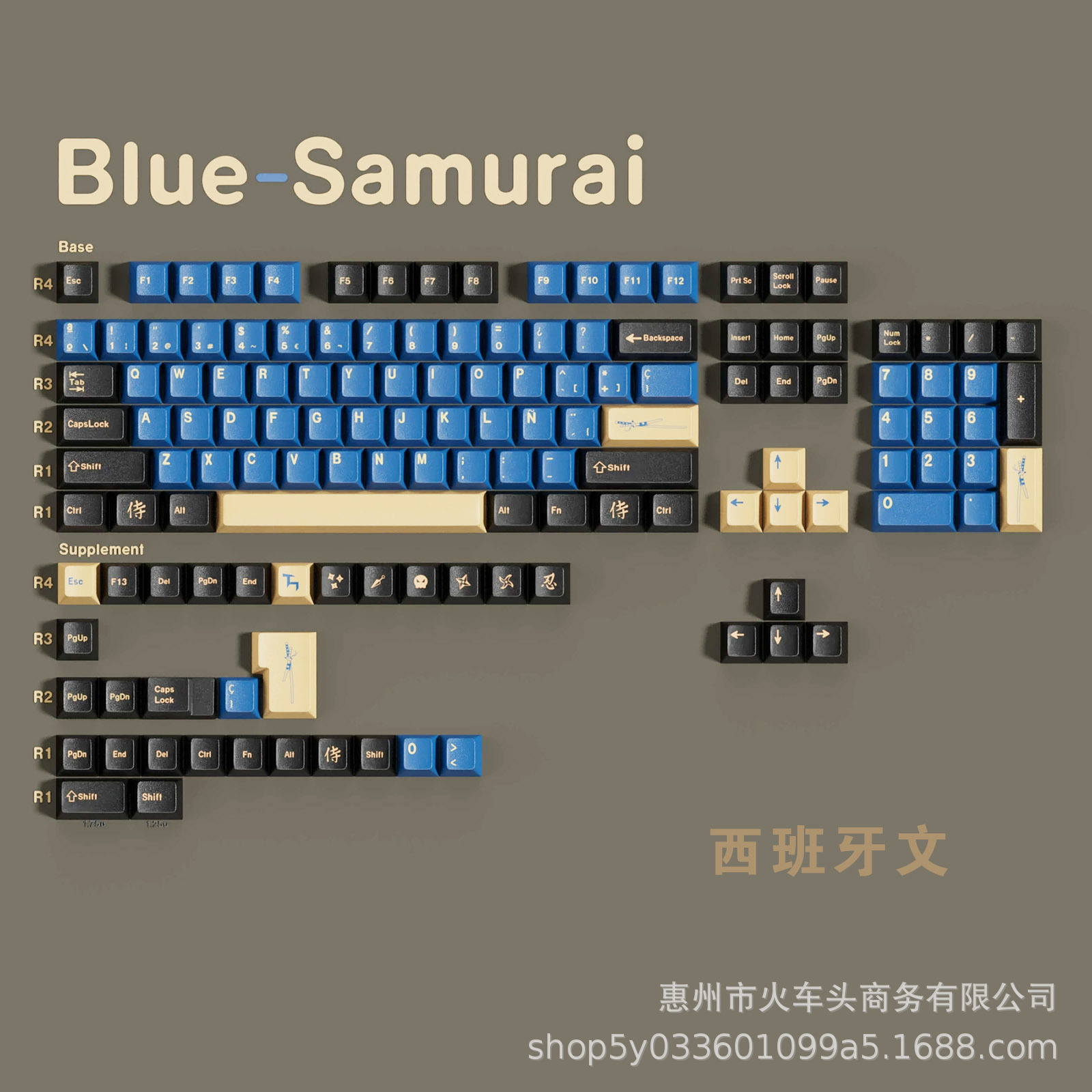 원래 블루 사무라이 키캡 PBT 열 승화 기계 키보드 캡 대만 Zhuyin 한국어 러시아어 독일어 작은 언어
