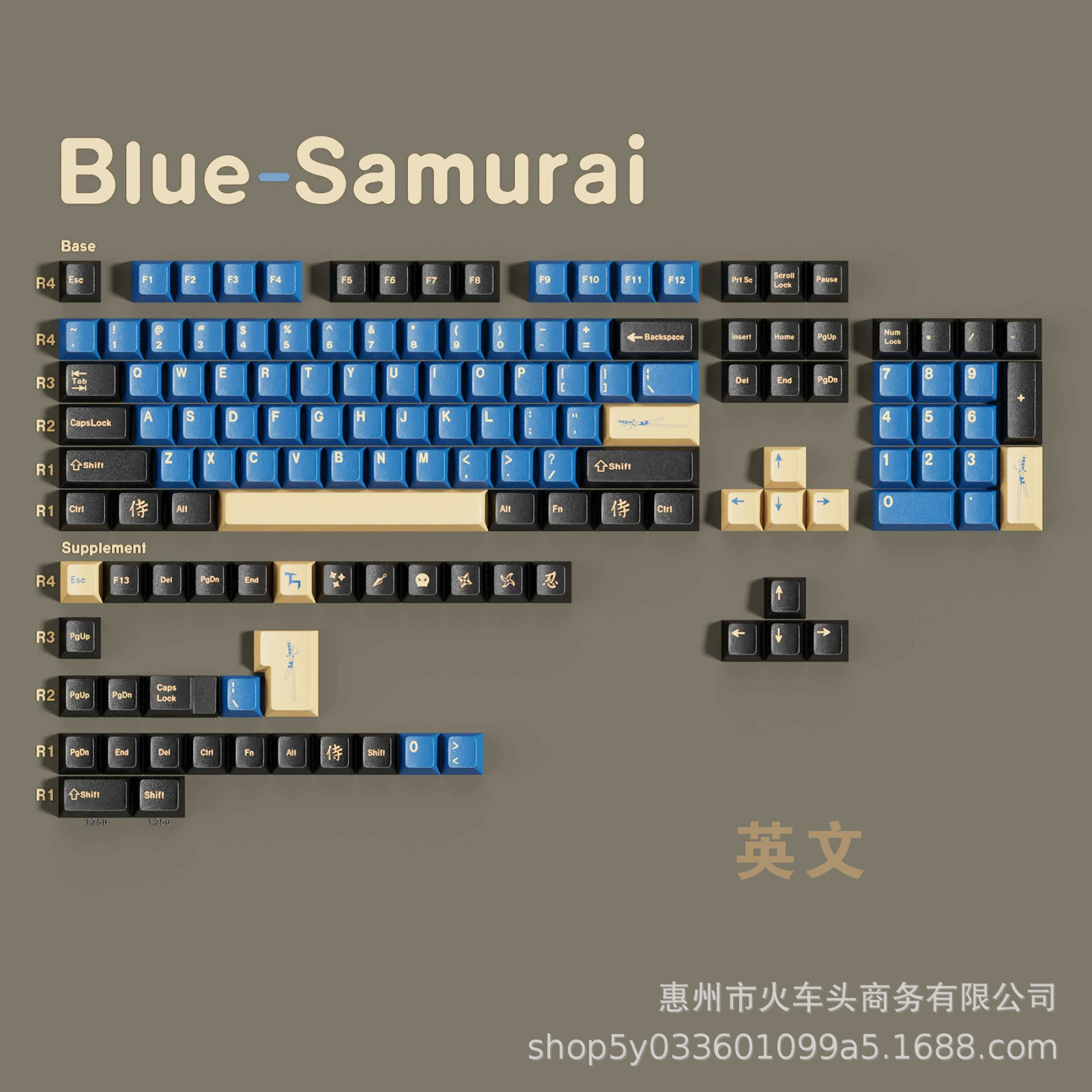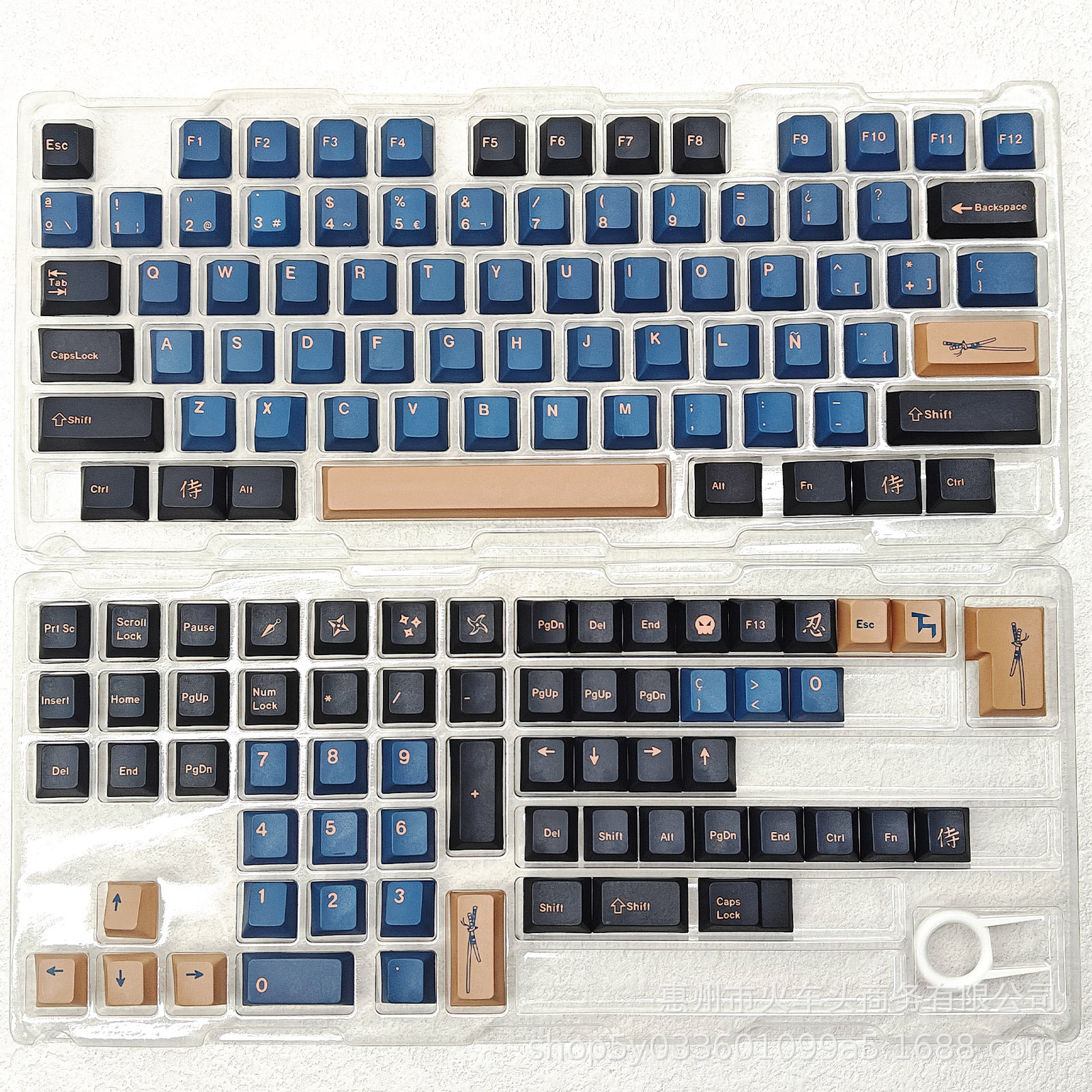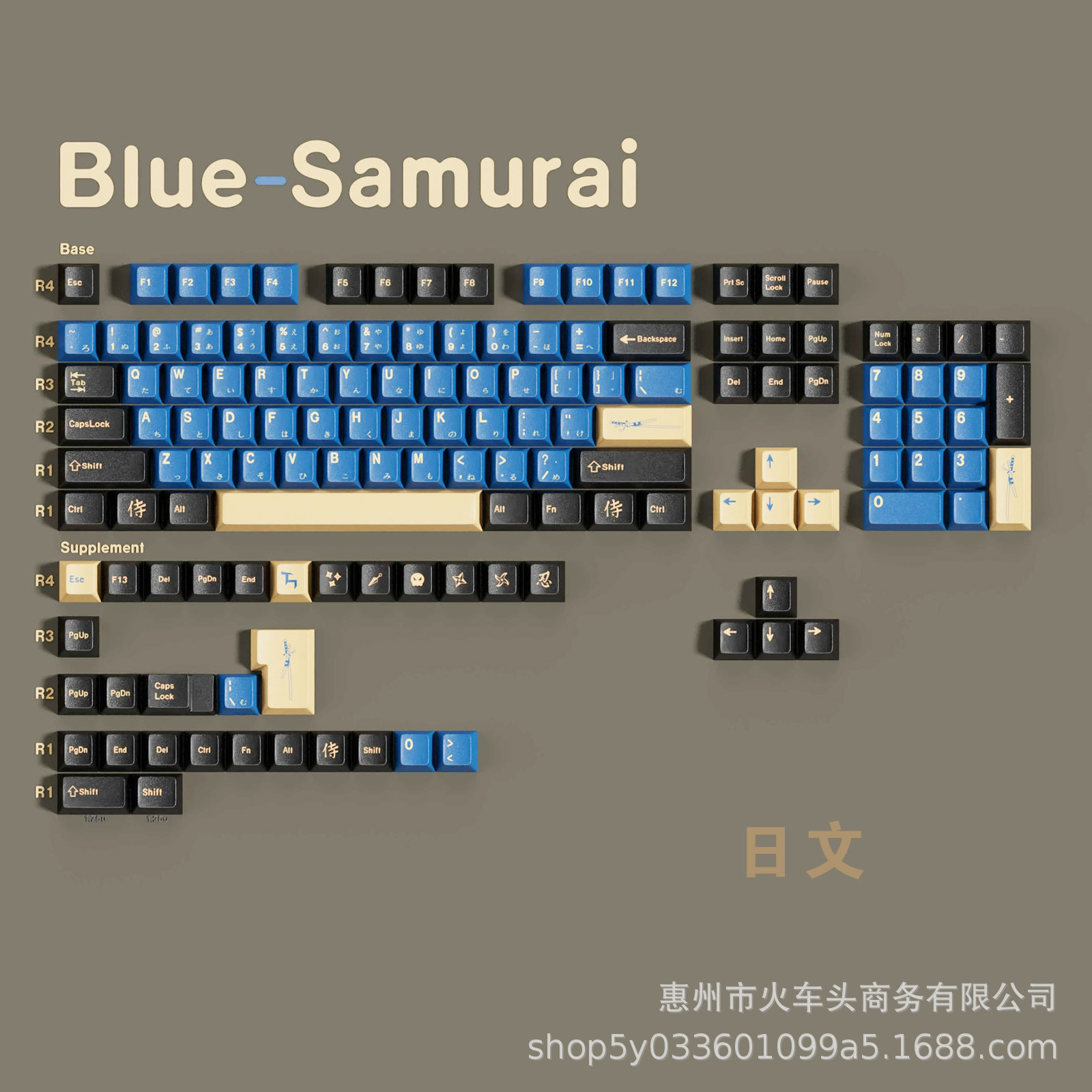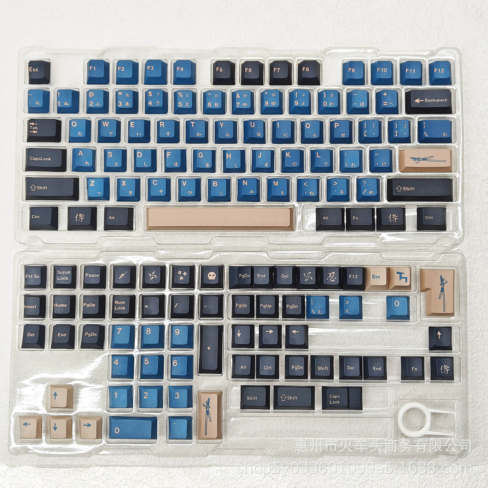 원래 블루 사무라이 키캡 PBT 열 승화 기계 키보드 캡 대만 Zhuyin 한국어 러시아어 독일어 작은 언어