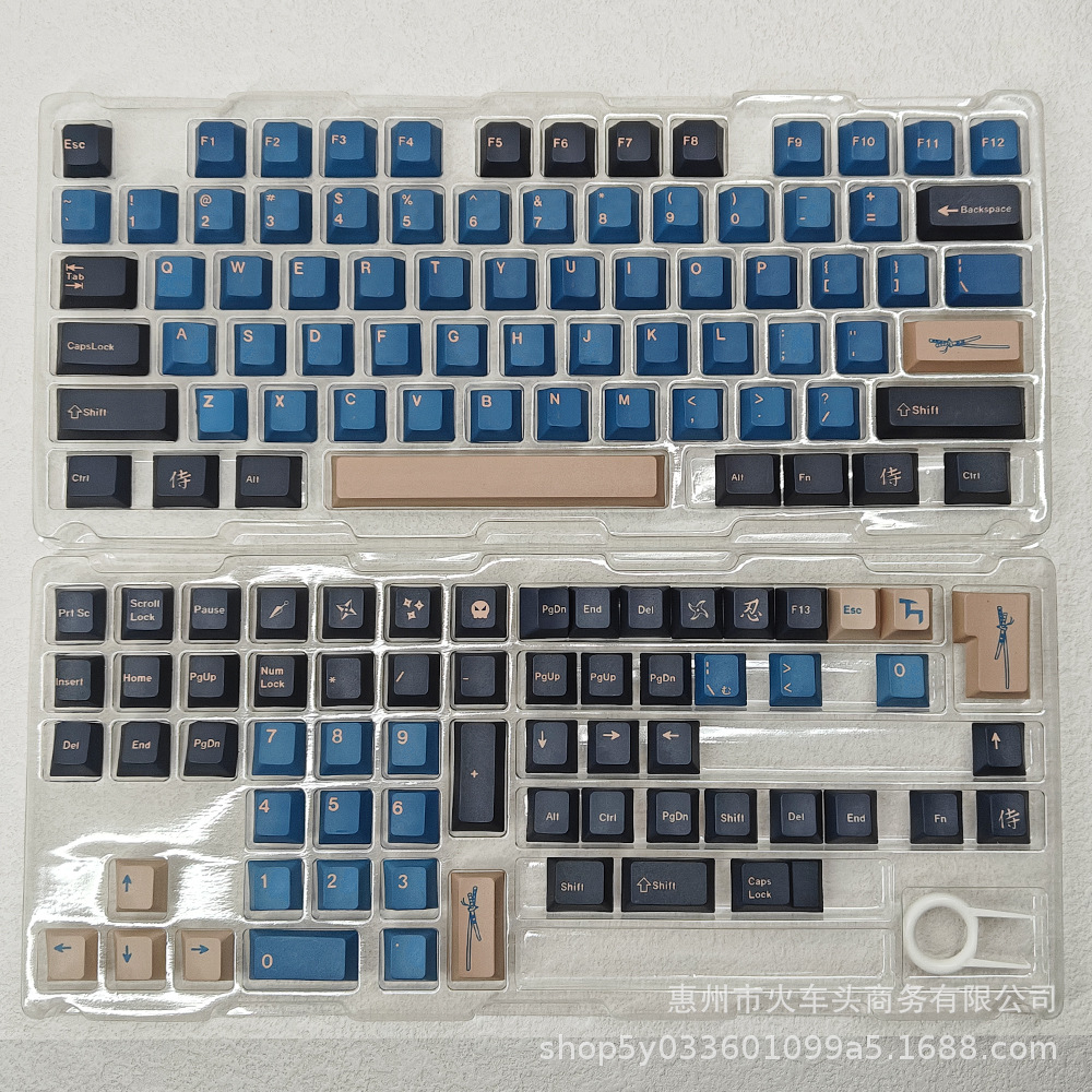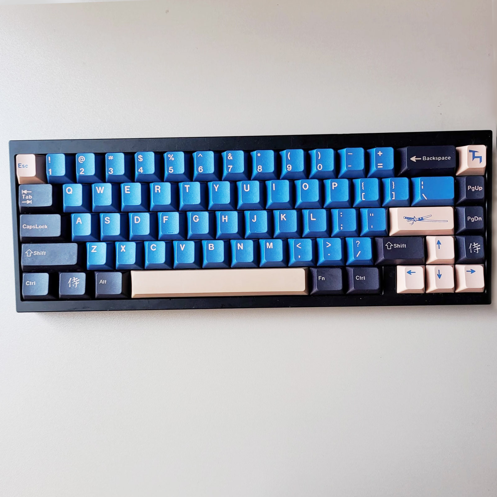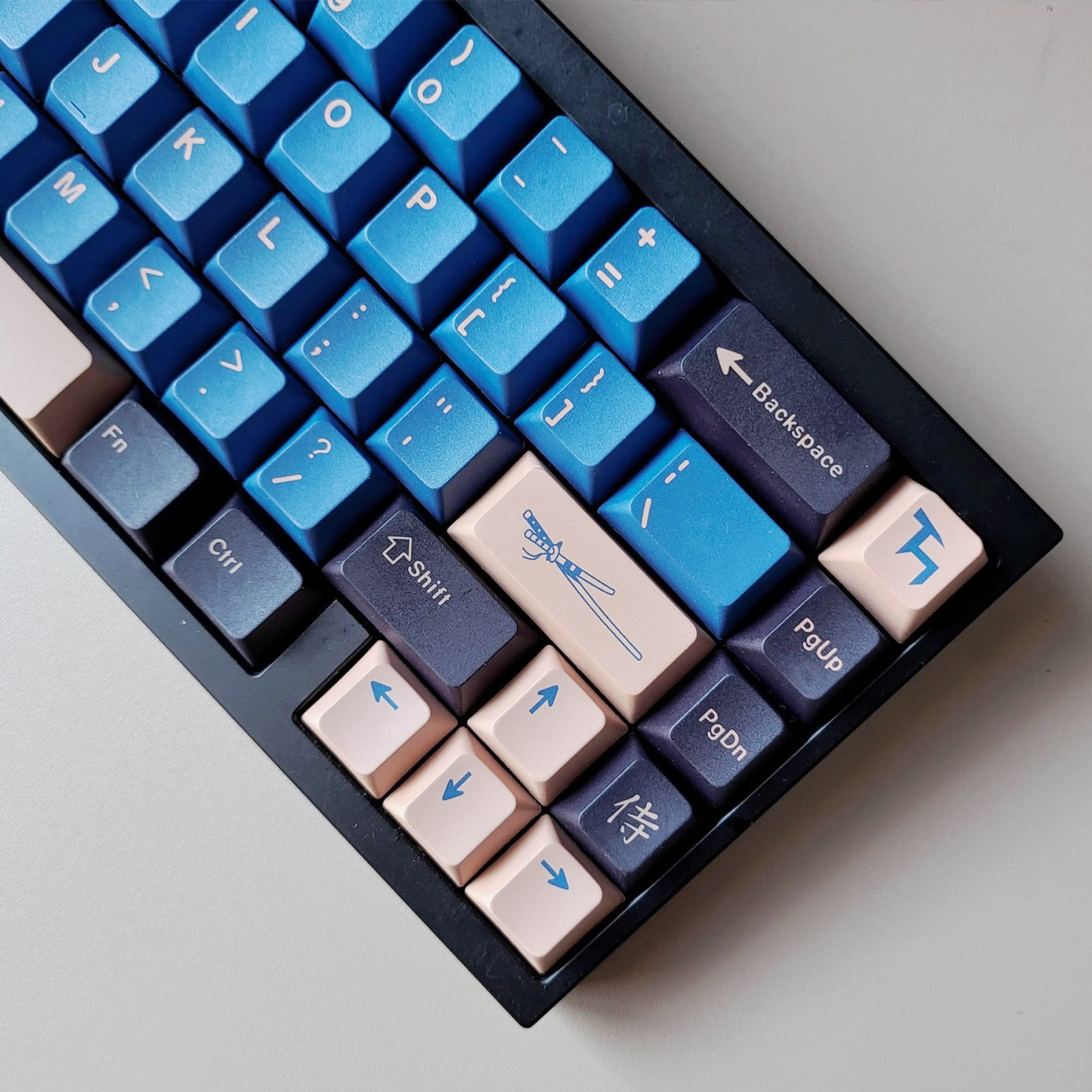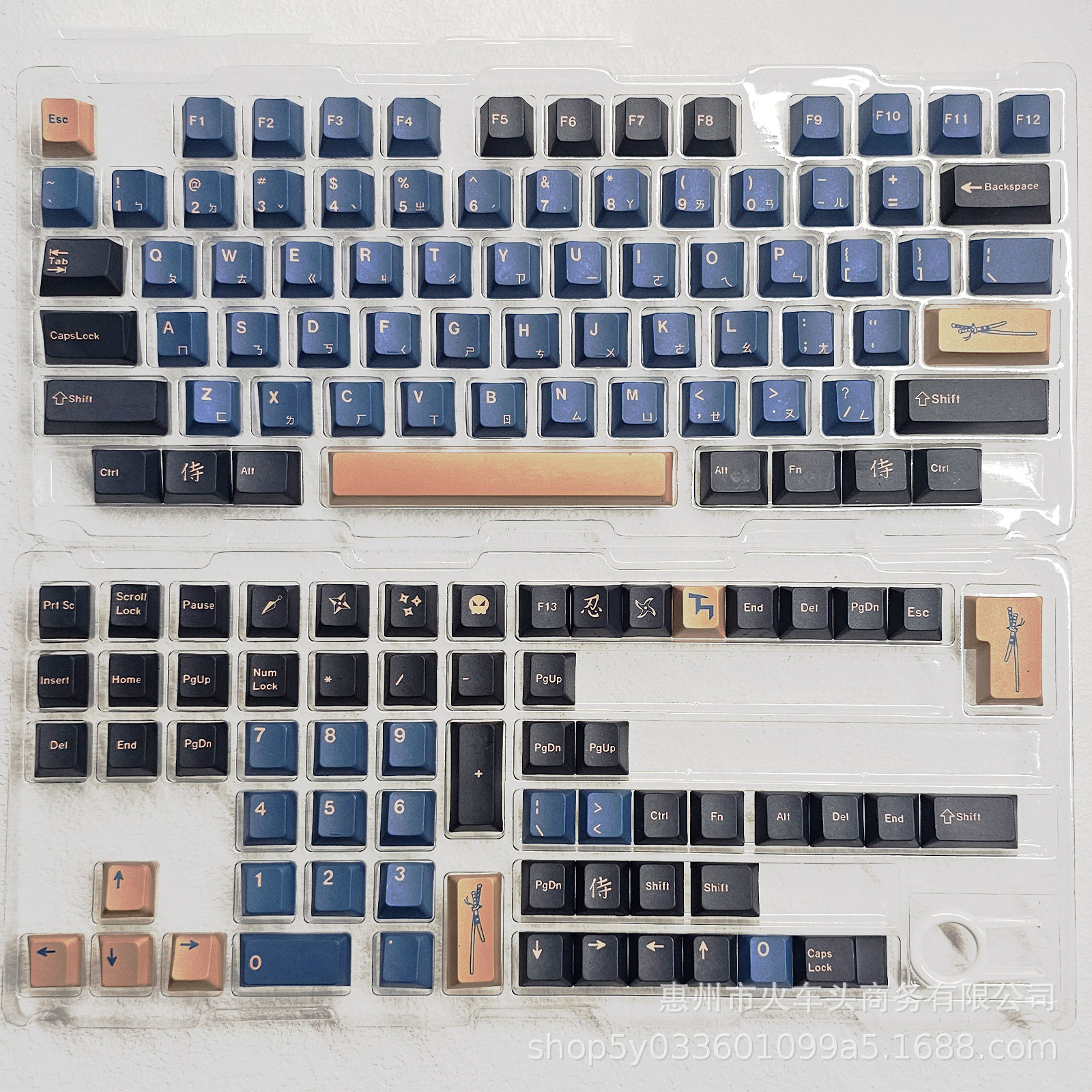 원래 블루 사무라이 키캡 PBT 열 승화 기계 키보드 캡 대만 Zhuyin 한국어 러시아어 독일어 작은 언어
