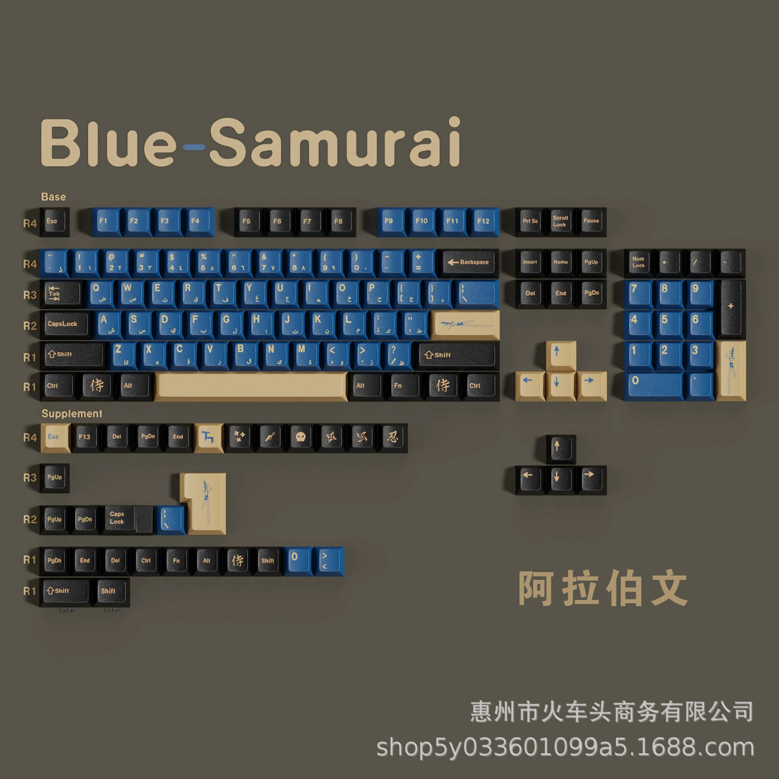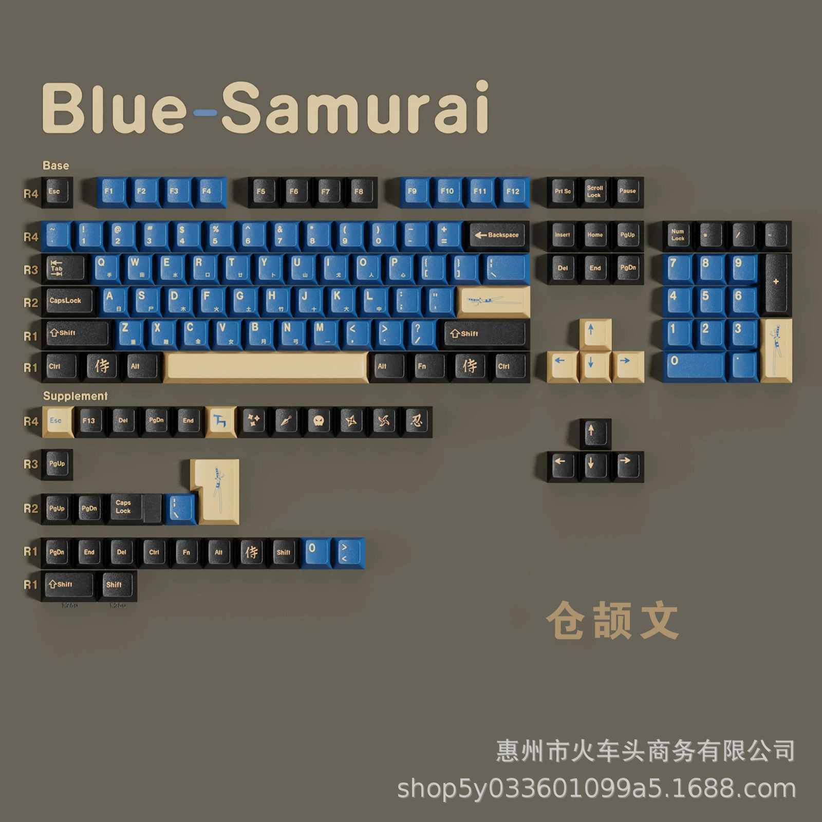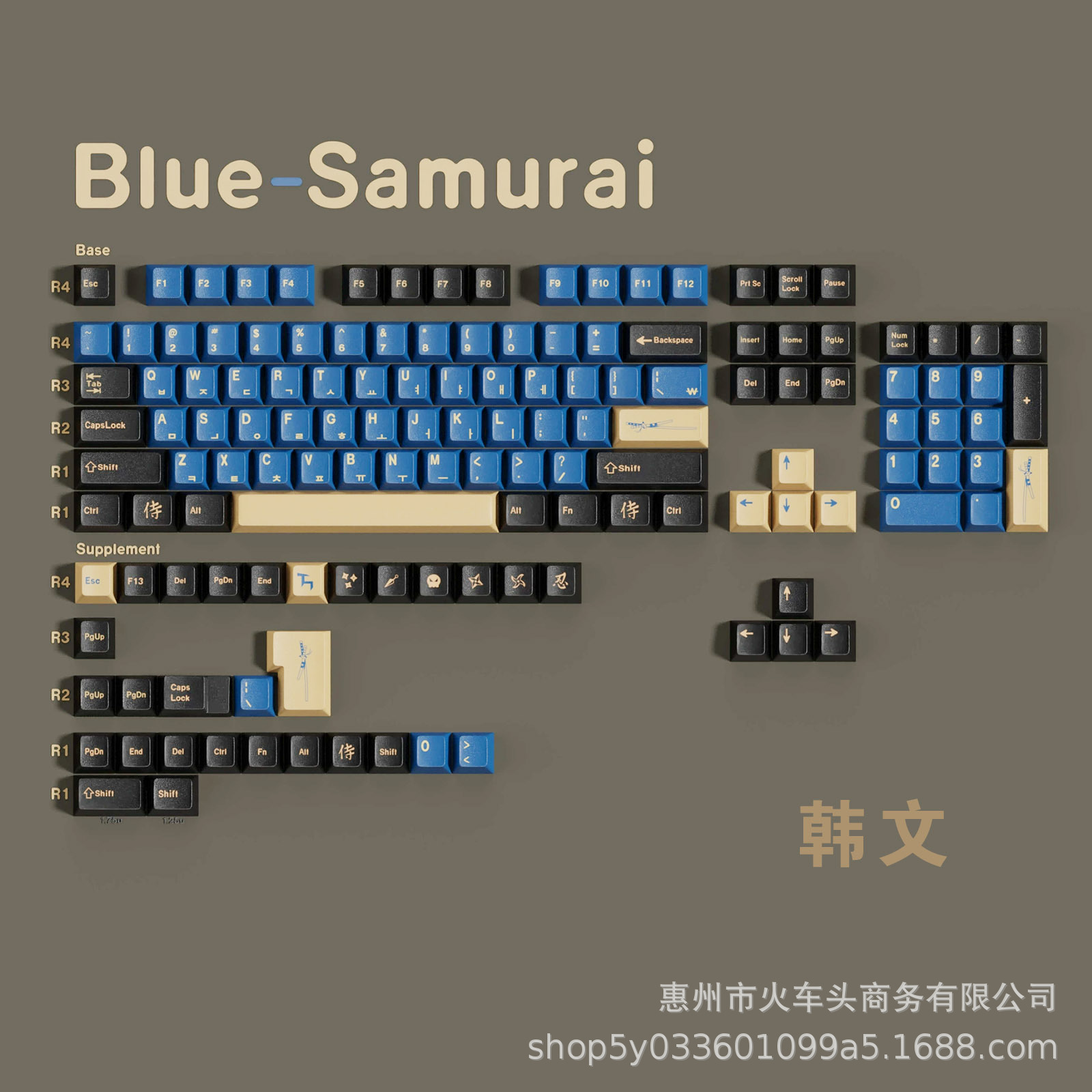 원래 블루 사무라이 키캡 PBT 열 승화 기계 키보드 캡 대만 Zhuyin 한국어 러시아어 독일어 작은 언어스토어 가기