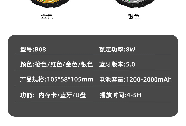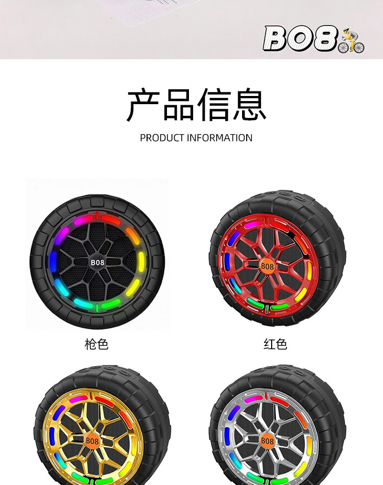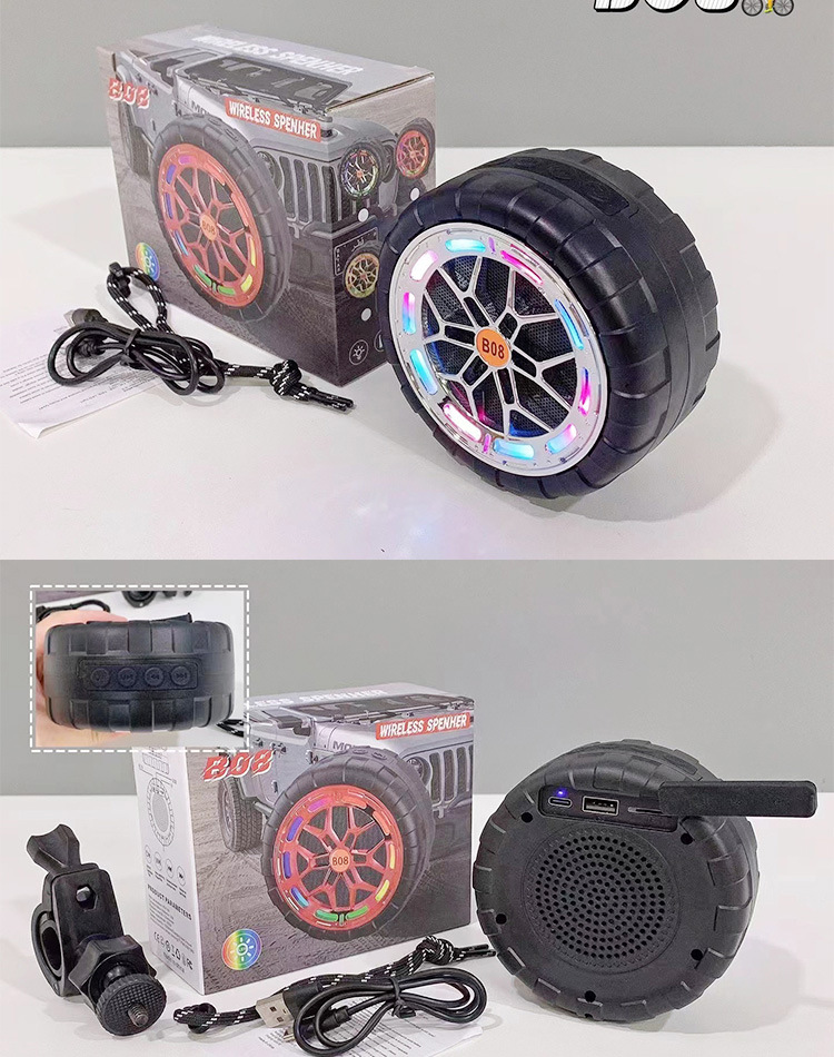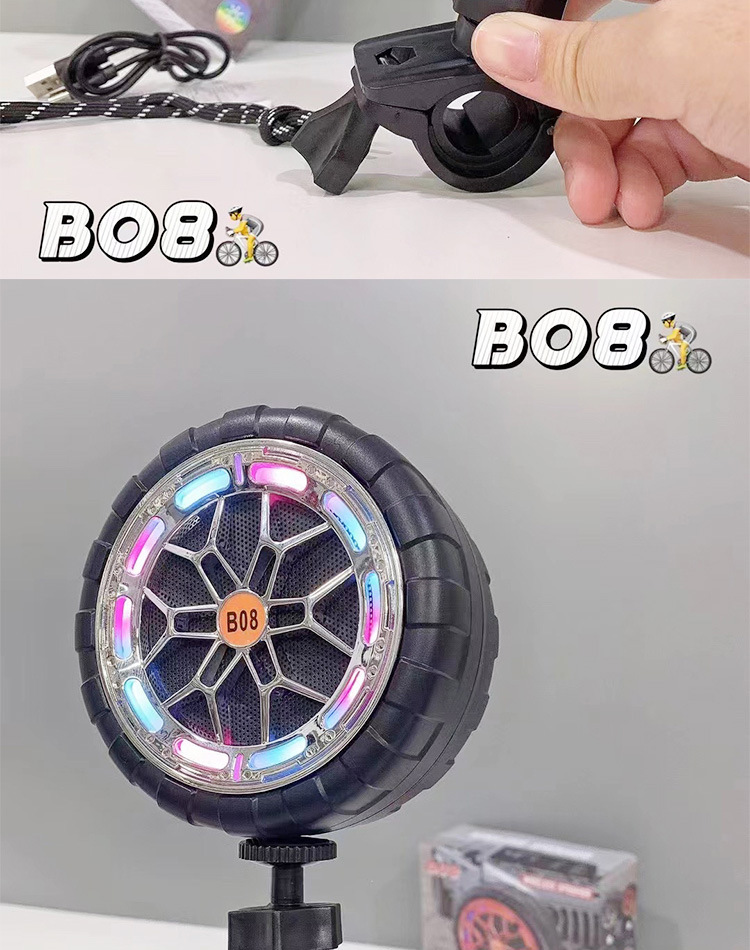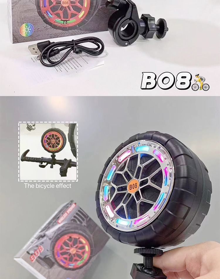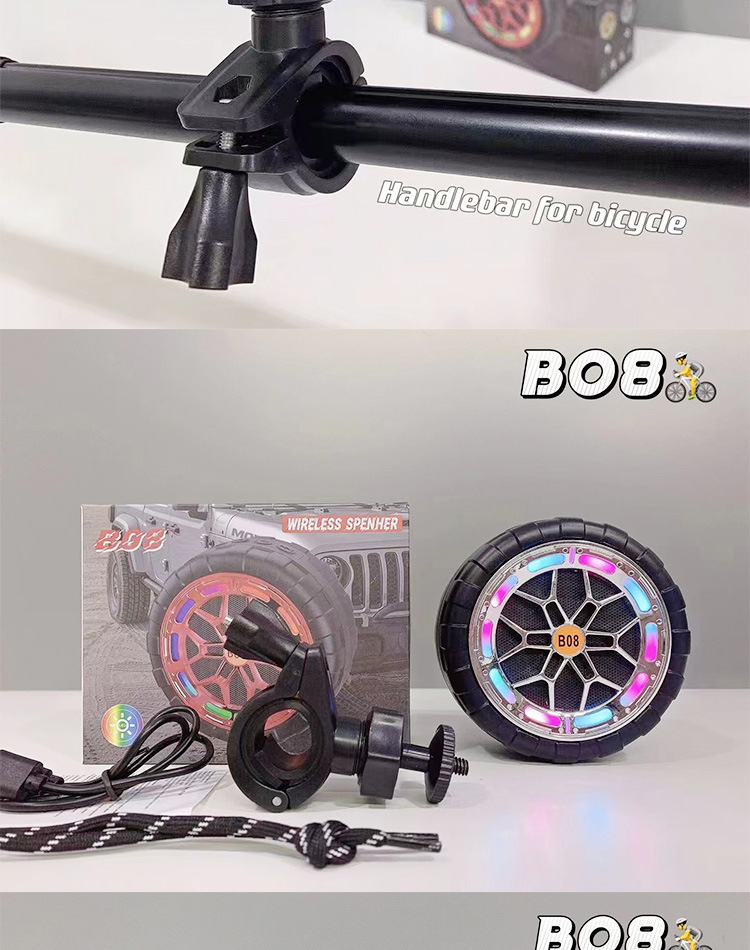 B08 무선 블루투스 스피커 야외 사이클링 크리 에이 티브 다채로운 라이트 휠 카드 삽입 방수 자전거 홀더 오디오
