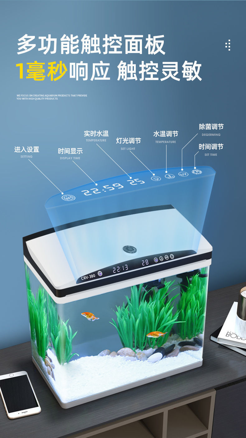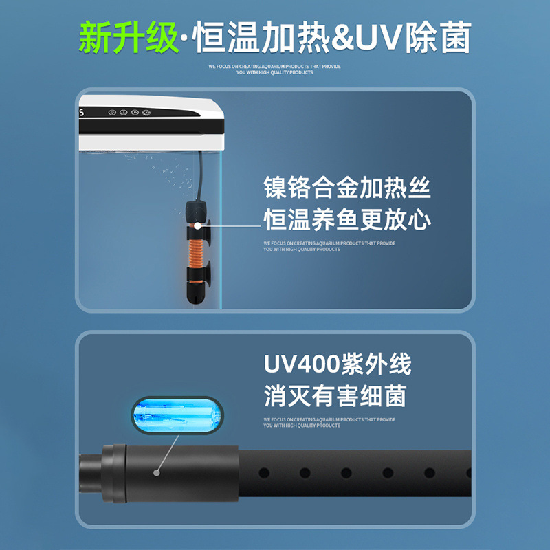 지능형 항온 금붕어 탱크 거실 소형 자체 순환 가정용 생태 유리 열대 피쉬 완전 자동 수족관
