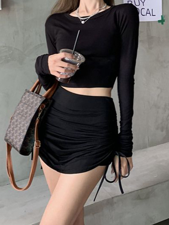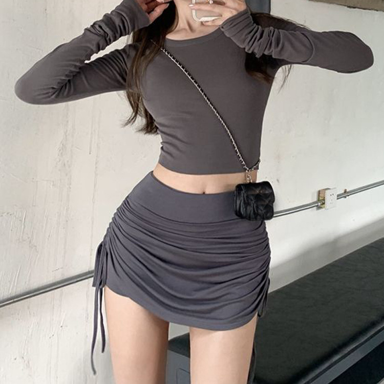 여성을 위한 인터넷 연예인 프렌치 드로스트링 플리츠 스커트, 하이웨이스트 슬리밍 A라인 초짧은 여름 핫걸 섹시 힙허깅 스커트스토어 가기