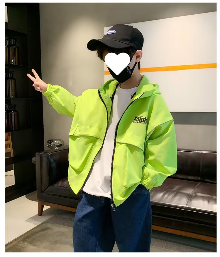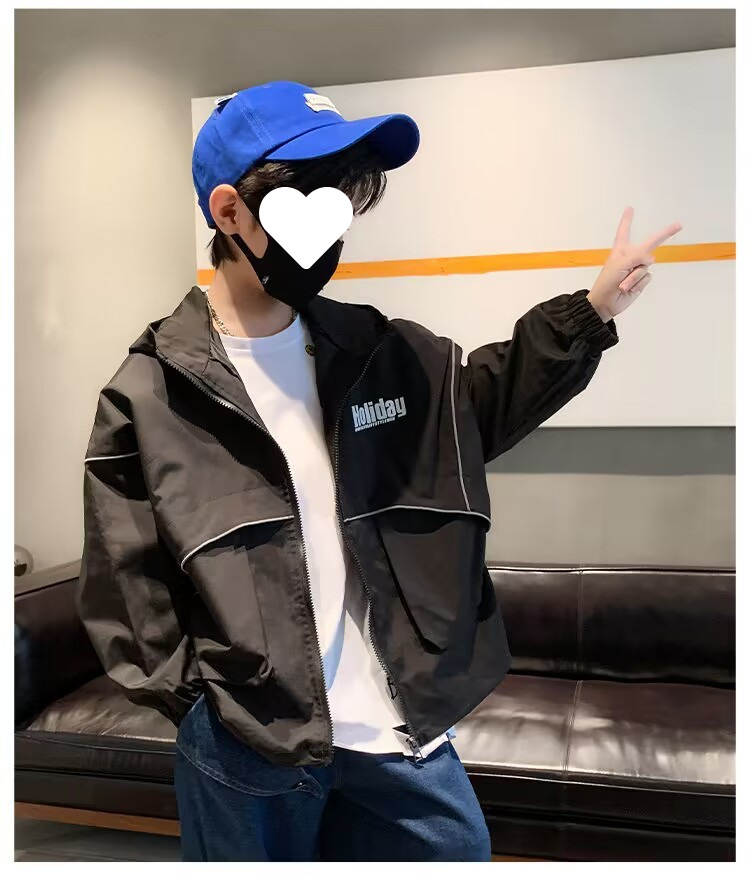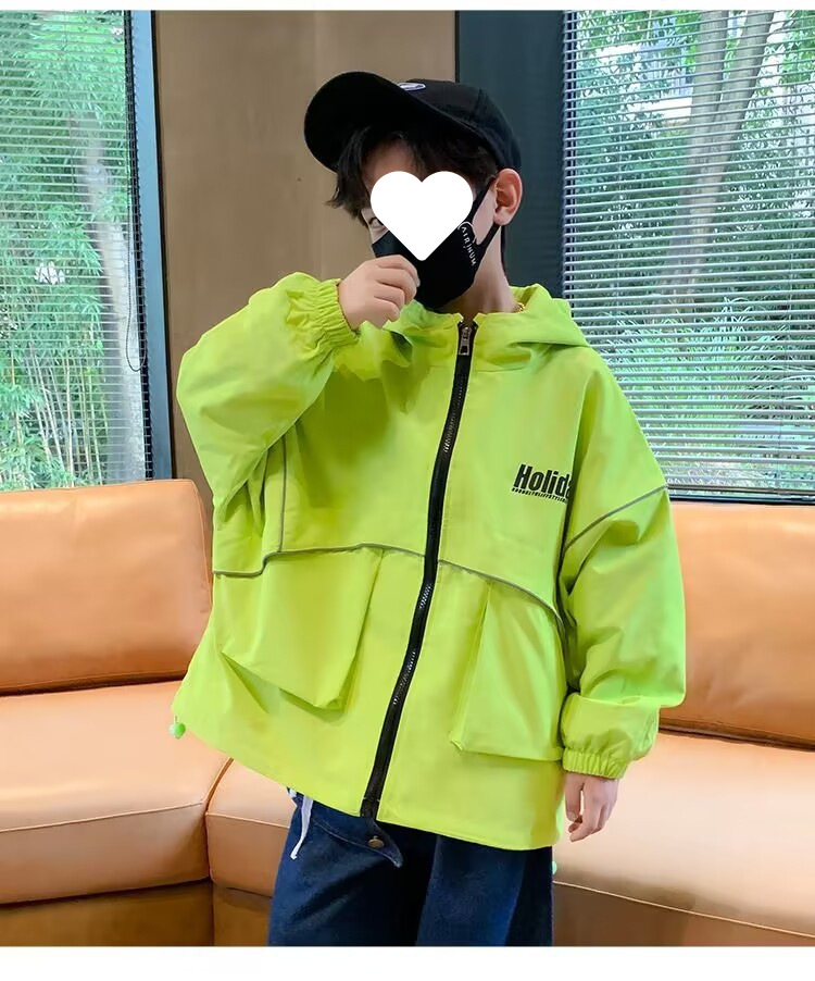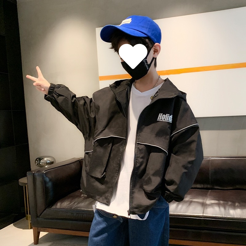 소년 봄 재킷 2025 새로운 스타일 중대형 아동용 윈드 브레이커 캐주얼 트렌디 재킷 후드 스포츠 재킷