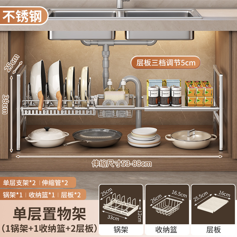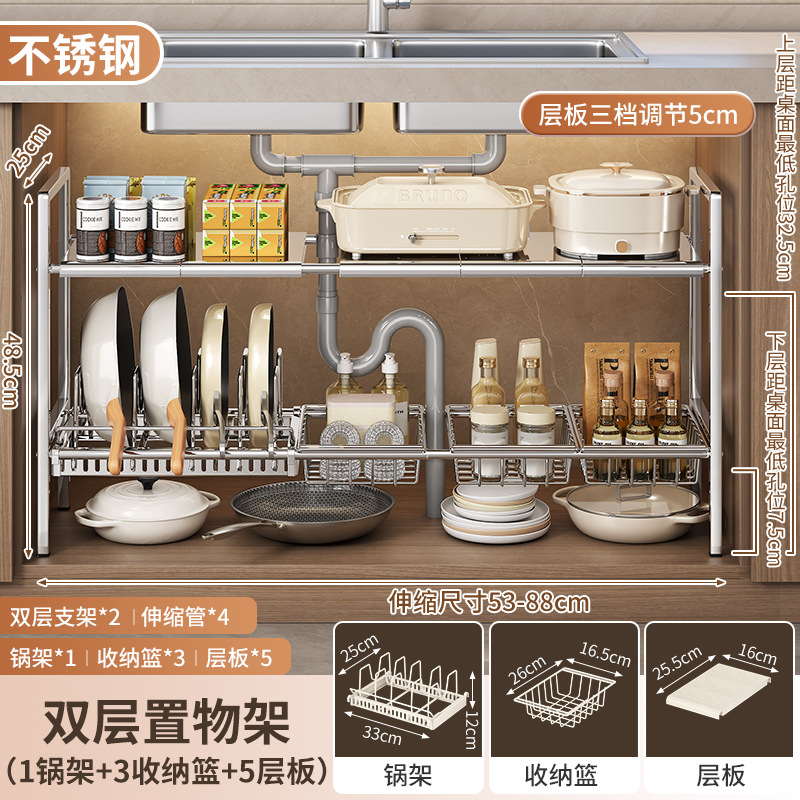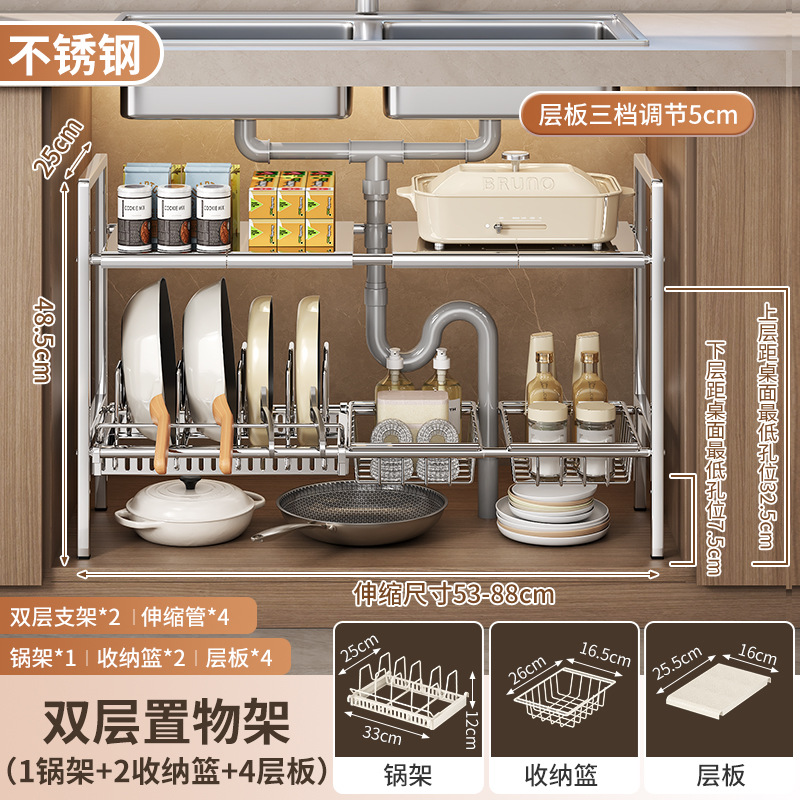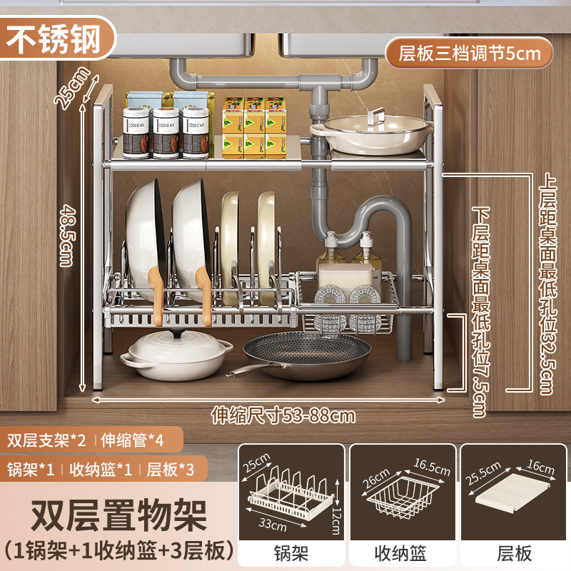 폭발성 주방 개폐식 싱크 저장 랙 가정용 캐비닛 적층 랙 포트 랙 다기능 냄비 저장 랙스토어 가기