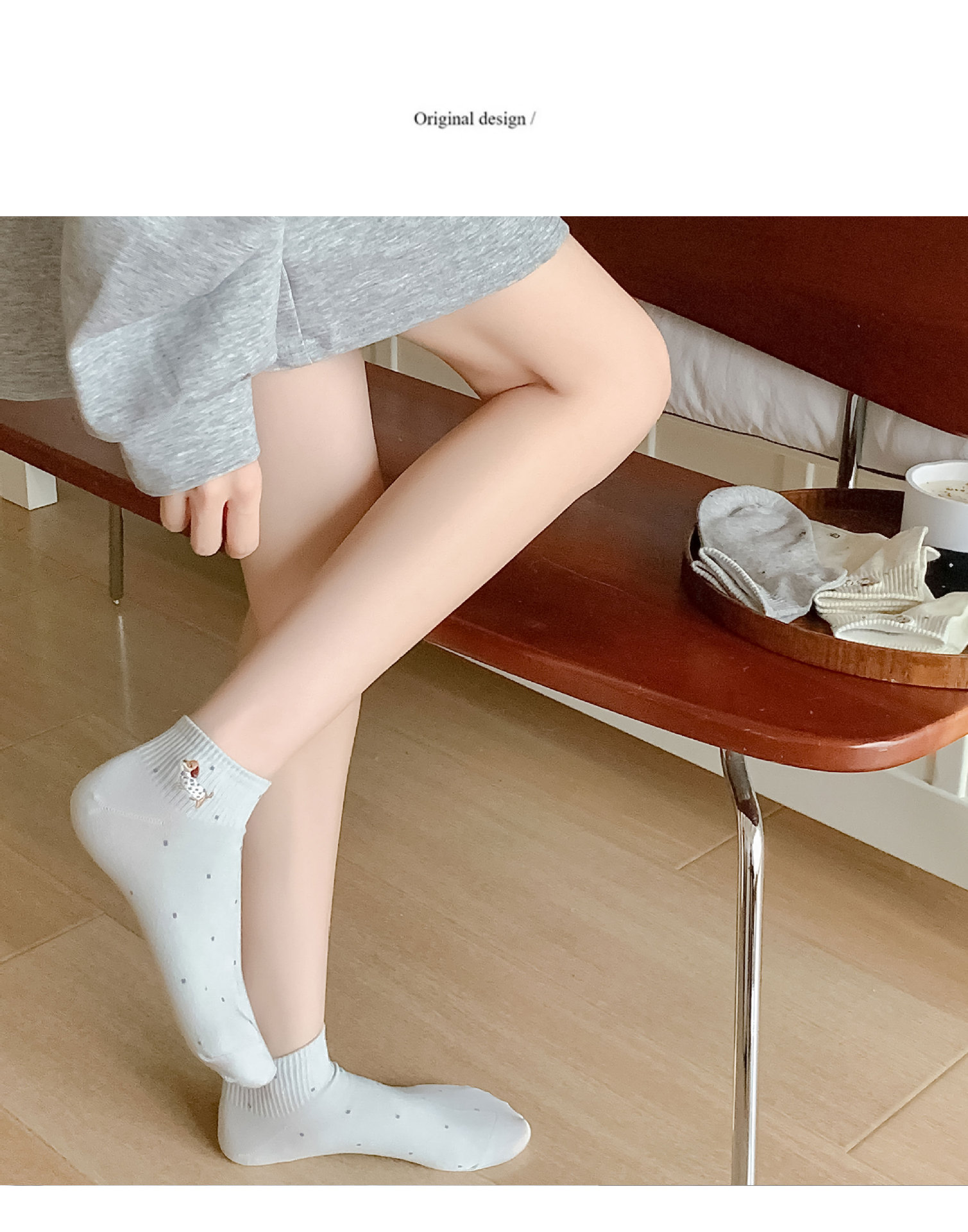 인터넷 축하 폭발성 폴로 도트 강아지 짧은 양말 여성의 여름 땀 흡수성 한국 양말 화이트 여름 올 매치 학생 양말