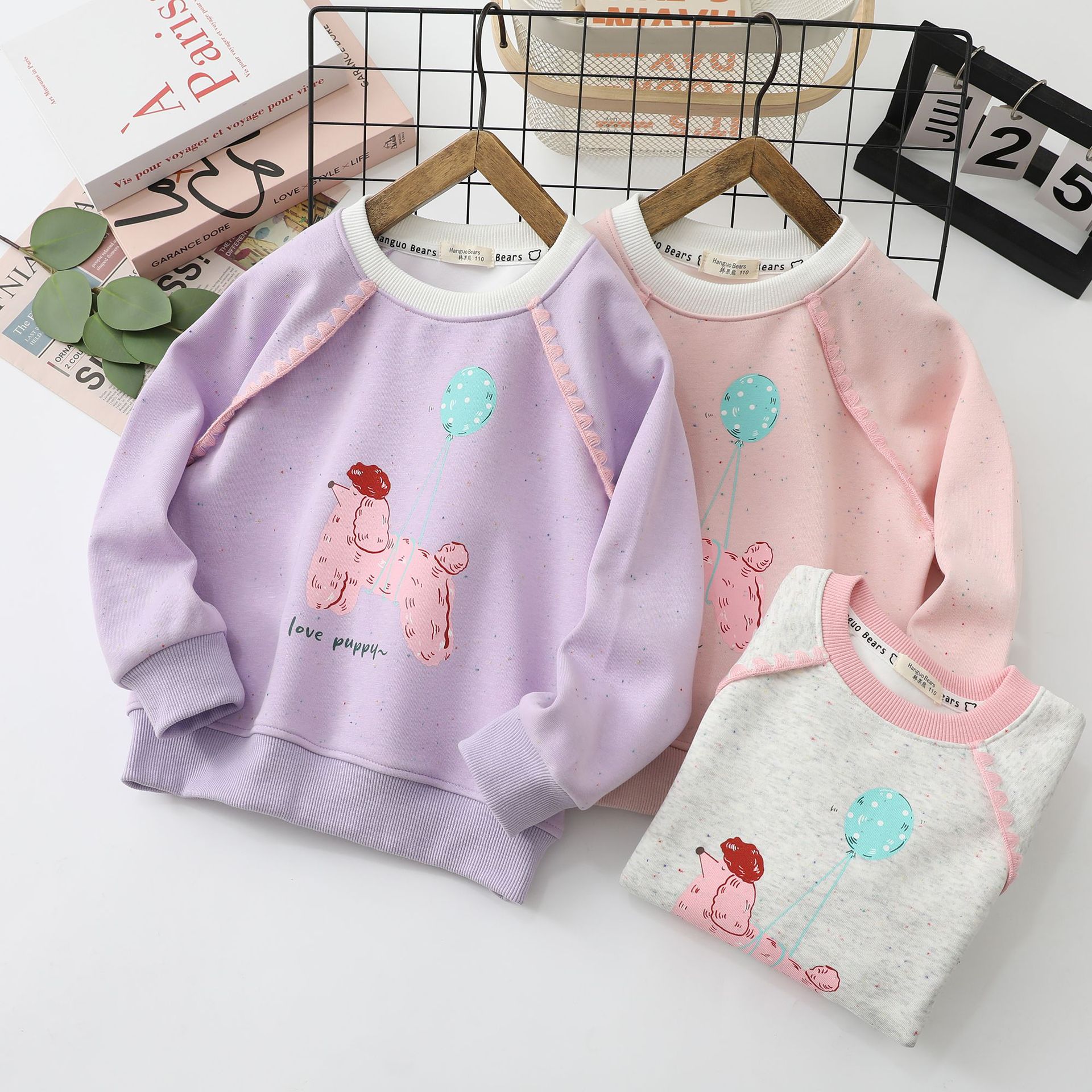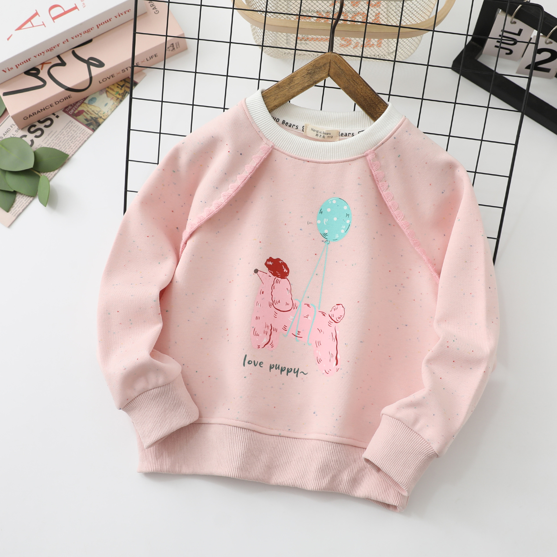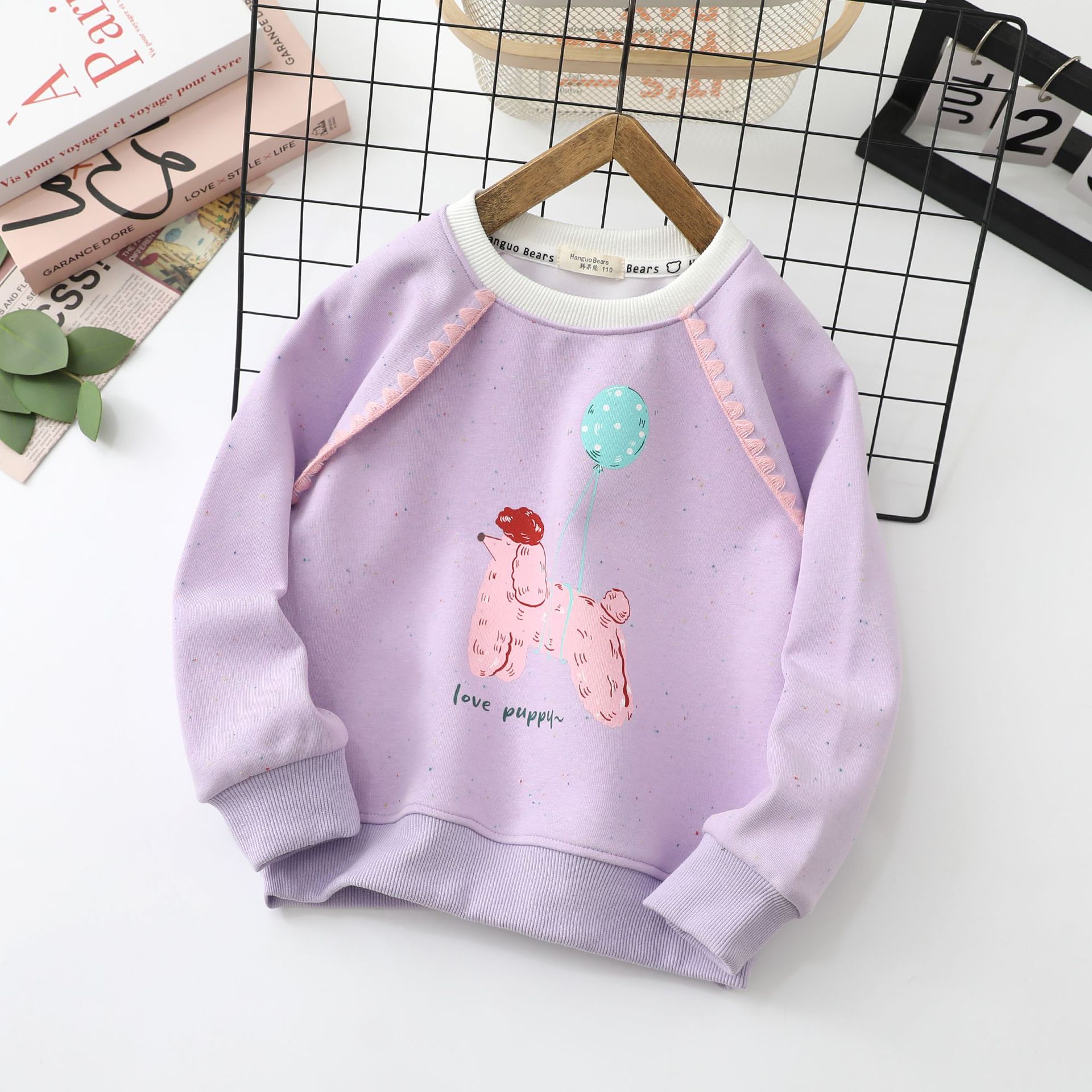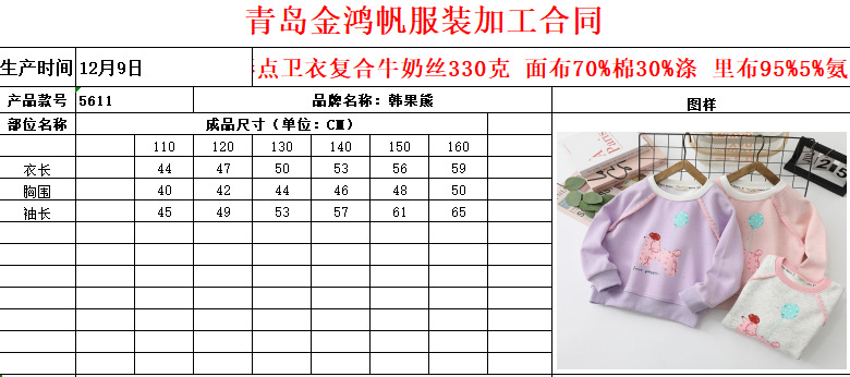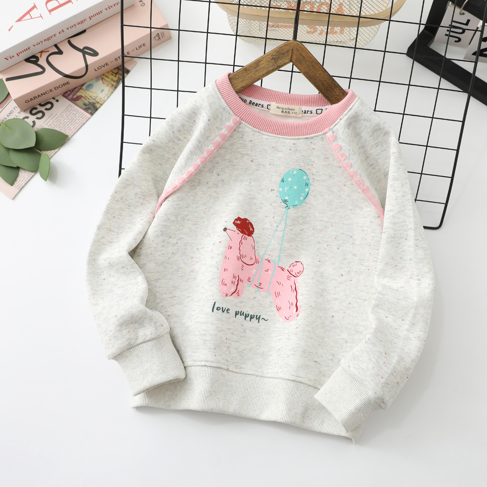 Han Guo Xiong 아동 의류 봄, 가을 새로운 어린이 운동복 소녀 바닥 셔츠 중형 및 대형 어린이 라운드 넥 재킷 도매스토어 가기