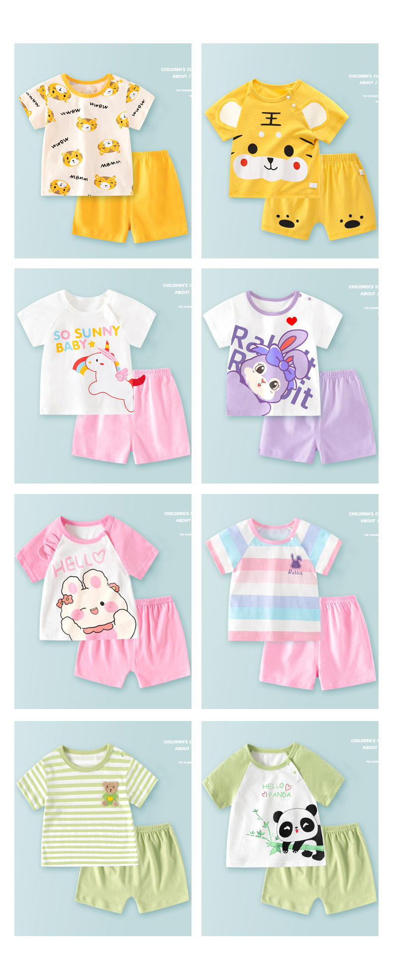 아기의 반팔 세트 남자 아기의 여름 옷 여자 공주 어린이 옷 2025 새로운 여름 잠옷 순면 얇은스토어 가기
