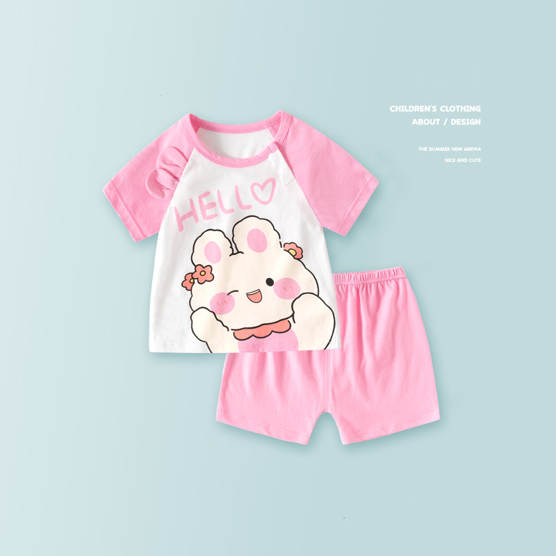 아기의 반팔 세트 남자 아기의 여름 옷 여자 공주 어린이 옷 2025 새로운 여름 잠옷 순면 얇은