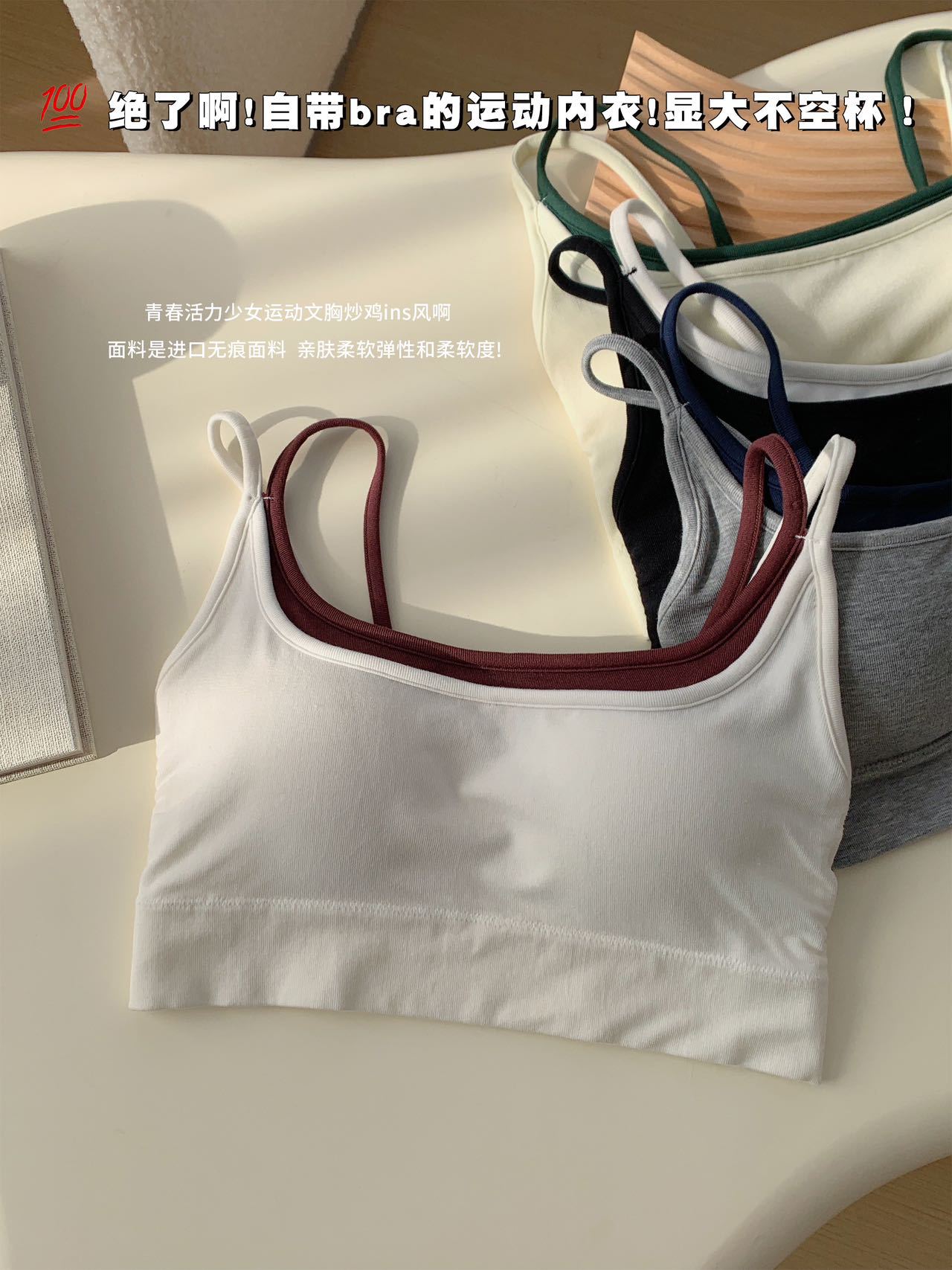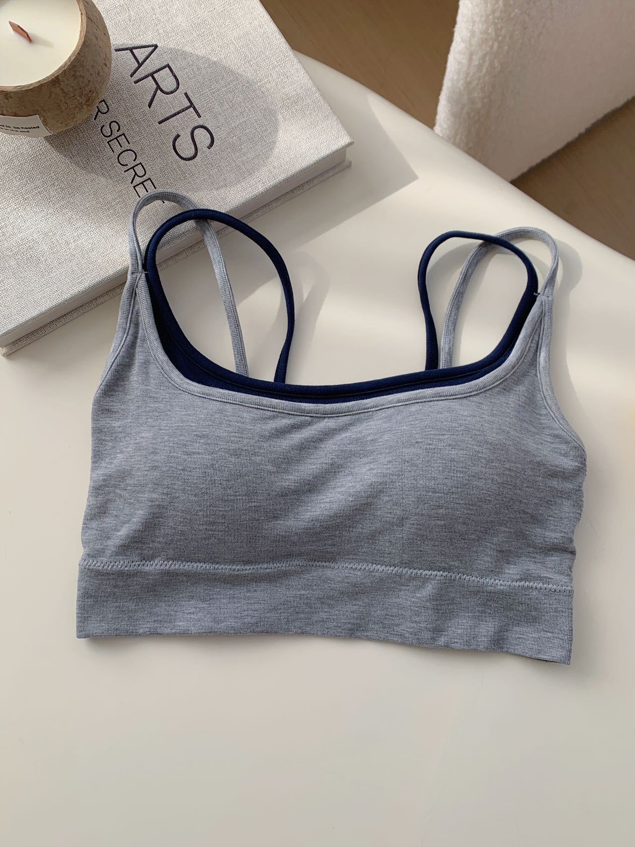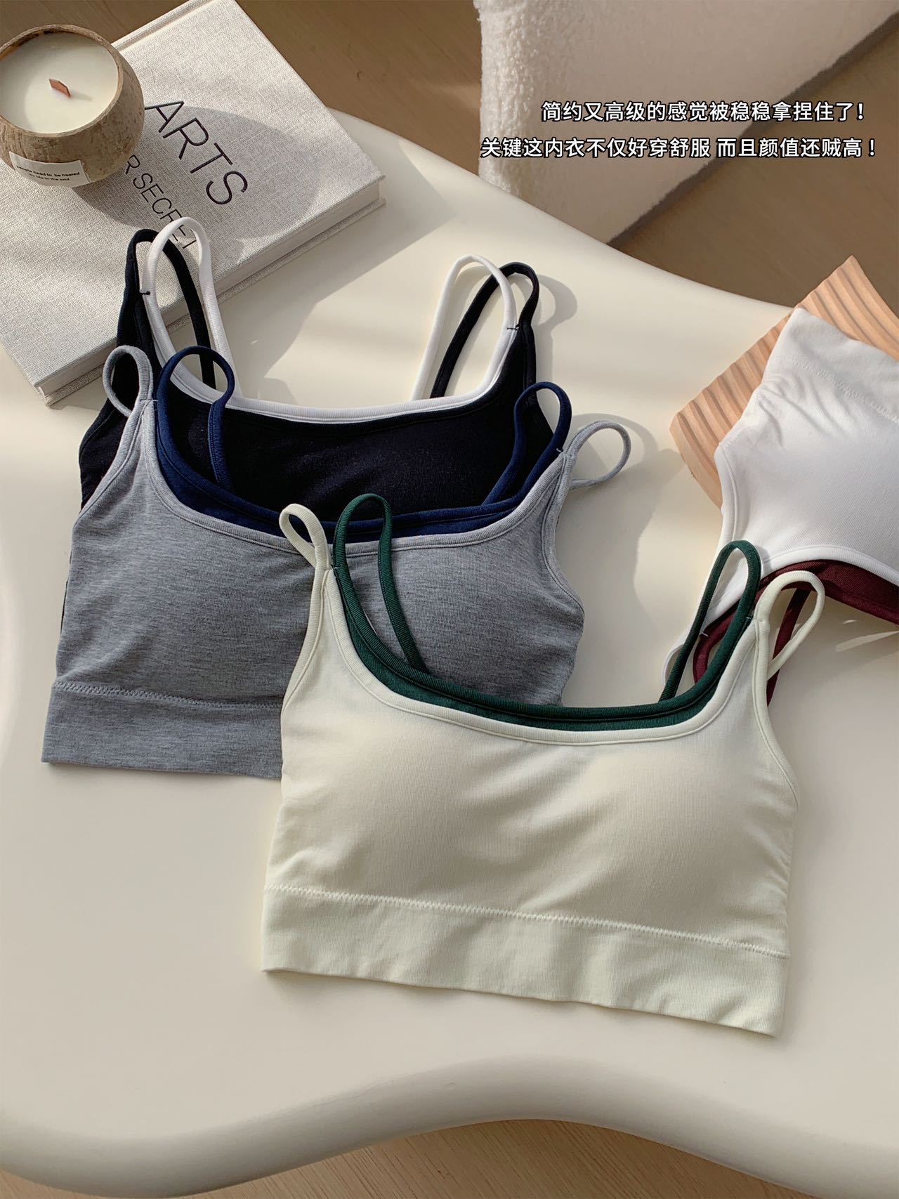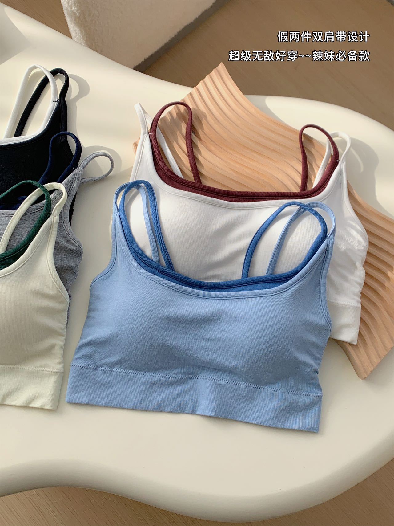 모달 누드 소프트 페이크 투피스 고정컵 가슴 감싸는 고품질 더블 숄더 스트랩 디자인 아름다운 조끼 심리스 가슴 감싸기스토어 가기