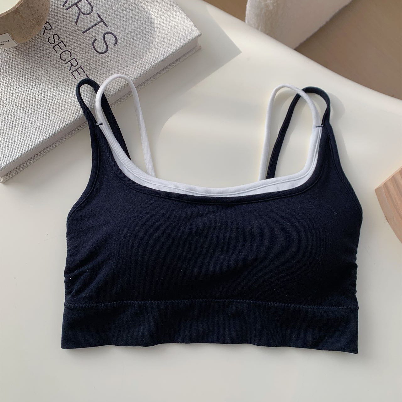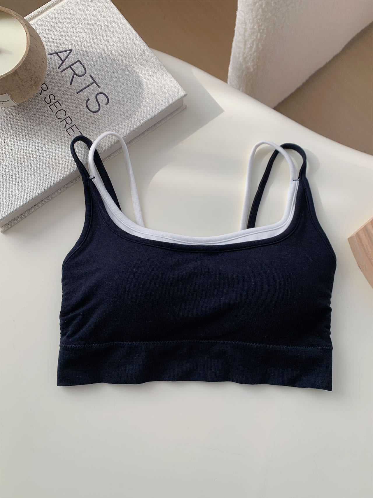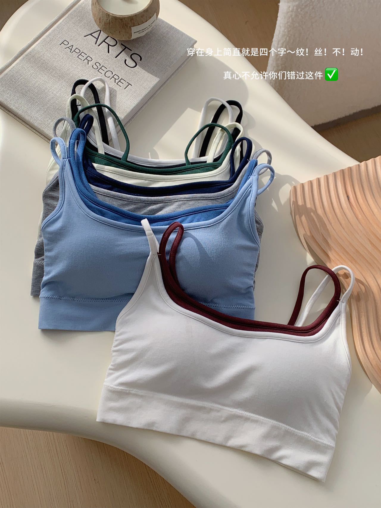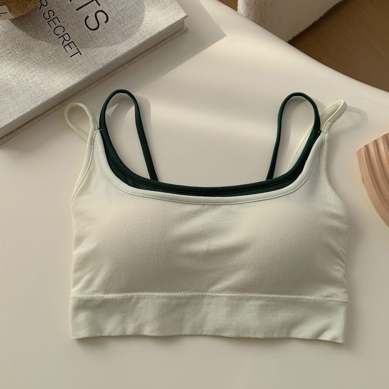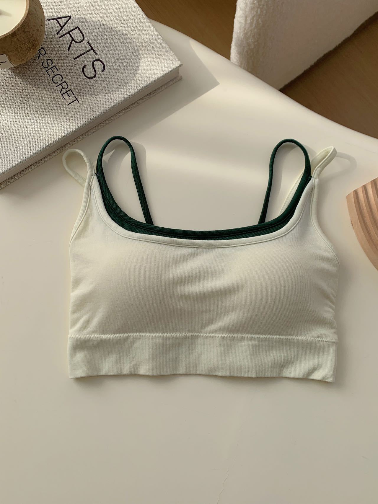 모달 누드 소프트 페이크 투피스 고정컵 가슴 감싸는 고품질 더블 숄더 스트랩 디자인 아름다운 조끼 심리스 가슴 감싸기스토어 가기