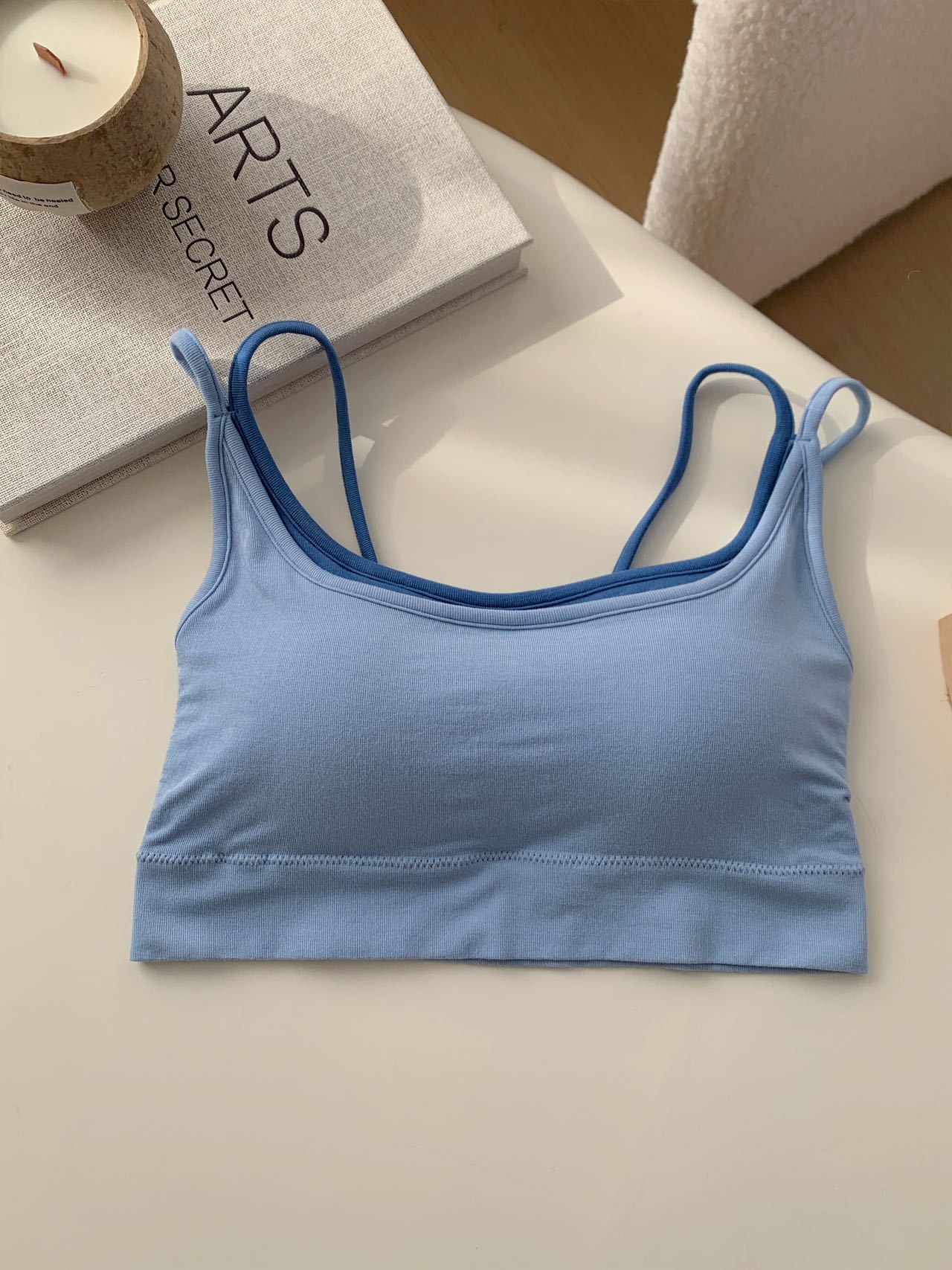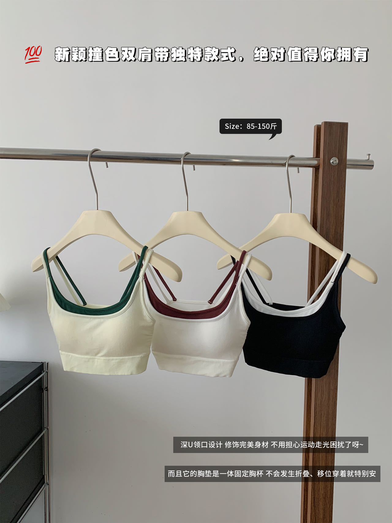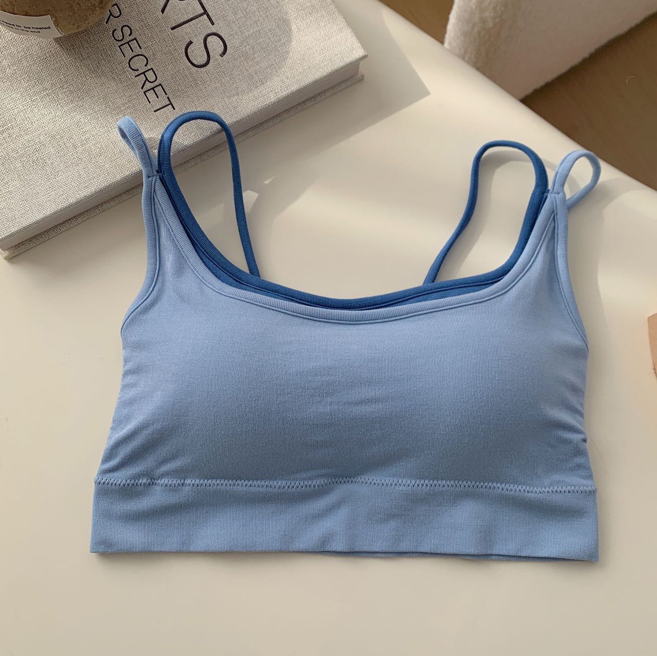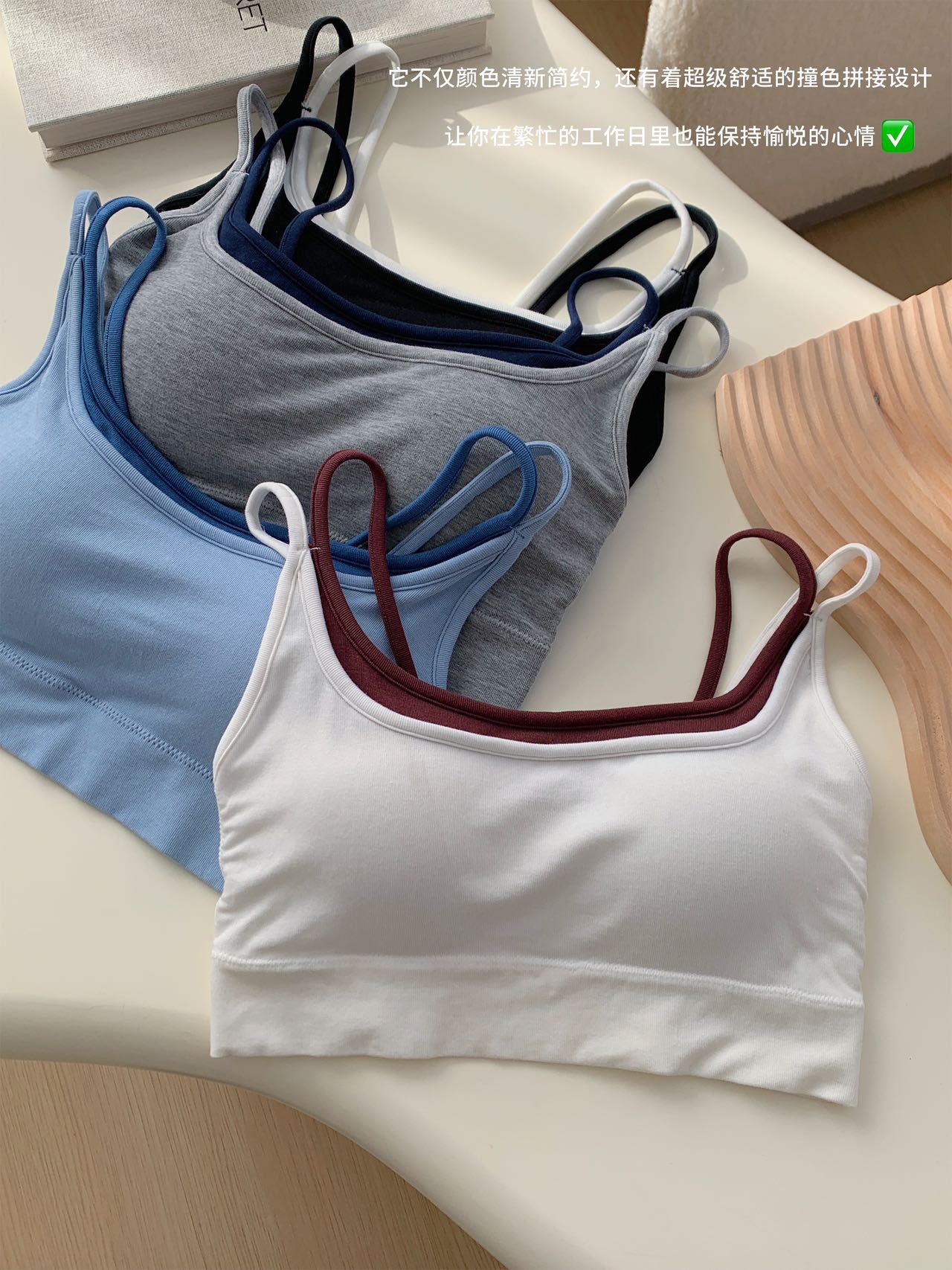 모달 누드 소프트 페이크 투피스 고정컵 가슴 감싸는 고품질 더블 숄더 스트랩 디자인 아름다운 조끼 심리스 가슴 감싸기스토어 가기