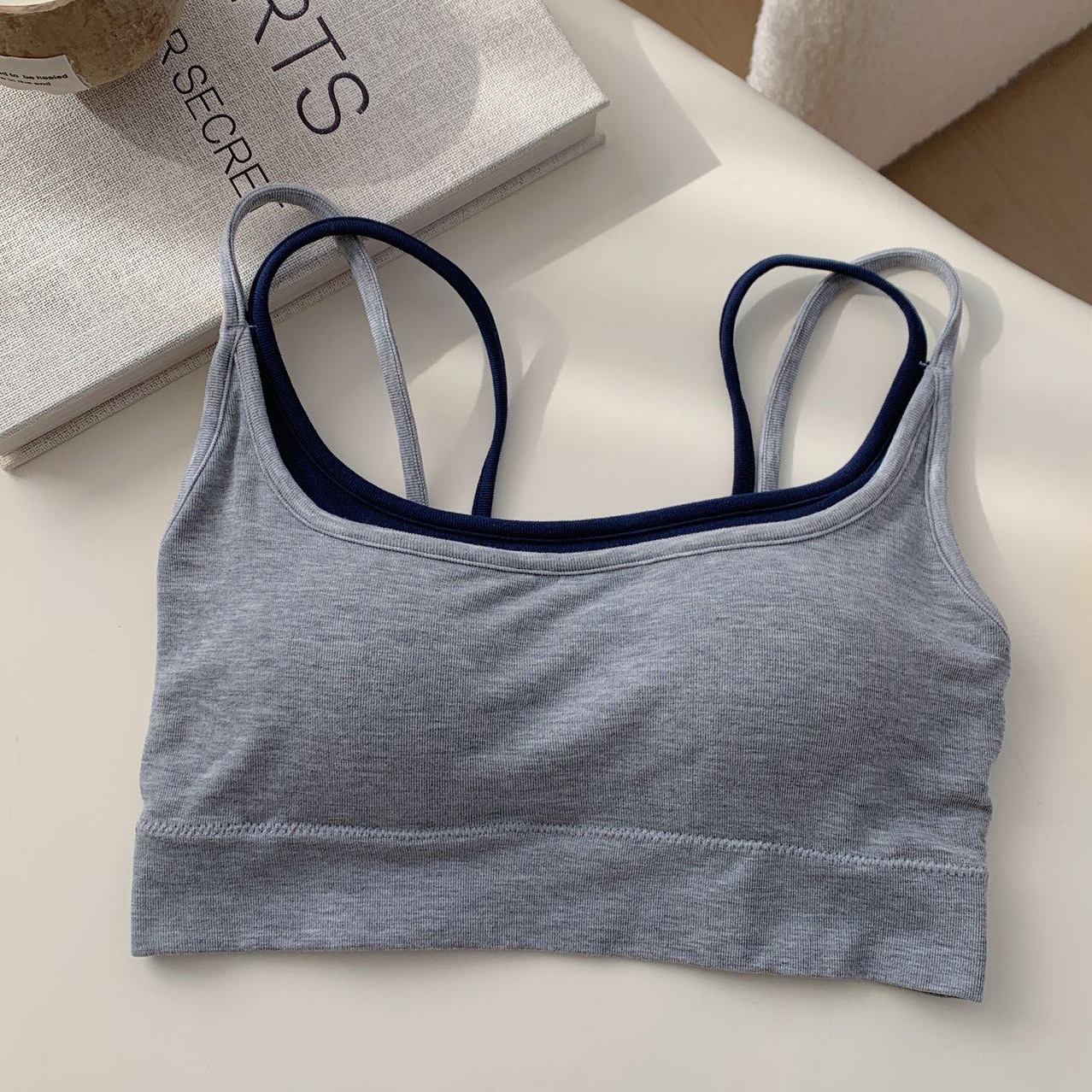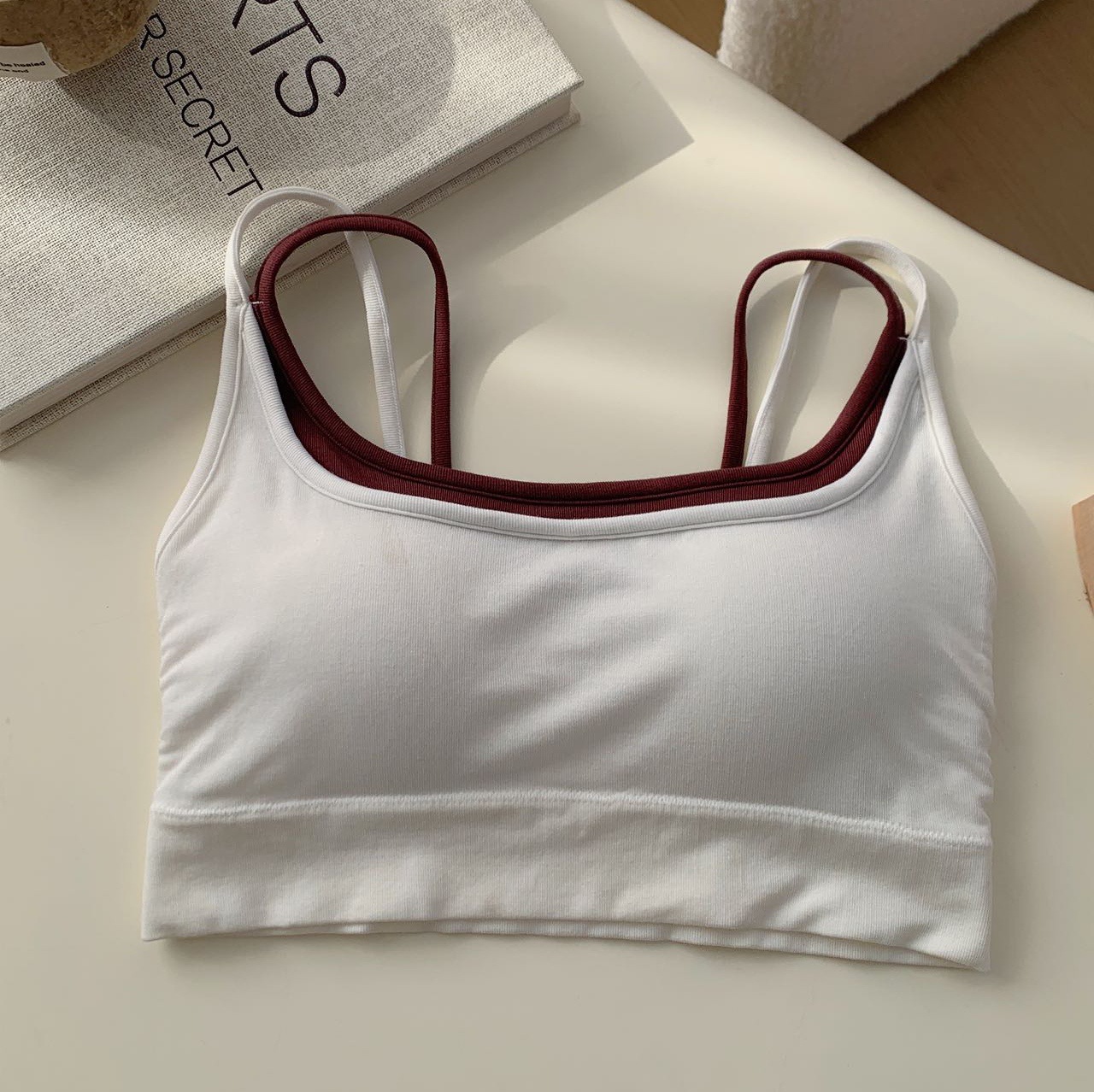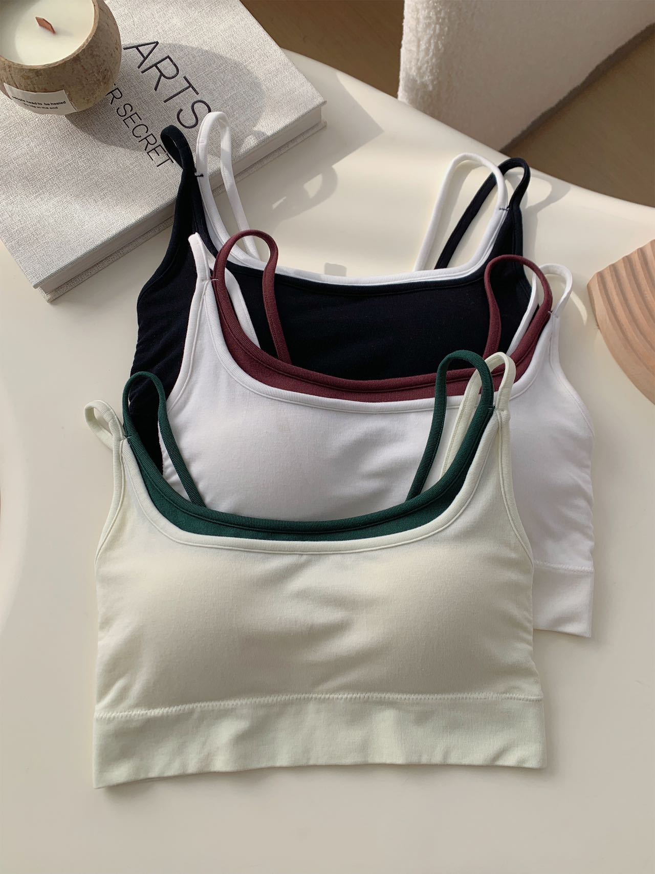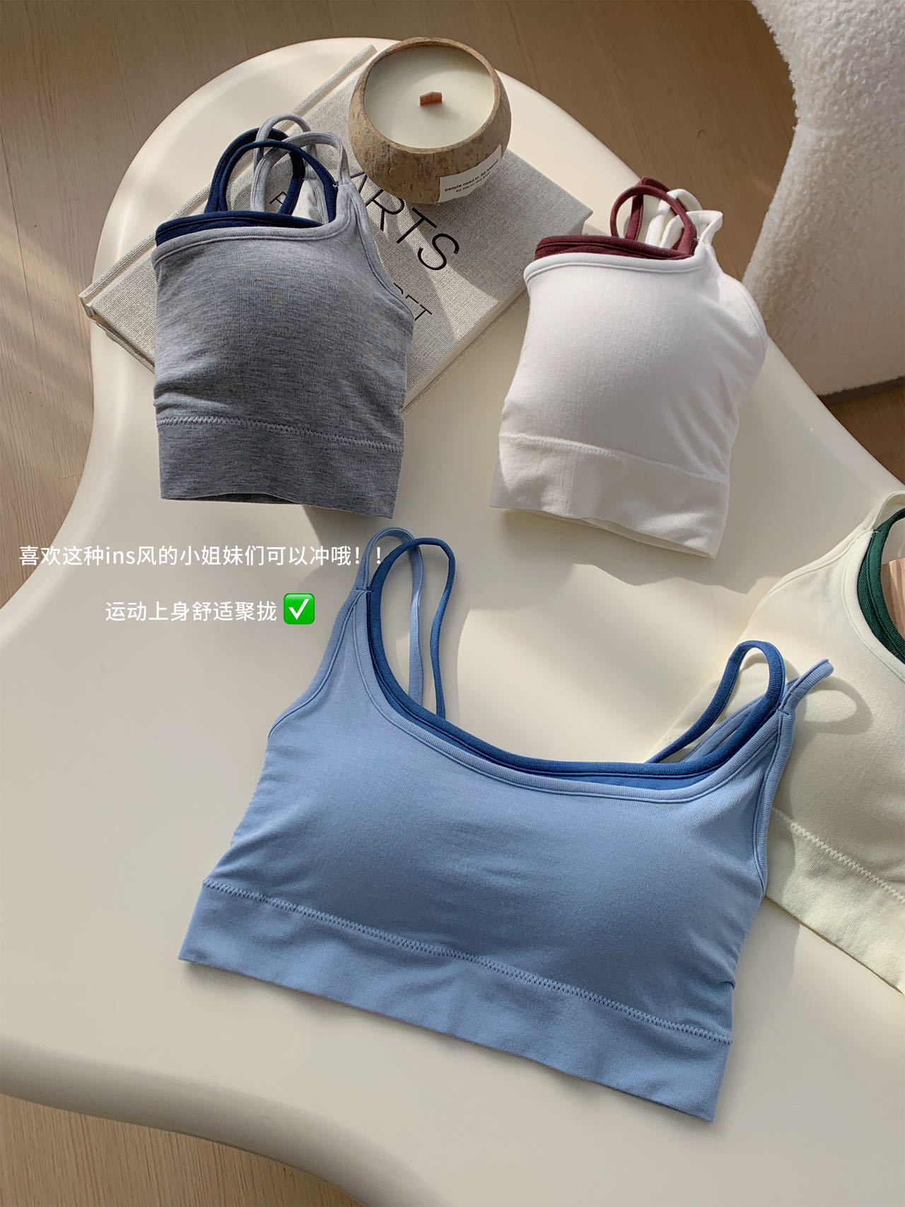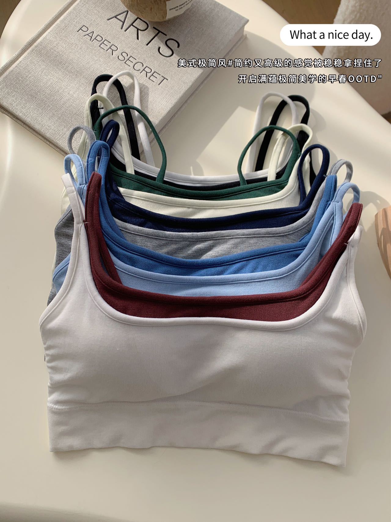 모달 누드 소프트 페이크 투피스 고정컵 가슴 감싸는 고품질 더블 숄더 스트랩 디자인 아름다운 조끼 심리스 가슴 감싸기스토어 가기